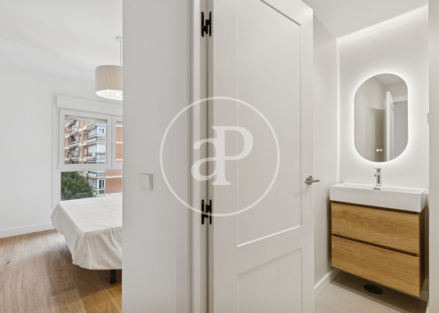 Ofrecemos este maravilloso y acogedor piso totalmente exterior en la Avenida de Valladolid. Con orientación Este/Oeste este piso cuenta con unos grandes ventanales que lo hacen super luminoso y alegre con unas magníficas vistas al parque de la bombilla, por un lado, y a los jardines comunales por el otro. Cuenta con tres dormitorios y tres baños, todos en suite y todos exteriores con armarios empotrados en dormitorios y en todo el pasillo, por lo que cuenta con gran capacidad de almacenamiento. Los armarios están todos forrados de madera y cuentan con cajoneras. El pasillo está panelado con madera.