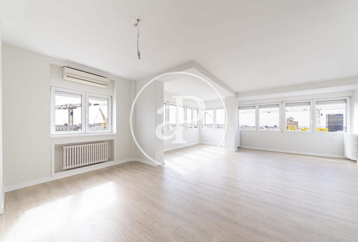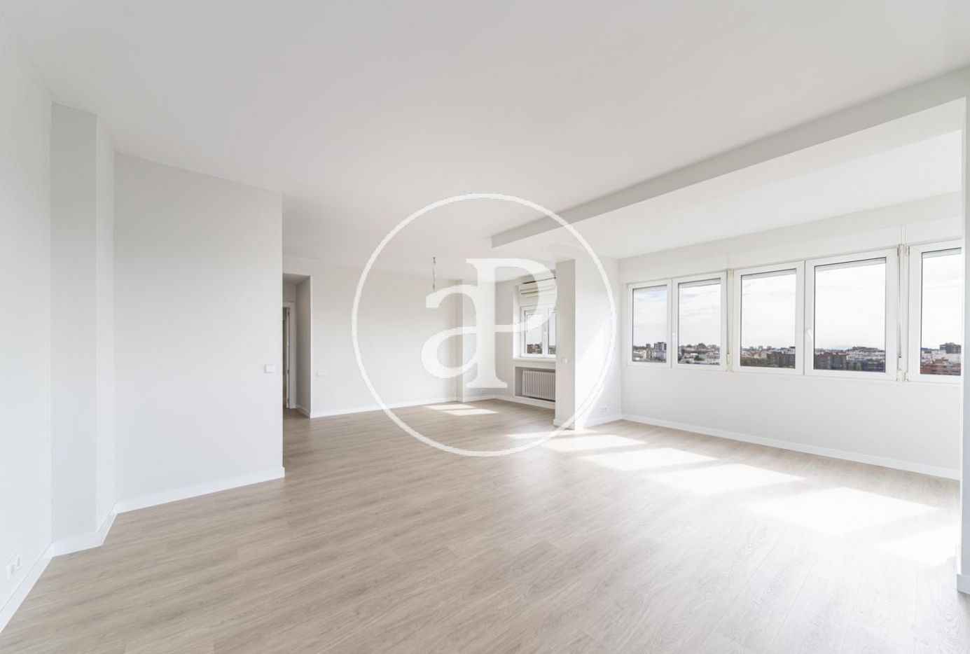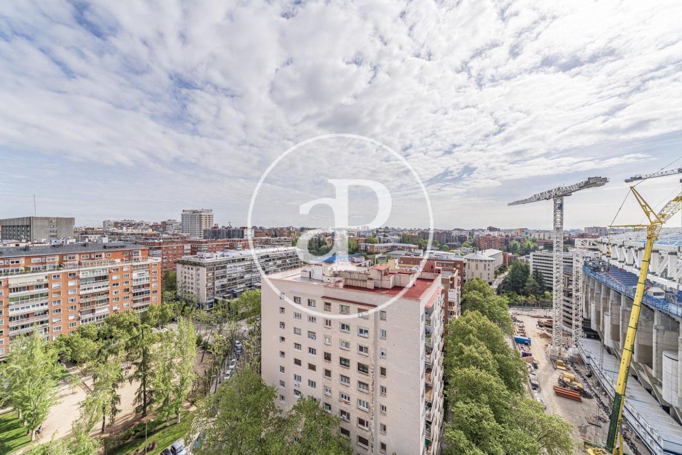 Situada junto al Santiago Bernabéu, comercializamos vivienda muy luminosa con triple orientación (Este, Sur y Oeste) con reforma a estrenar y con vistas al Paseo de la Castellana y al estadio Santiago Bernabéu. El salón en esquina le confiere una gran luminosidad y vistas a la ciudad. La cocina es amplia, con office, y está equipada con electrodomésticos nuevos así como con una gran terraza tendedero. También dispone de zona de servicio con entrada independiente y con cuarto de baño completo. La zona de noche está compuesta de 3 dormitorios, el principal en suite, más dos dormitorios dobles que comparten un cuarto de baño completo con bañera. Dispone de una plaza de garage, calefacción central y agua caliente incluidos en precio, así como aire acondicionado por sistema split en salón y uno de los dormitorios. Ubicada en edificio representativo de la zona y con vigilancia 24h. Su excelente ubicación hace que esté dotada de toda clase de infraestructuras, transportes y servicios.
