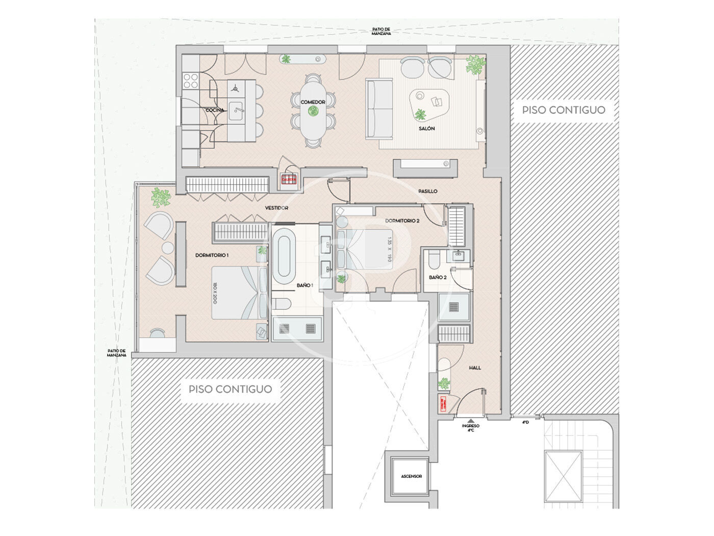 Piso reformado a estrenar en Castelló. Se trata de una vivienda cómoda y actual, diseñada por un equipo de arquitectos e interioristas, en una la zona más tranquila de Castelló, cerca del IE, Embajadas, rodeada de las mejores firmas de moda y junto a una amplísima oferta gastronómica y cultural, como el Museo Lázaro Galdiana o la Fundación March. En una finca representativa de los años 30, puede disfrutar de una cuarta planta interior de 126 m2 construidos, de los cuales 119 son de vivienda que se distribuye en salón comedor, cocina abierta equipada con todos los electrodomésticos, dos dormitorios dobles y dos baños de los cuales el principal es en suite. La reforma ha sido efectuada con materiales de calidad ejecutados a la perfección para crear ambientes acogedores.