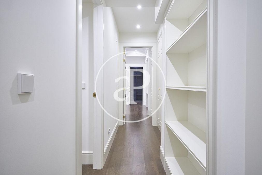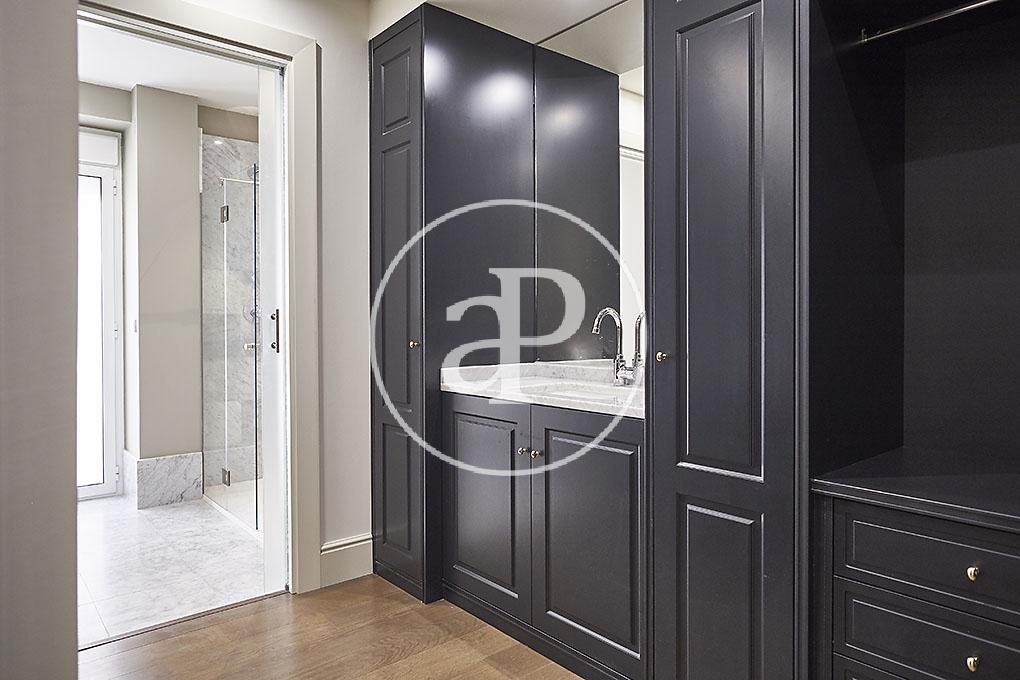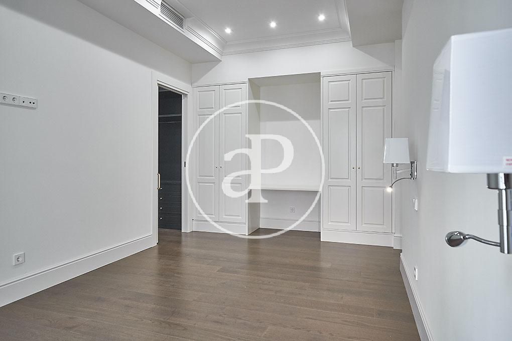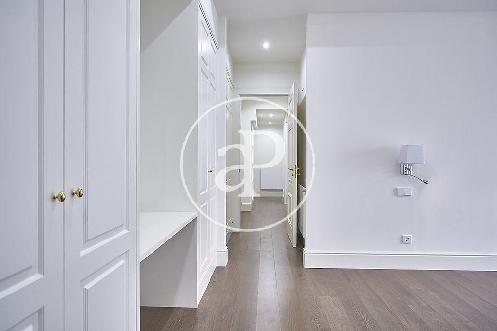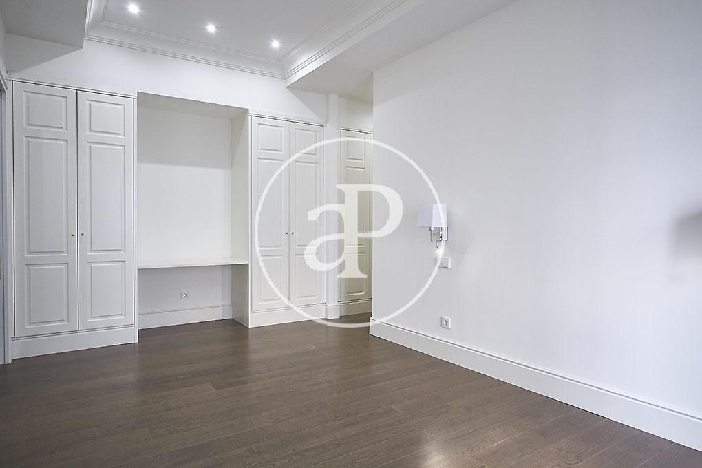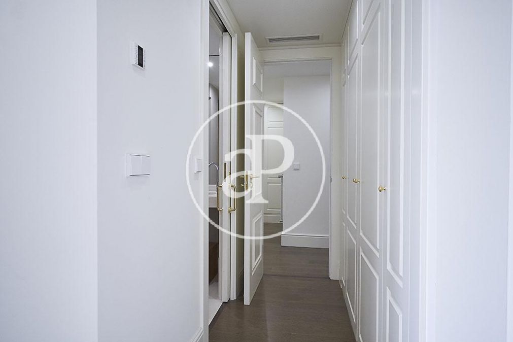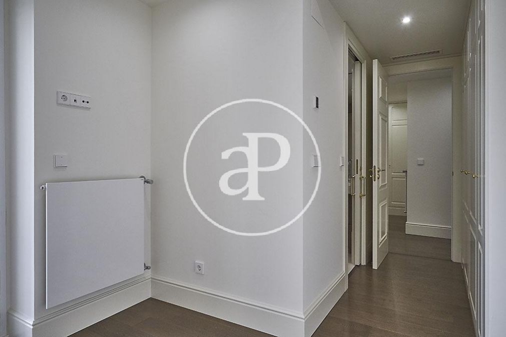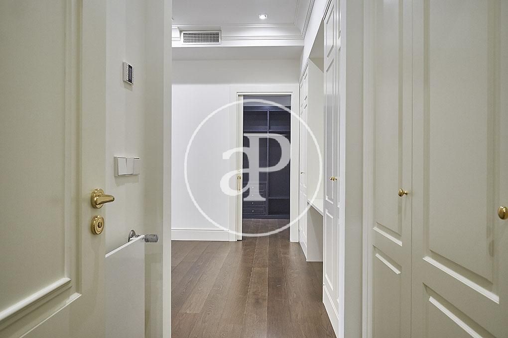 Fantástica vivienda en la calle más exclusiva del Barrio de Salamanca, con una excelente comunicación y rodeada de restaurantes, comercio y todo tipo de servicios. Se ubica en un edificio emblemático de 1905, ideado por Antonio Palacios, completamente rehabilitado. Se accede a la vivienda a través de un hall distribuidor que da paso a un salón dividido en dos ambientes con dos balcones, con unas maravillosas vistas. En el hall encontramos un aseo de cortesía y un ropero. Contigua al comedor se encuentra la cocina equipada con electrodomésticos de alta gama. La zona de descanso se compone de tres dormitorios, todos con baño en suite. El principal, además, cuenta con vestidor. La vivienda ha sido reformada manteniendo los balcones de hierro forjado, las molduras y los miradores de chaflán. La vivienda cuenta con servicios de domótica en gestión de temperaturas, cerramientos, seguridad e iluminación. Existe la posibilidad de alquilarse sin amueblar con una renta de 5.500 €. Consultar disponibilidad de plaza de garaje y trastero.
