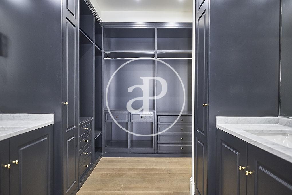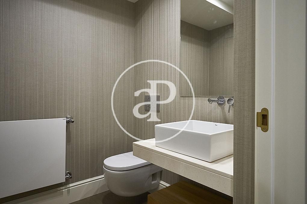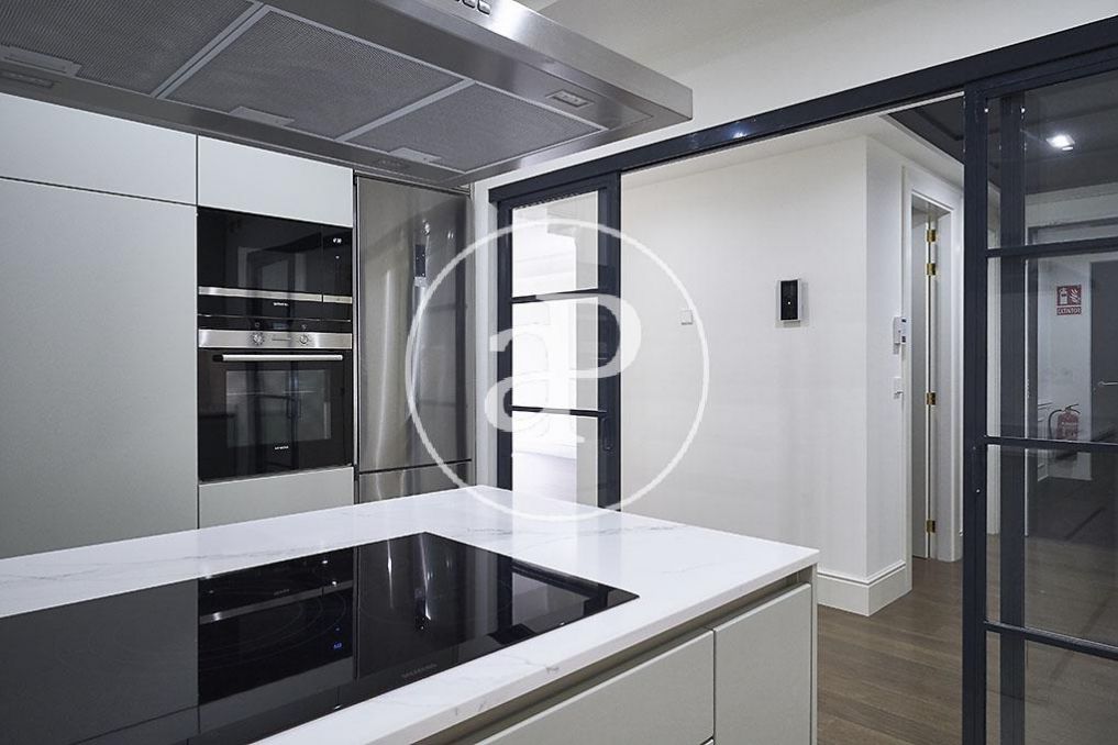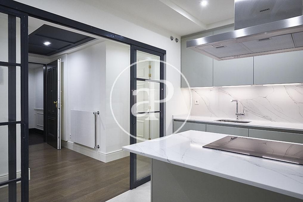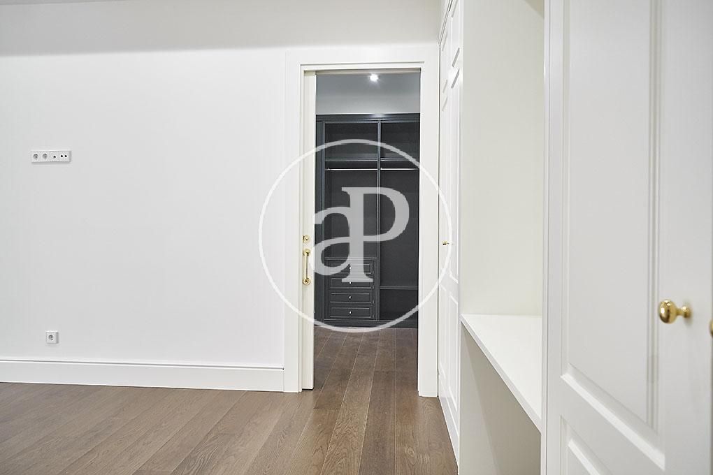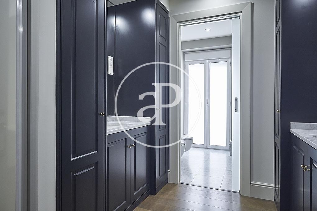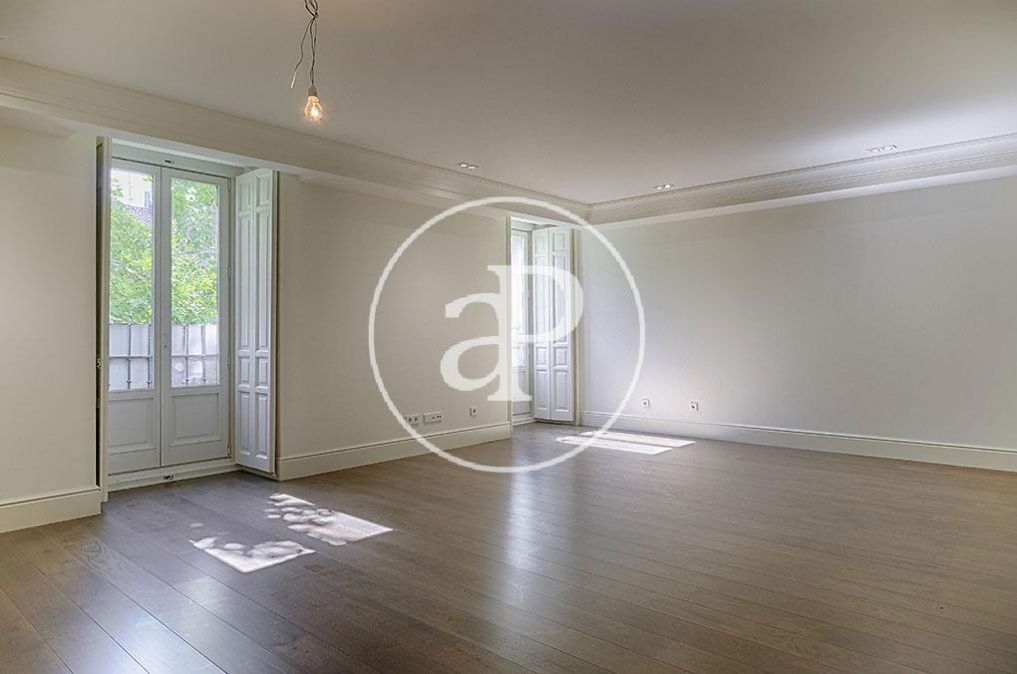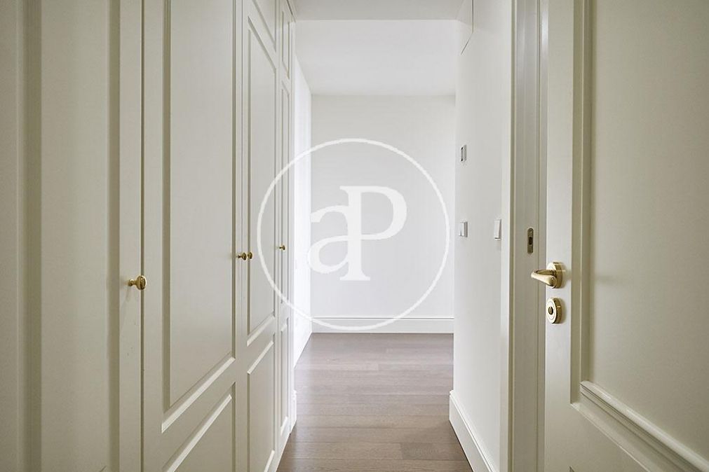 Fantástica vivienda en la calle más exclusiva del Barrio de Salamanca, con una excelente comunicación y rodeada de restaurantes, comercio y todo tipo de servicios. Se ubica en un edificio emblemático de 1905, ideado por Antonio Palacios, completamente rehabilitado. Se accede a la vivienda a través de un hall distribuidor que da paso a un salón dividido en dos ambientes con dos balcones, con unas maravillosas vistas. En el hall encontramos un aseo de cortesía y un ropero. Contigua al comedor se encuentra la cocina equipada con electrodomésticos de alta gama. La zona de descanso se compone de tres dormitorios, todos con baño en suite. El principal, además, cuenta con vestidor. La vivienda ha sido reformada manteniendo los balcones de hierro forjado, las molduras y los miradores de chaflán. La vivienda cuenta con servicios de domótica en gestión de temperaturas, cerramientos, seguridad e iluminación. Existe la posibilidad de alquilarse sin amueblar con una renta de 5.500 €. Consultar disponibilidad de plaza de garaje y trastero.