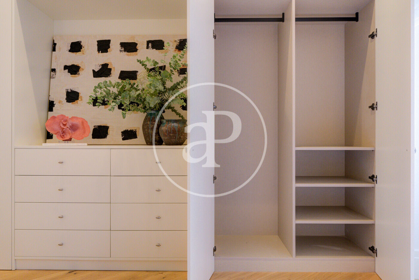 La zona de descanso cuenta con dos dormitorios dobles en suite y un aseo de cortesía. Se entrega totalmente amueblada y se sitúa en una finca representativa con servicio de portería, en una calle tranquila a escasos metros de Serrano, rodeada de comercios, restaurantes y excelentes comunicaciones.