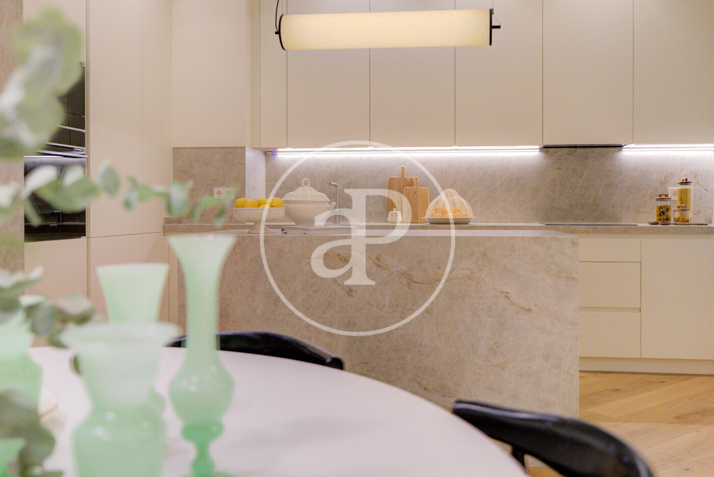 La zona de día ofrece un amplio salón comedor, muy luminoso, ideal para disfrutar y recibir invitados, junto a una cocina totalmente equipada con zona de lavadero independiente.