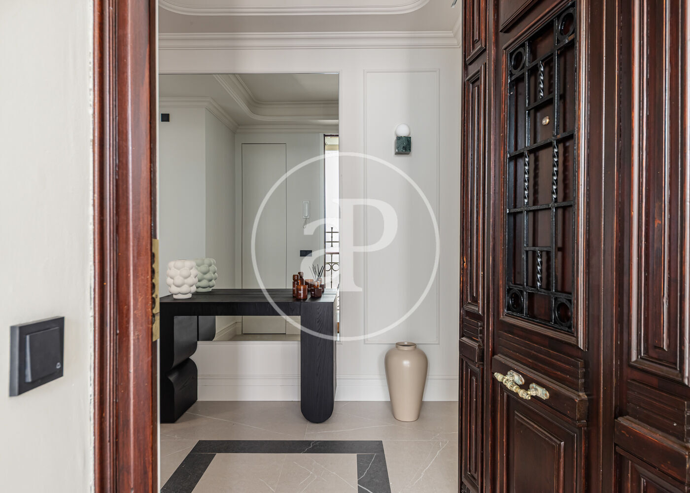 Presentamos esta magnífica vivienda, totalmente reformada, ubicada en una tercera planta exterior, con dos balcones a la calle, techos altos y buena iluminación natural, situado al lado del hotel Four Seasons. La propiedad tiene 124 m² construidos, según nota simple y se distribuye en cocina semiabierta al salón, dos dormitorios y dos baños, uno de los cuales está en suite. La vivienda está situada en una bonita finca clásica pero reformada íntegramente en el año 2003. Se trata de una oportunidad única para vivir o invertir en una de las zonas más buscadas y de la capital, en un piso con mucho encanto, por tener una ubicación excepcional, con zonas de ocio, museos, colegios y estar conectada con todo Madrid. El Barrio de Sol, situado en pleno corazón de Madrid, es una de las zonas más icónicas y dinámicas de la ciudad. Este barrio gira en torno a la famosa Puerta del Sol, una plaza histórica y punto neurálgico de la capital, conocida por ser el “kilómetro cero”. A pesar de ser una de las zonas más concurridas de la ciudad, Sol no es solo un lugar turístico. Sus residentes disfrutan de una excelente conexión de transporte, ya que es un centro clave para el metro y los autobuses, lo que facilita moverse por Madrid. Además, la variedad gastronómica es muy amplia, desde bares tradicionales de tapas hasta restaurantes internacionales de alta cocina. La zona de Sol es un lugar donde la historia, la cultura y el dinamismo se entrelazan, ofreciendo tanto a sus residentes como a los visitantes una experiencia vibrante y auténticamente madrileña. ¿Te imaginas vivir aquí?