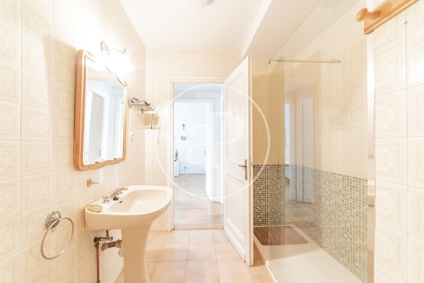 La zona de descanso ofrece más de cinco dormitorios, todos de buen tamaño, con una distribución que permite crear suites con vestidor y baño privado, despacho o dormitorios de invitados. La vivienda dispone actualmente de cuatro cuartos de baño, fácilmente actualizables a un estándar premium.