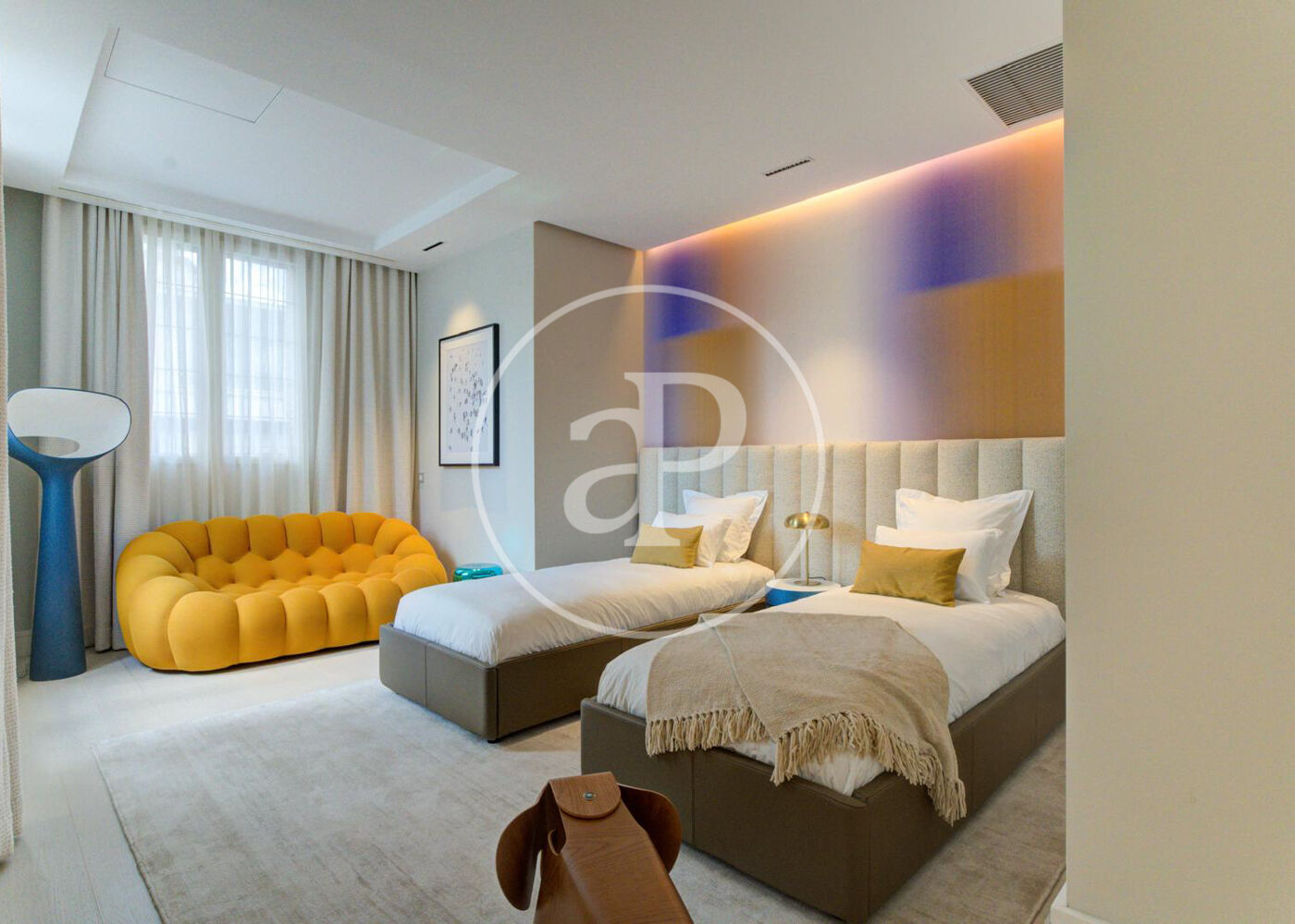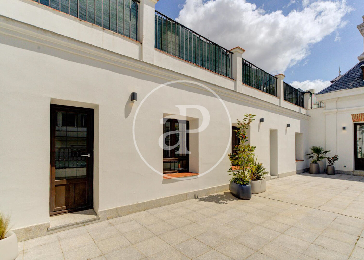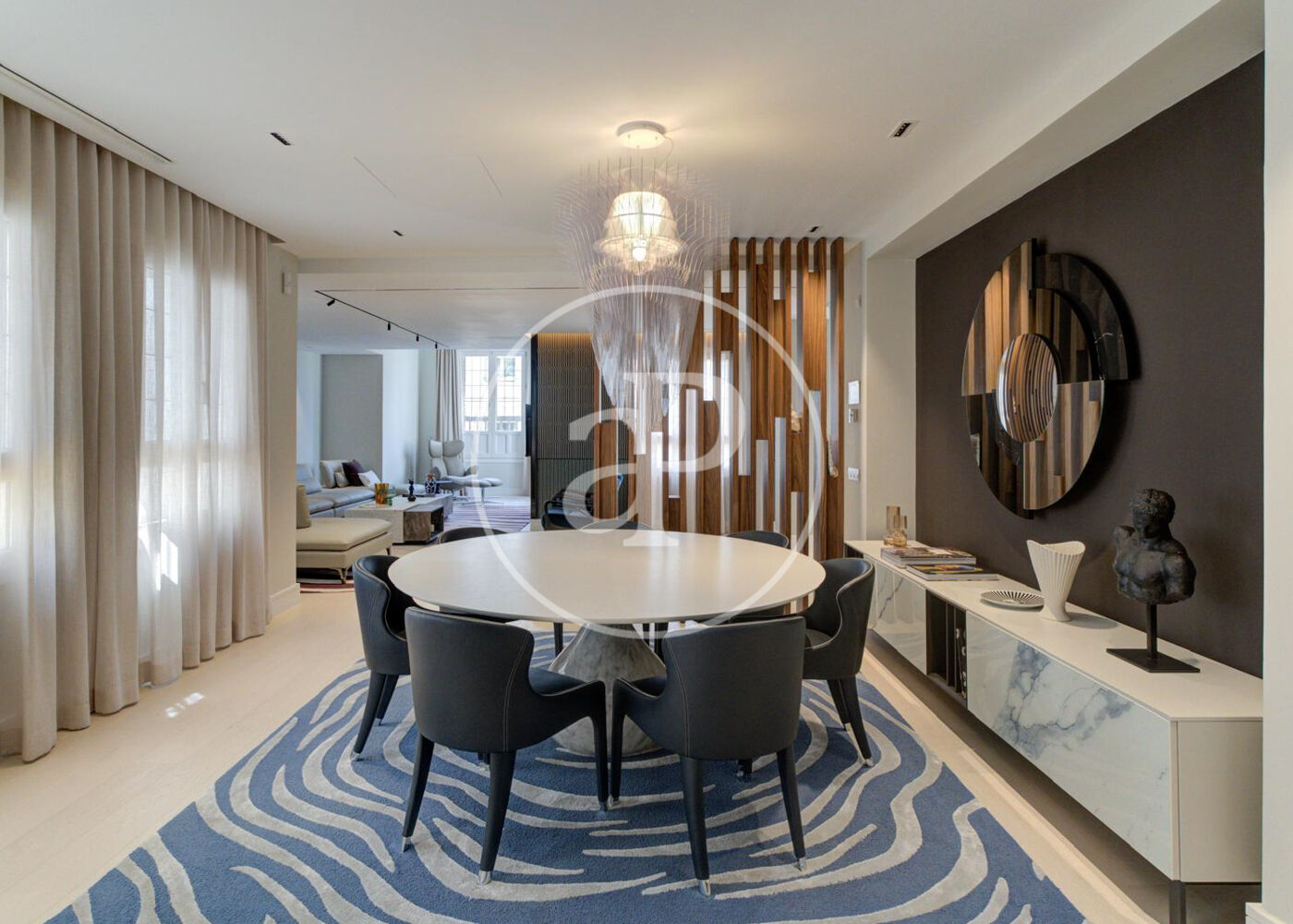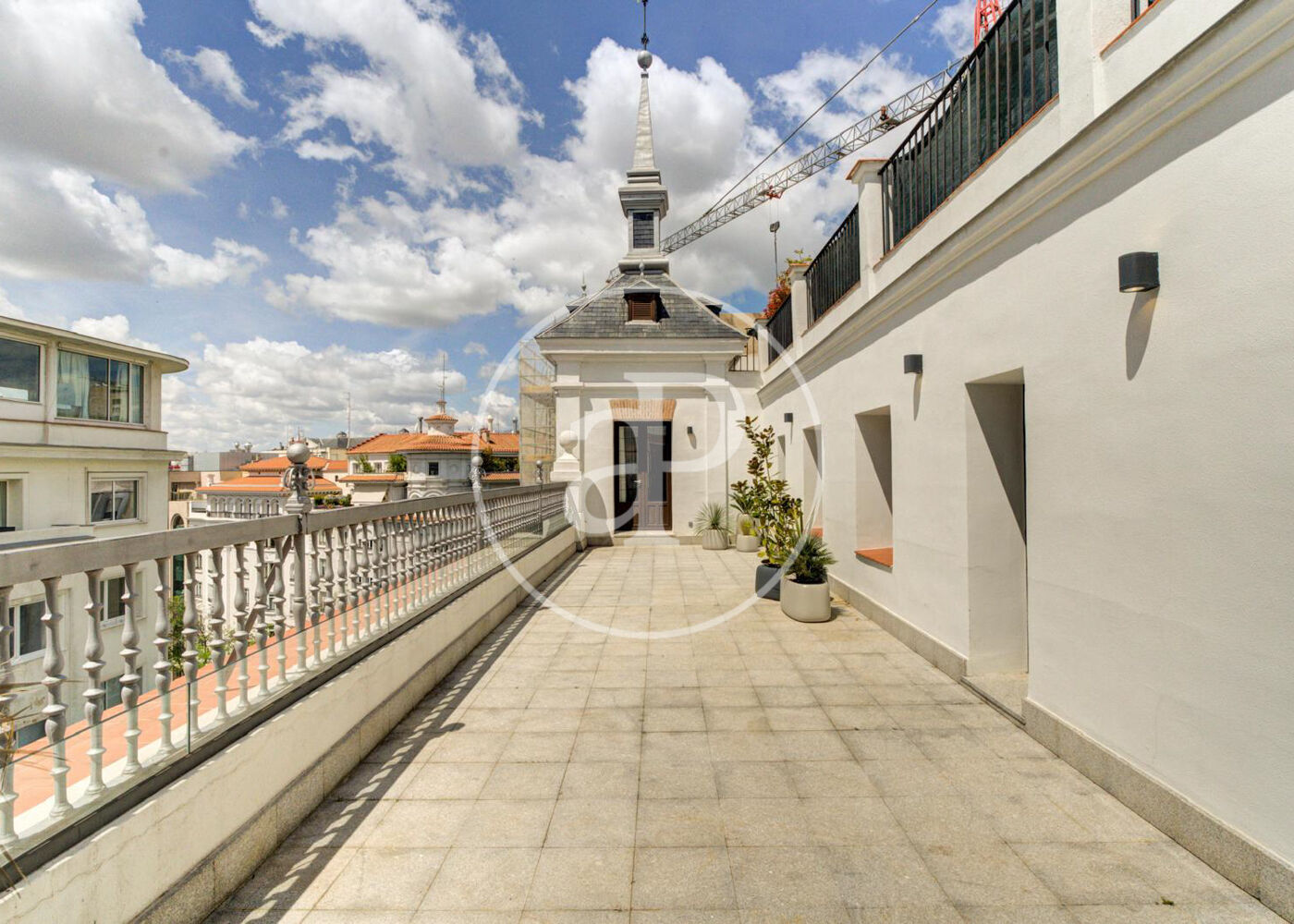 En una de las zonas más aristocráticas del Barrio de Salamanca, en la sexta planta de una preciosa casa-palacio, encontramos esta singular vivienda a estrenar de alrededor de 400 m2 y con una terraza exterior de uso privativo de 55 metros.