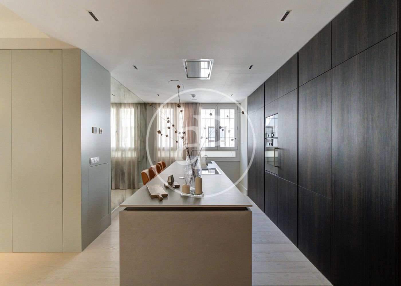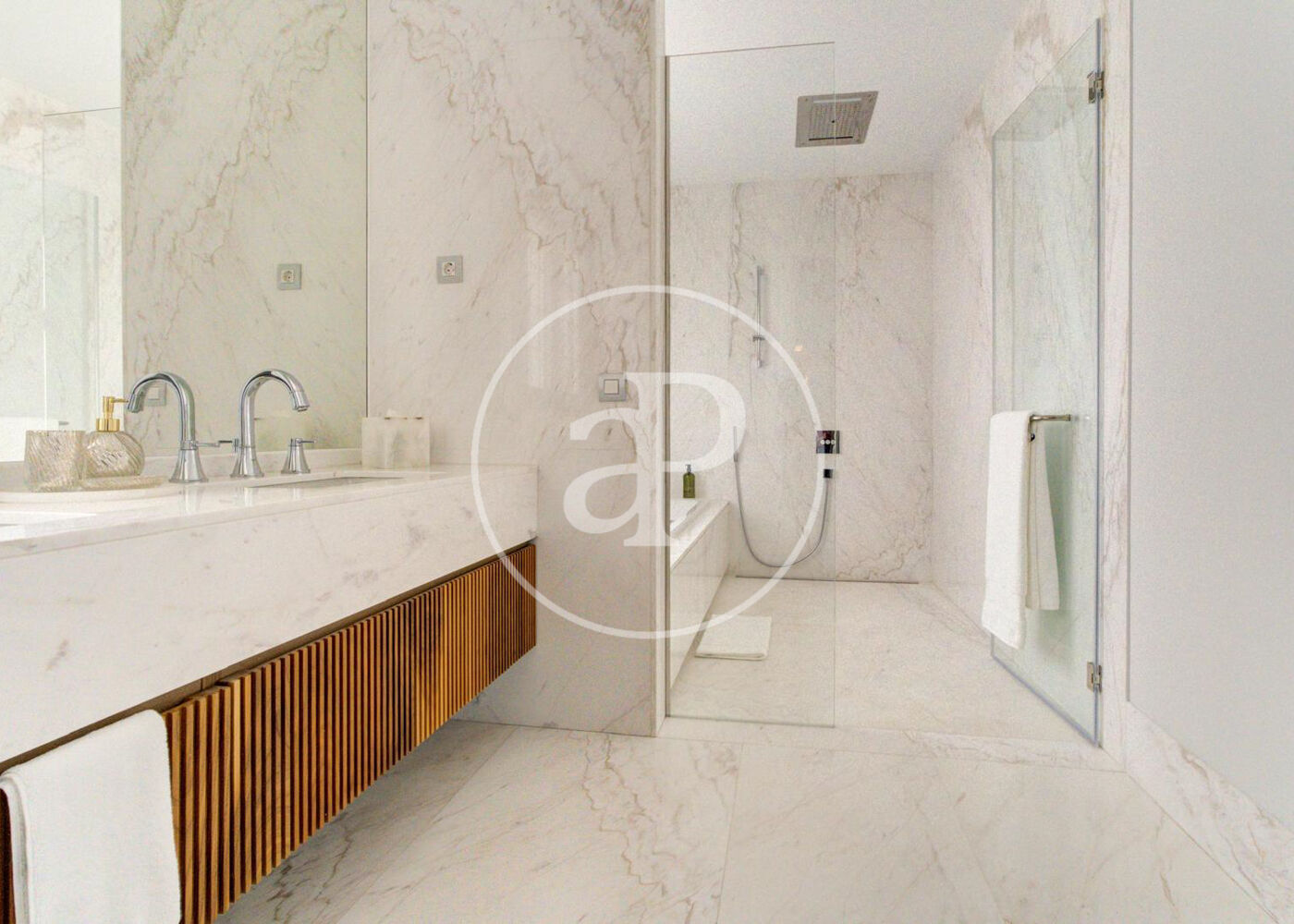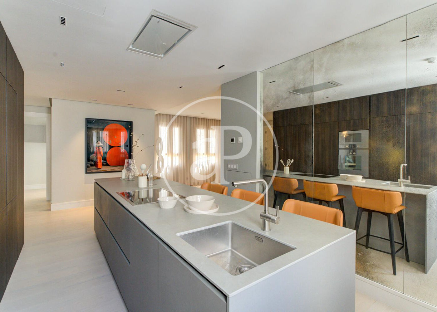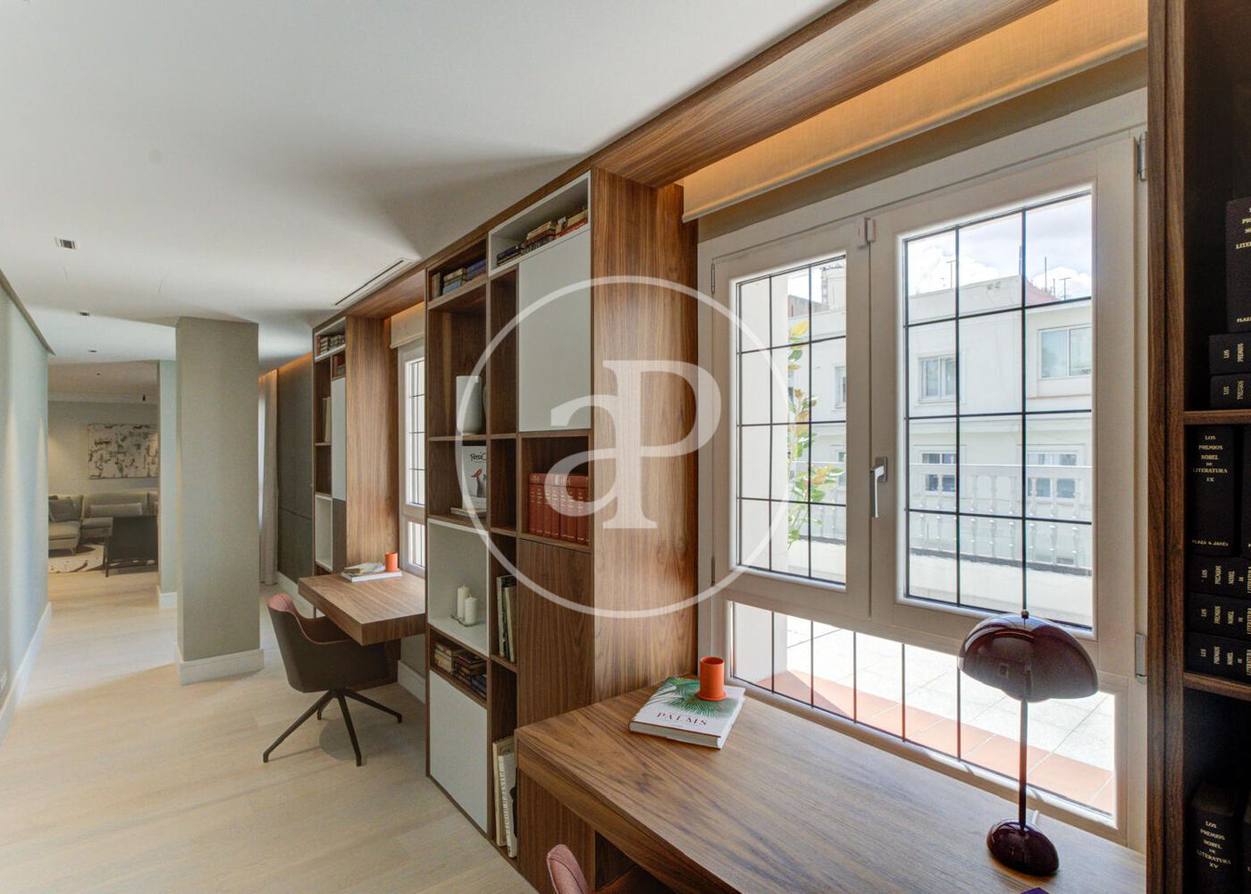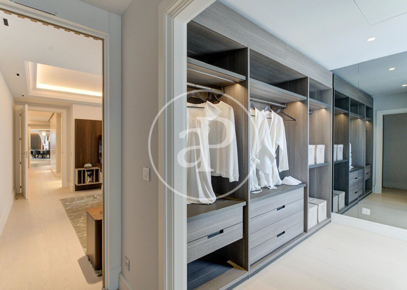En una de las zonas más aristocráticas del Barrio de Salamanca, en la sexta planta de una preciosa casa-palacio, encontramos esta singular vivienda a estrenar de alrededor de 400 m2 y con una terraza exterior de uso privativo de 55 metros.