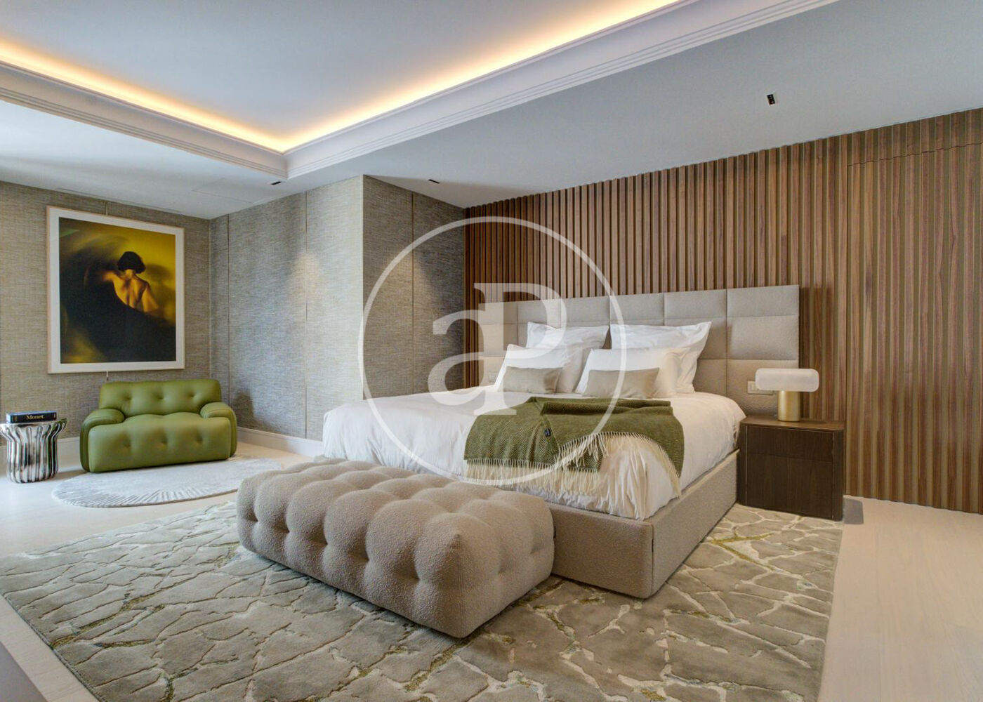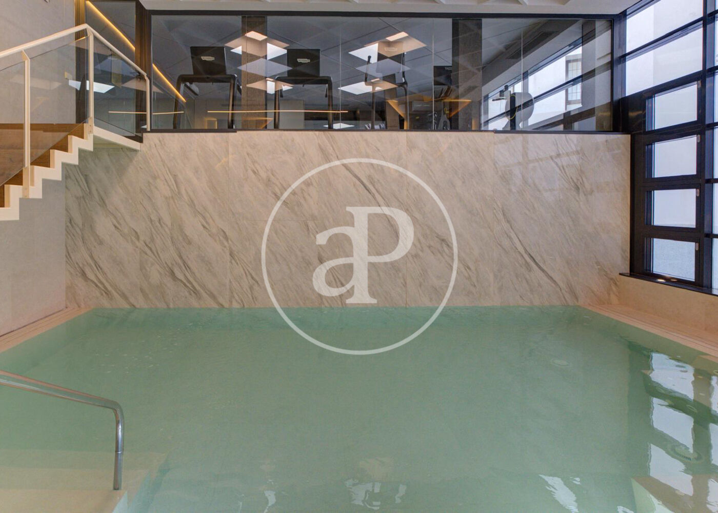 El inmueble ha sido renovado integralmente con las máximas calidades e incluye un cuidadísimo interiorismo, llevado a cabo por Roche Bobois, que conjuga una elegante decoración moderna con los elementos clásicos propios del edificio.