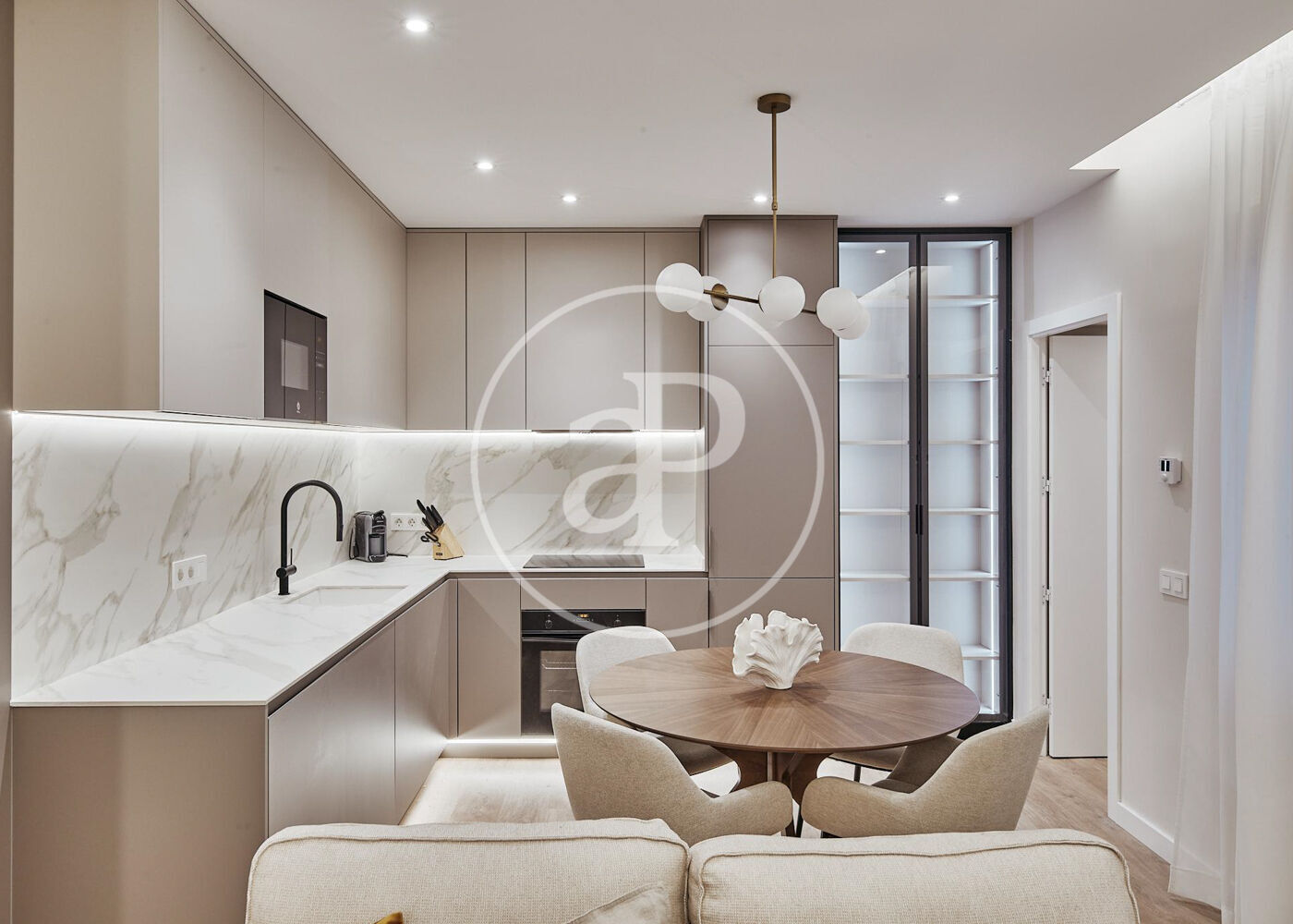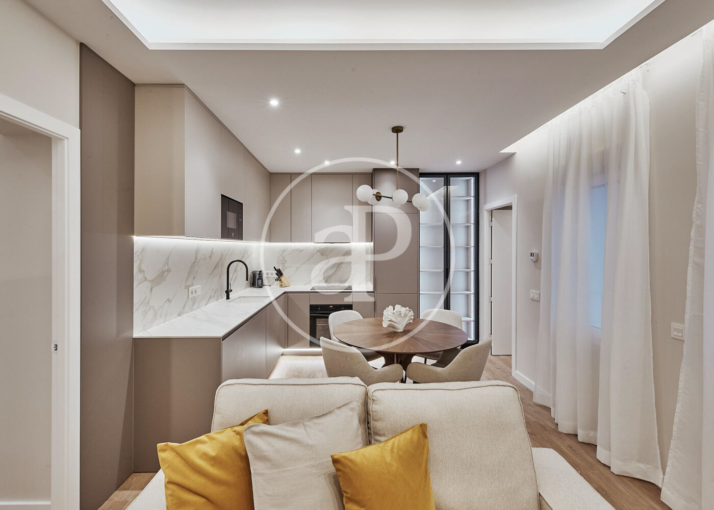 El piso ha sido reformado y se entrega amueblado, listo para entrar a vivir. Dispone de cocina equipada, calefacción comunitaria y aire acondicionado, ofreciendo confort durante todo el año. El edificio cuenta con ascensor y servicio de conserjería, un valor añadido en esta ubicación.