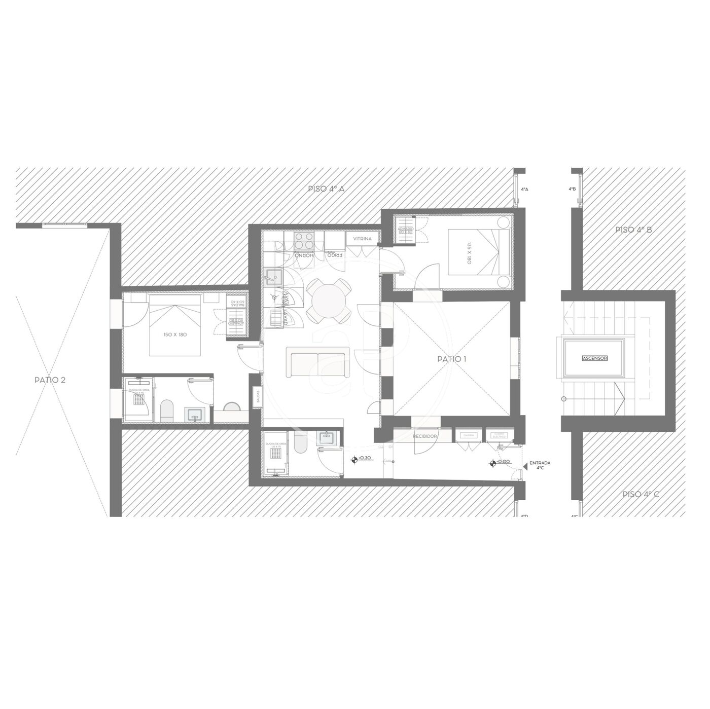 La vivienda se sitúa en una cuarta planta interior, lo que garantiza tranquilidad y aislamiento del ruido, y cuenta con una superficie aproximada de 80 m². La distribución es cómoda y funcional, con dos dormitorios dobles y dos baños completos, pensada para un uso práctico tanto como vivienda habitual como para inversión.