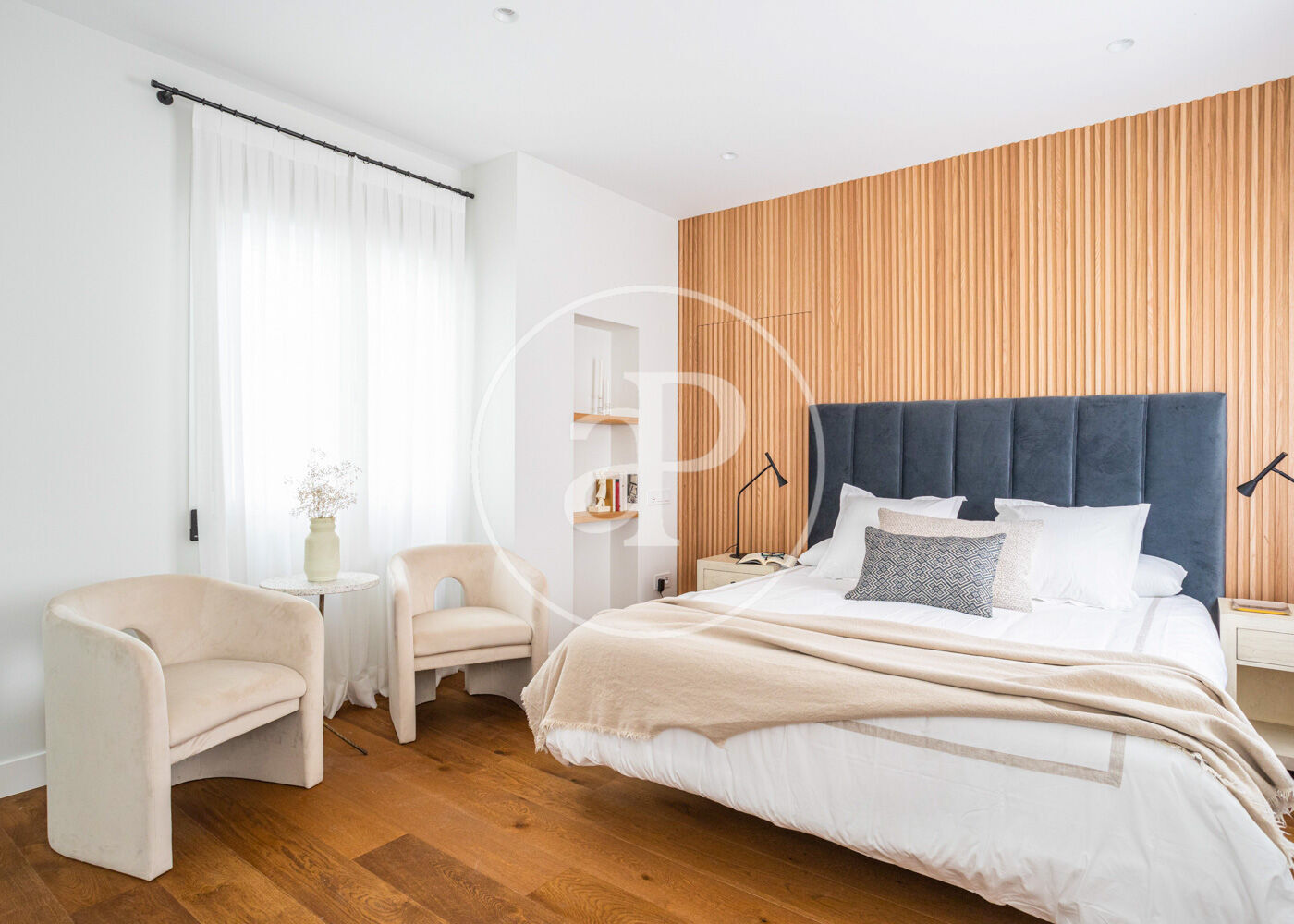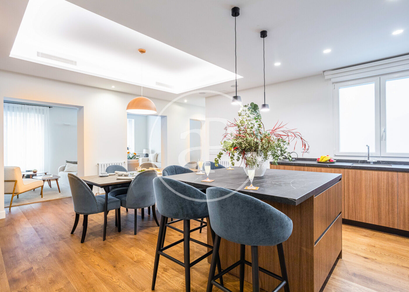 Precio variable según temporada. La vivienda de unos 176m2 útiles, situada en una tercera planta de un edificio de fachada clásica, se ha reformado íntegramente con altísimas calidades y se ha decorado con mucho mimo. Con la obra se modernizó la distribución, acercado la cocina a la zona de salón comedor para que quedase de esta forma integrada en la zona de día.