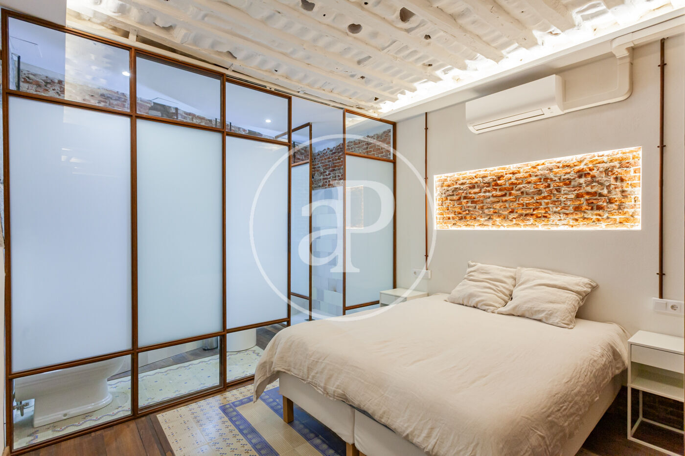 Con una reforma de lujo este semisótano situado en un edificio de 1910 cuenta con 3 ventanales a la calle. Tiene 94 m2 contando con comunes según catastro, de los que 81 son de viviendas. Se distribuye en dos amplias habitaciones dobles ambas con cuarto de baño en suite.