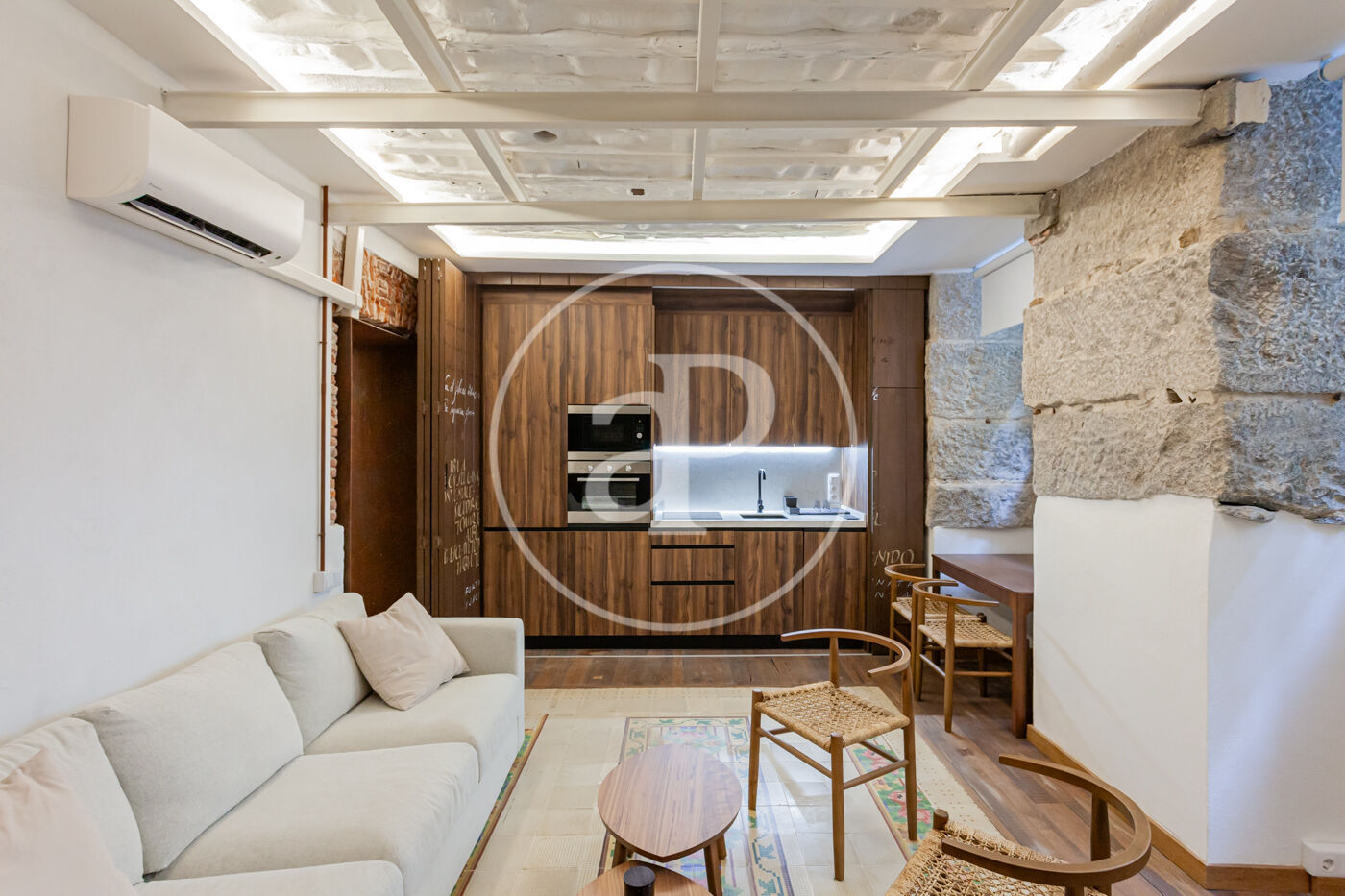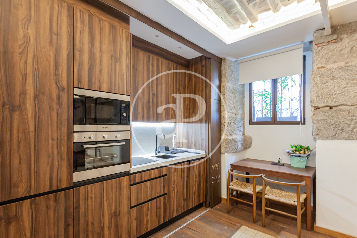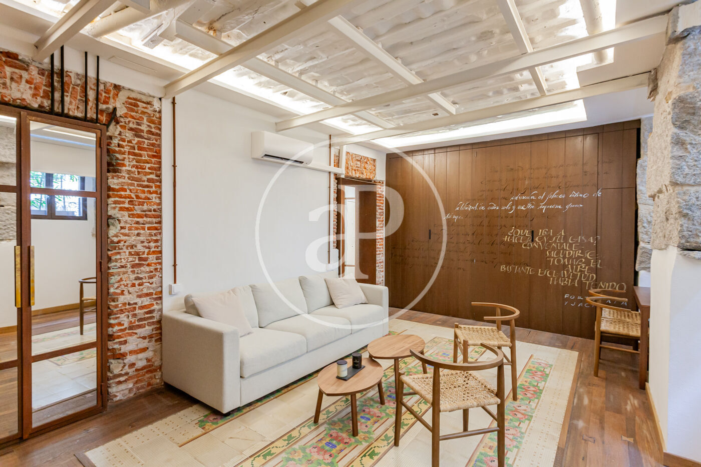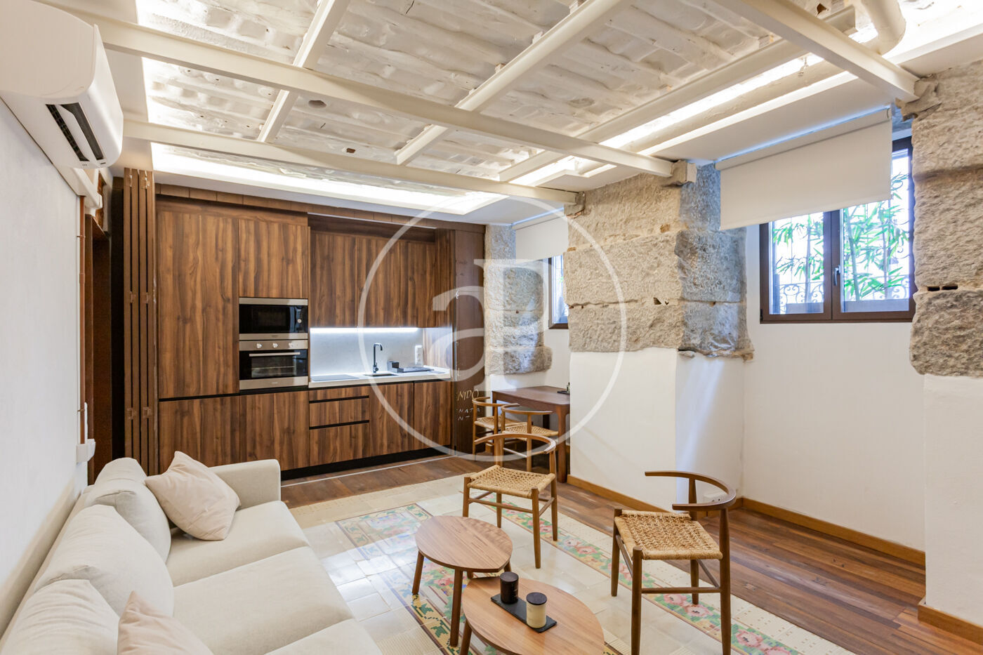 El salón-comedor incluye la cocina integrada en el mismo. Toda la casa cuenta con una excelente reforma, con ladrillo visto y una acertada utilización de la madera y materiales que hace de éste espacio un lugar perfecto tanto para residir como para alquilar.