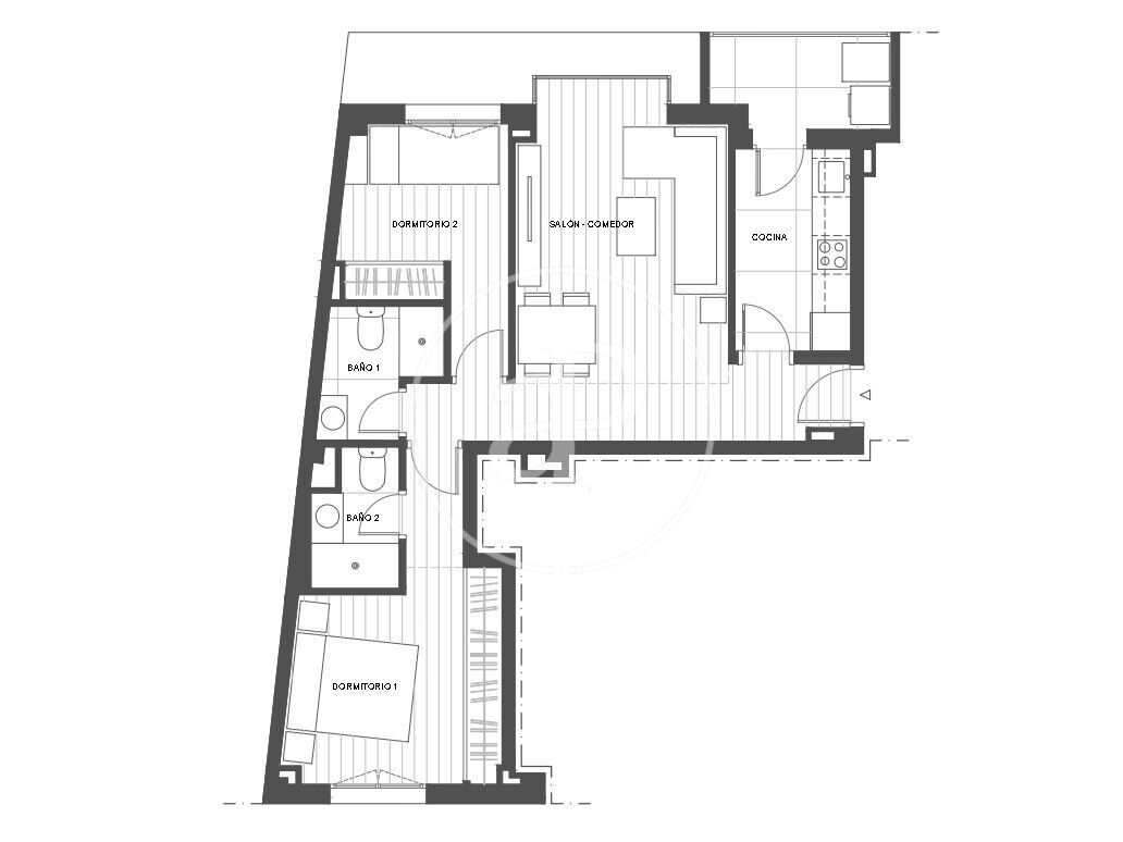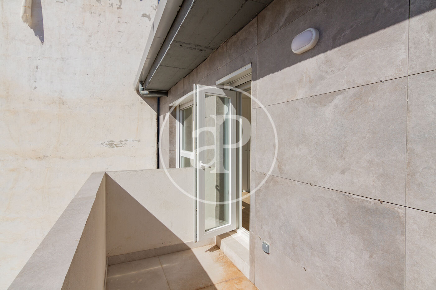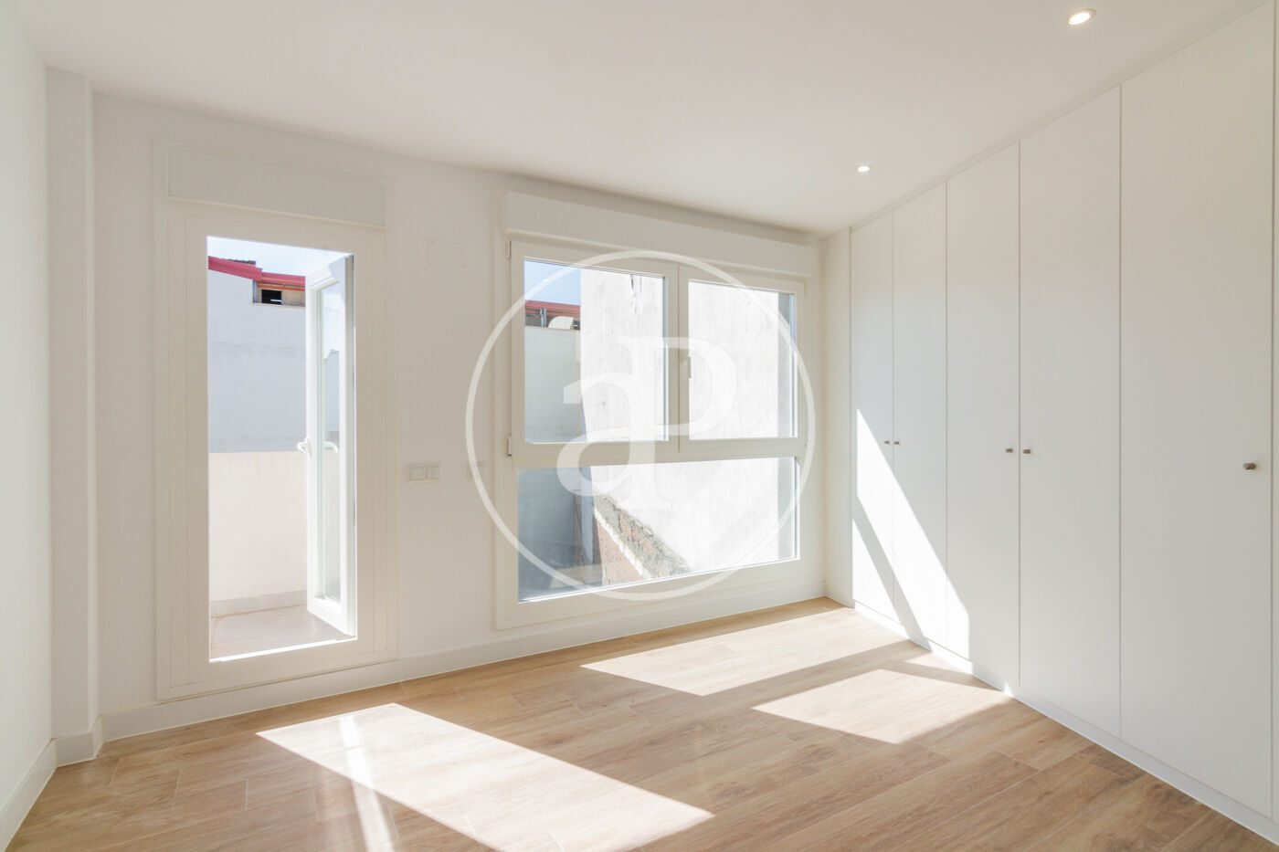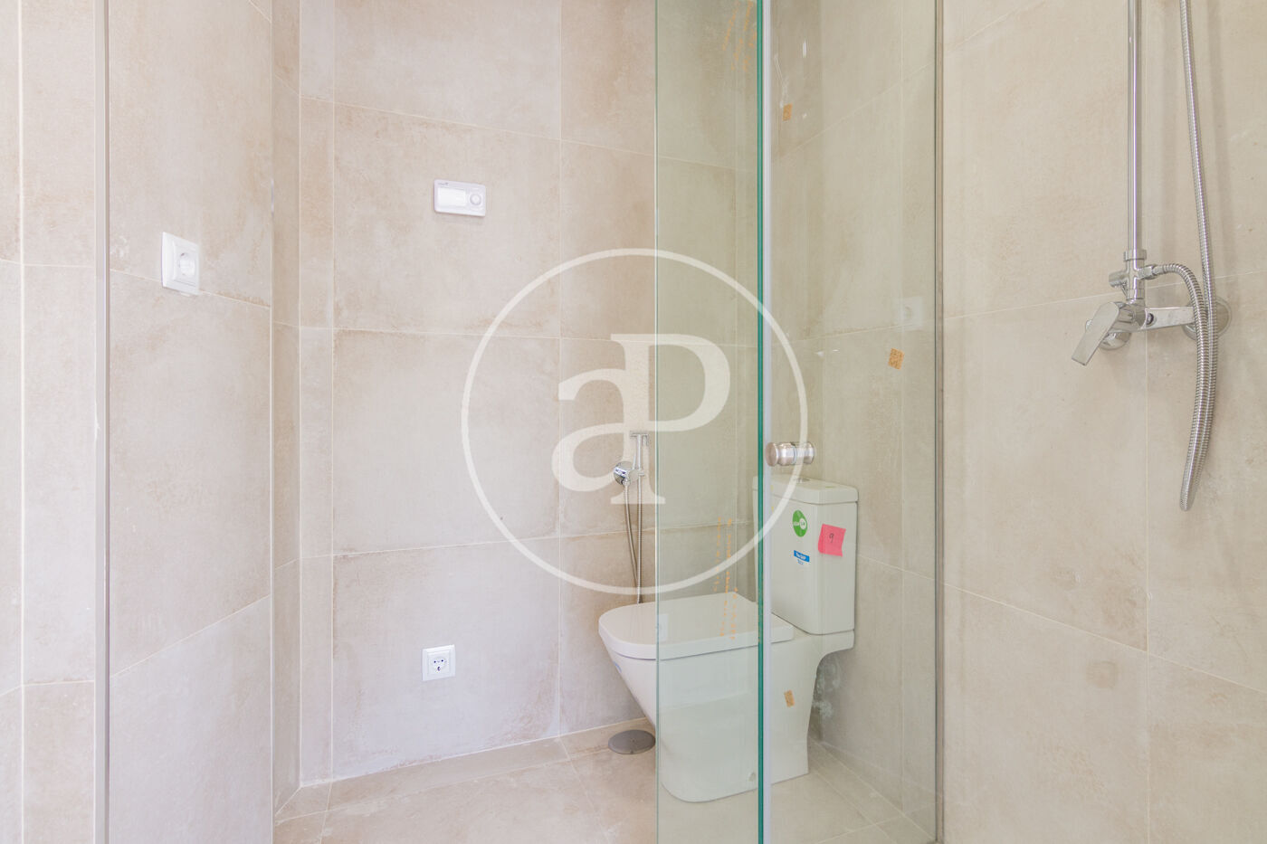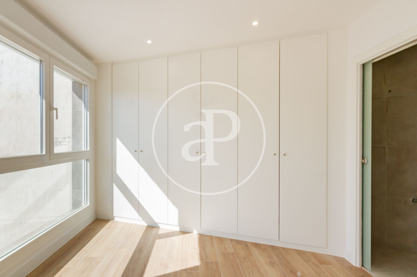 Edificio de viviendas en el icónico barrio de San Antoni - Eixample de Barcelona. Finca clásica del 1900 totalmente renovada con ascensor y zonas comunitarias. Se trata de un edificio conformado por planta sótano, planta baja, 7 plantas piso y cubierta. Un total de 12 apartamentos y dos loft que se entregan totalmente amueblados y equipados listos para entrar a vivir.  Un concepto de apartamentos convertibles dotados con un sistema de paneles correderos que permiten transformar un único espacio en un apartamento de dos dormitorios dobles en suite con camas ocultables en los armarios a medida, que van de un extremo a otro del apartamento. El núcleo central contiene la cocina y el baño. La cocina está totalmente equipada con electrodomésticos integrados (lavavajillas, horno, horno-microondas, cafetera y frigorífico), griferia zucchetti y encimera marca porcelanosa; el baño está dividido en tres piezas independientes con acceso doble desde cada dormitorio. El apartamento que presentamos, disponen de salida a balcón orientado a patio de manzana. Pavimentos continuos, enmarcados de mármol, revestimiento cerámico artesanal, encimera porcelanosa, grifería empotrada, ducha efecto lluvia y armarios a medida.  Las zonas comunes del edificio tienen aparcamiento para bicicletas, bodega de vinos, lavandería, sala de cine, gimnasio, coworking y terraza comunitaria con duchas exteriores, lounge y barra social.
