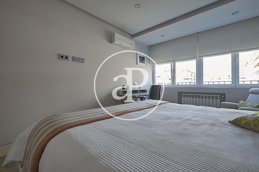 Magnifico piso exterior de 211 m² construidos ubicado en una sexta planta de la Av. de Brasil. Reformado por completo en el año 2017, incluyendo todas las instalaciones, fontanería, electricidad, contando con las mejores calidades del mercado. Debido a su altura, una 6ª planta, la vivienda tiene una gran luminosidad lo que unido a las grandes dimensiones de los espacios, salón de unos 35m², cocina con isla de unos 22m², tres dormitorios dobles, el principal en suite, aportan a la propiedad una amplitud envidiable. La vivienda además cuenta con un aseo de cortesía, dos baños completos, uno de ellos en suite, vestidor en el dormitorio principal y gran espacio para almacenaje en toda la casa. Destacar que debido a los metros con los que cuenta la propiedad se puede hacer un 4º dormitorio con una sencilla obra, poniendo un tabique. El edificio dispone de servicio de portería, 2 ascensores, 1 montacargas, calefacción central con contadores individuales. Además la vivienda cuenta una plaza de garaje y trastero en el mismo edificio incluidos en el precio.