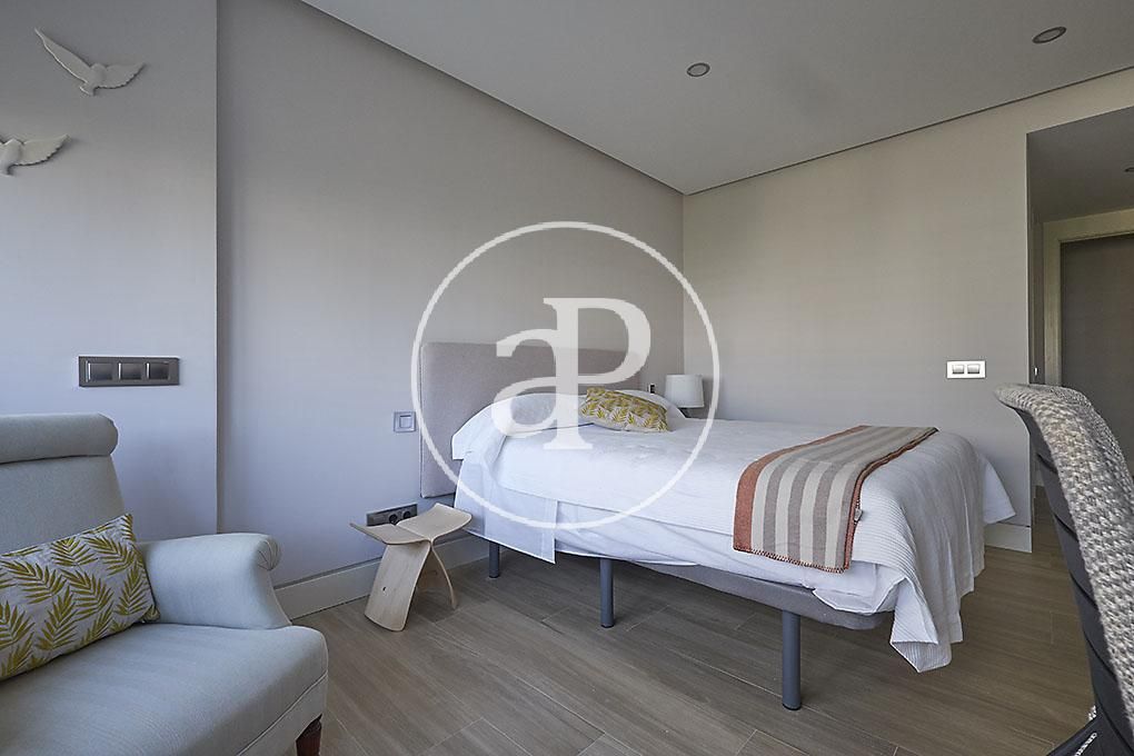 En el corazón de Sant Andreu encontramos esta espectacular vivienda familiar que puede ser también una buenísima oportunidad de inversión ya que dispone de licencia turística. La propiedad está ubica en la mejor zona del barrio de Sant Andreu de Palomar con vistas a su iglesia. Está distribuida en planta sótano, planta baja, dos plantas altas y una planta bajo cubierta, con unas dimensiones de 608 m2 construidos contando tanto la zona interior como la exterior. Al entrar en la vivienda nos encontramos con un distribuidor, el elevador del parking, un baño y la zona de día compuesta de una increíble cocina equipada con los mejores electrodomésticos, un salón/comedor con chimenea y una preciosa terraza con barbacoa, ideada para disfrutar de grandes momentos con amigos y familia. A la planta sótano se accede por la escalera interior o bien por elevador de coches dando acceso al parking con capacidad para 3 coches. También encontramos un aseo, un trastero y una zona de fiestas que da paso a la bodega. La casa está construida con los mejores materiales tanto interiores como exteriores, tiene ascensor para facilitar la movilidad entre las diferentes plantas, sistema de domótica, calefacción/aire acondicionado centralizado, y también cuenta con un sistema de música integrado. En su precio se incluye todo el mobiliario. En la primera planta su precioso distribuidor nos lleva a la suite con vestidor y baño, a los dos dormitorios dobles con un baño para compartir, y a la zona de lavado/planchado, así como al patio interior que es una gran vía de entrada de luz adicional a la casa. En la segunda planta se ubica una de las zonas más deseadas de la casa ya que cuenta con un espacio de gimnasio, con sauna y zona de aguas incluidas que permite cuidarse y relajarse al llegar a casa, además de 2 espacios muy versátiles por su gran amplitud y que podrían ser 2 dormitorios adicionales o bien equiparse como despacho o zona de cine, según las necesidades. Y finalmente en la planta cubierta encontramos la guinda del pastel, una increíble piscina y zona de solárium que completan esta inigualable vivienda.  El barrio de Sant Andreu de Palomar es un barrio histórico de la ciudad de Barcelona, único porque recuerda el pueblo que fue en su momento y que cuenta con unas increíbles infraestructuras y conexiones que lo hacen un lugar ideal para vivir.