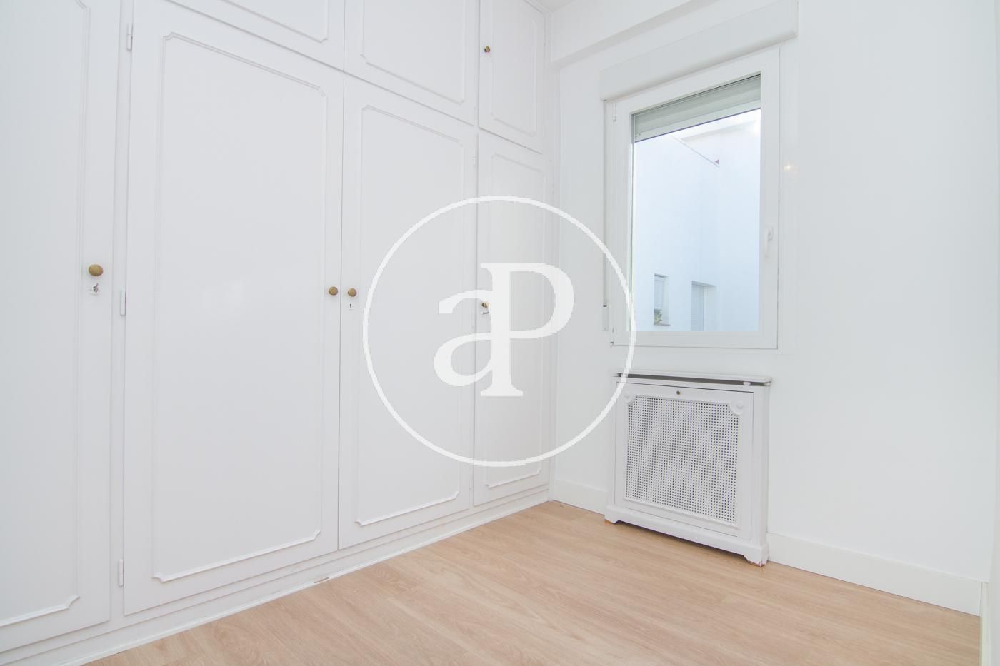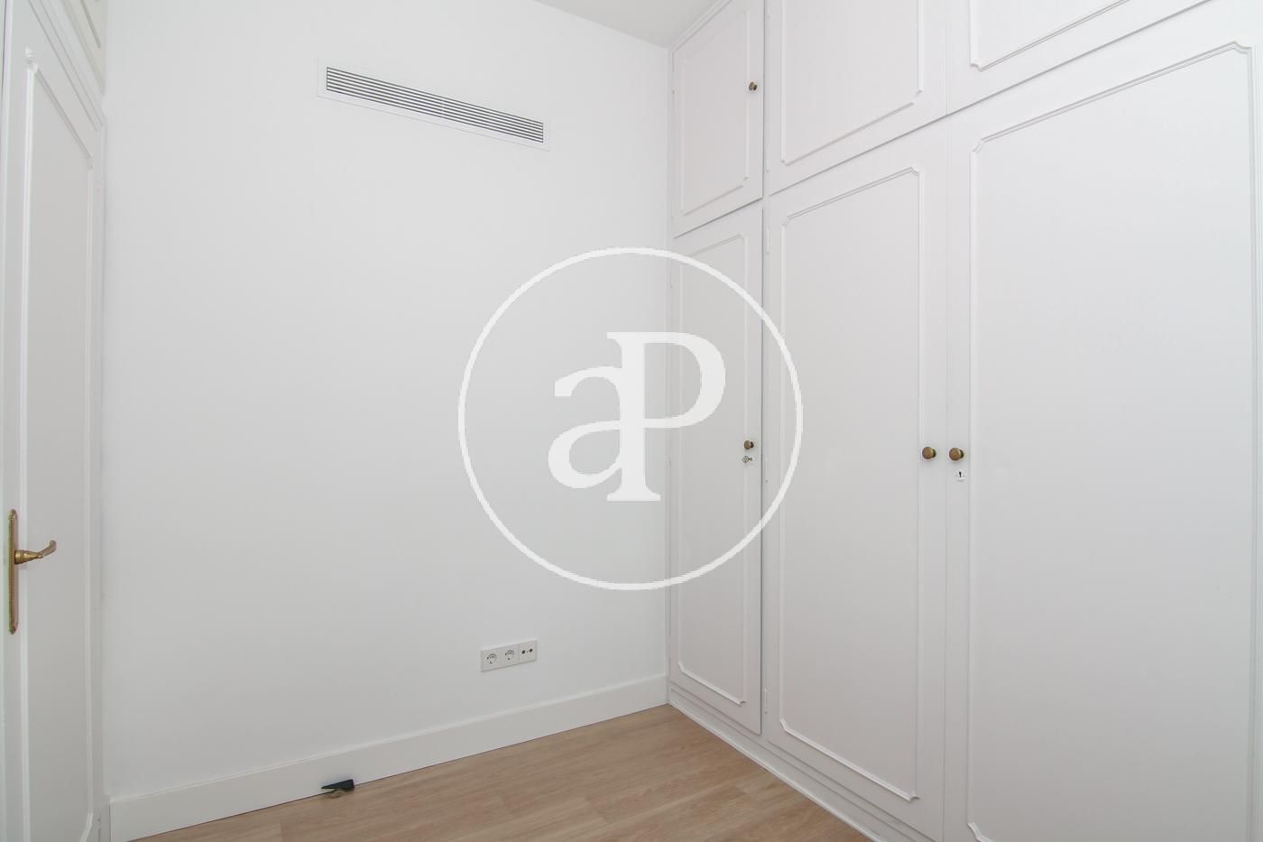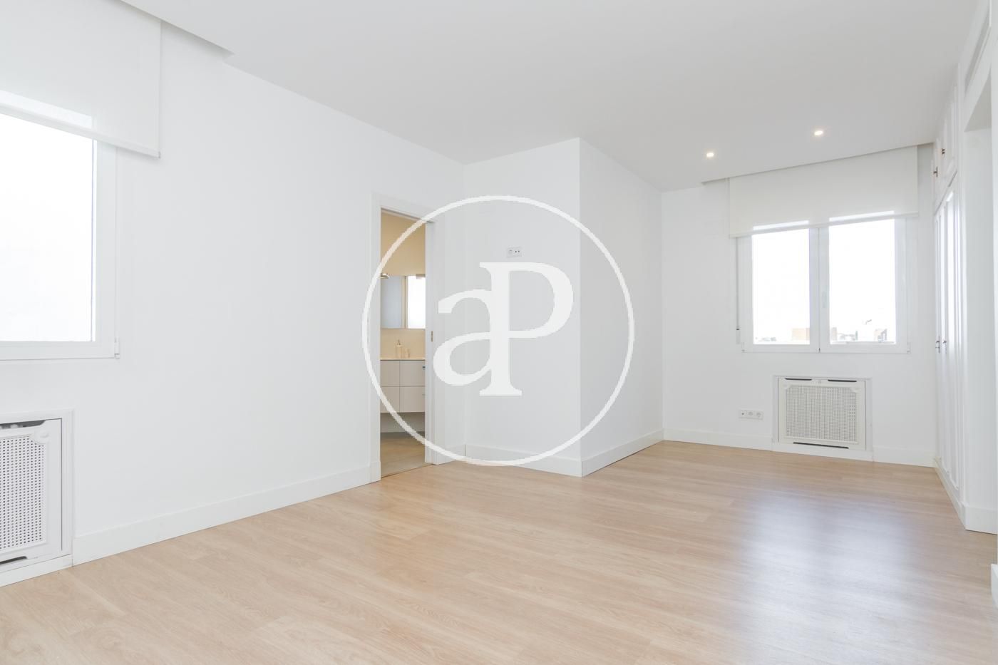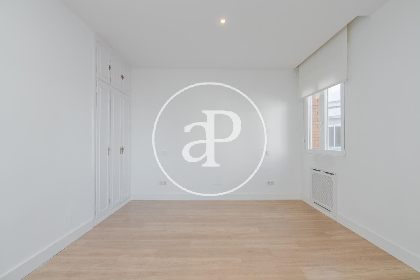 Exclusivo ático en alquiler de 158 m2, reformado, en finca señorial con portero físico y ascensor en El Viso. Desde la entrada accedemos a un enorme salón comedor, con muchísima luz, gracias a la gran terraza que hay. Encontramos la cocina a la entrada del pasillo, completamente equipada con todos los electrodomésticos de alta gama. A continuación, en la zona de noche, hay dos habitaciones con armarios empotrados y dos baños completos. Al fondo de la vivienda está la habitación principal, de gran tamaño, con armarios empotrados y baño en suite. La casa tiene calefacción central incluida en el precio y plaza de garaje en la misma finca, también incluida. Ubicado en una de las mejores zonas de El Viso, encontramos gran variedad de comercios, restaurantes, colegios y todo tipo de transportes. A 5 minutos andando del Auditorio Nacional.