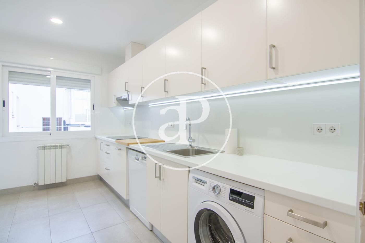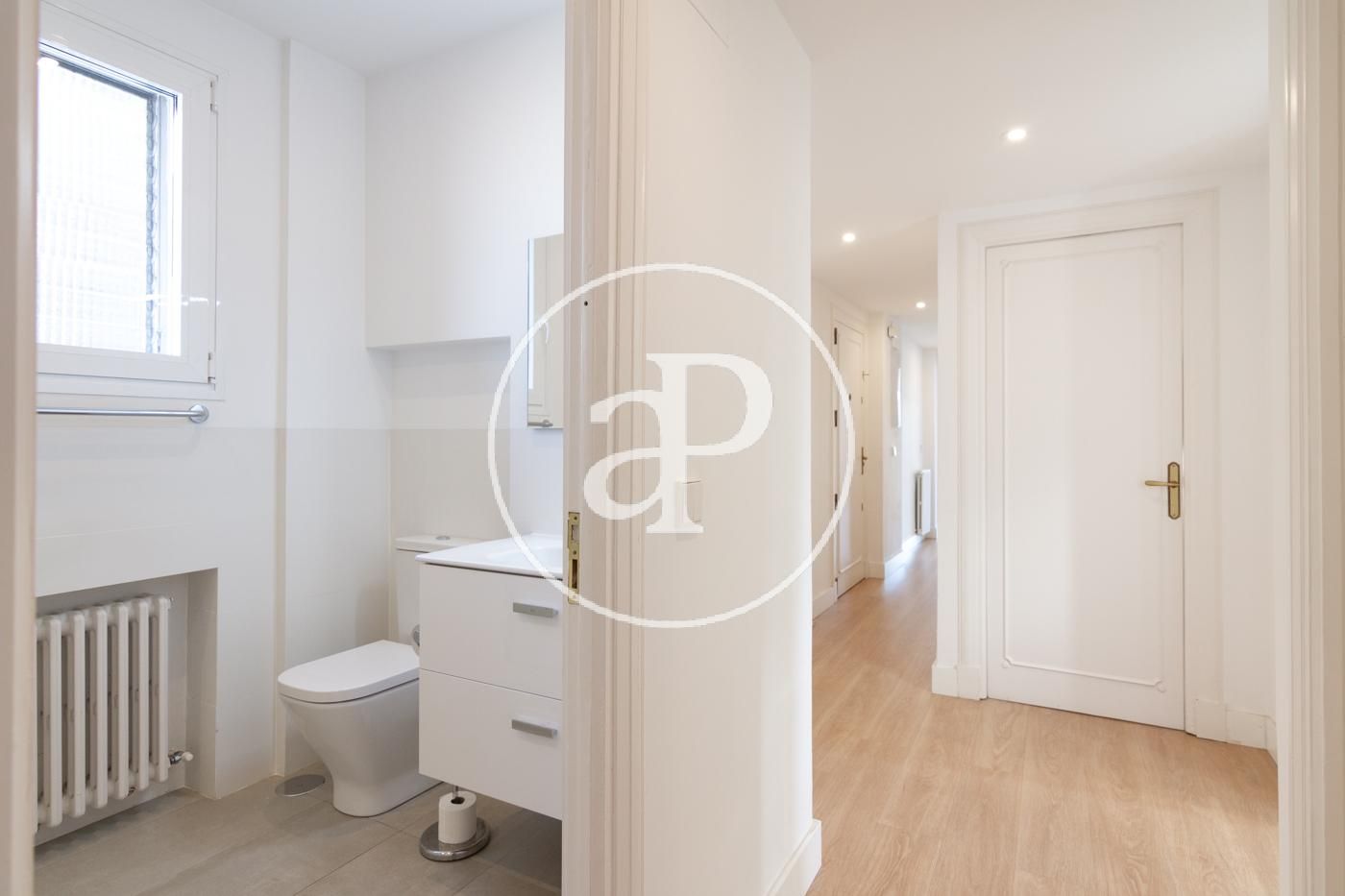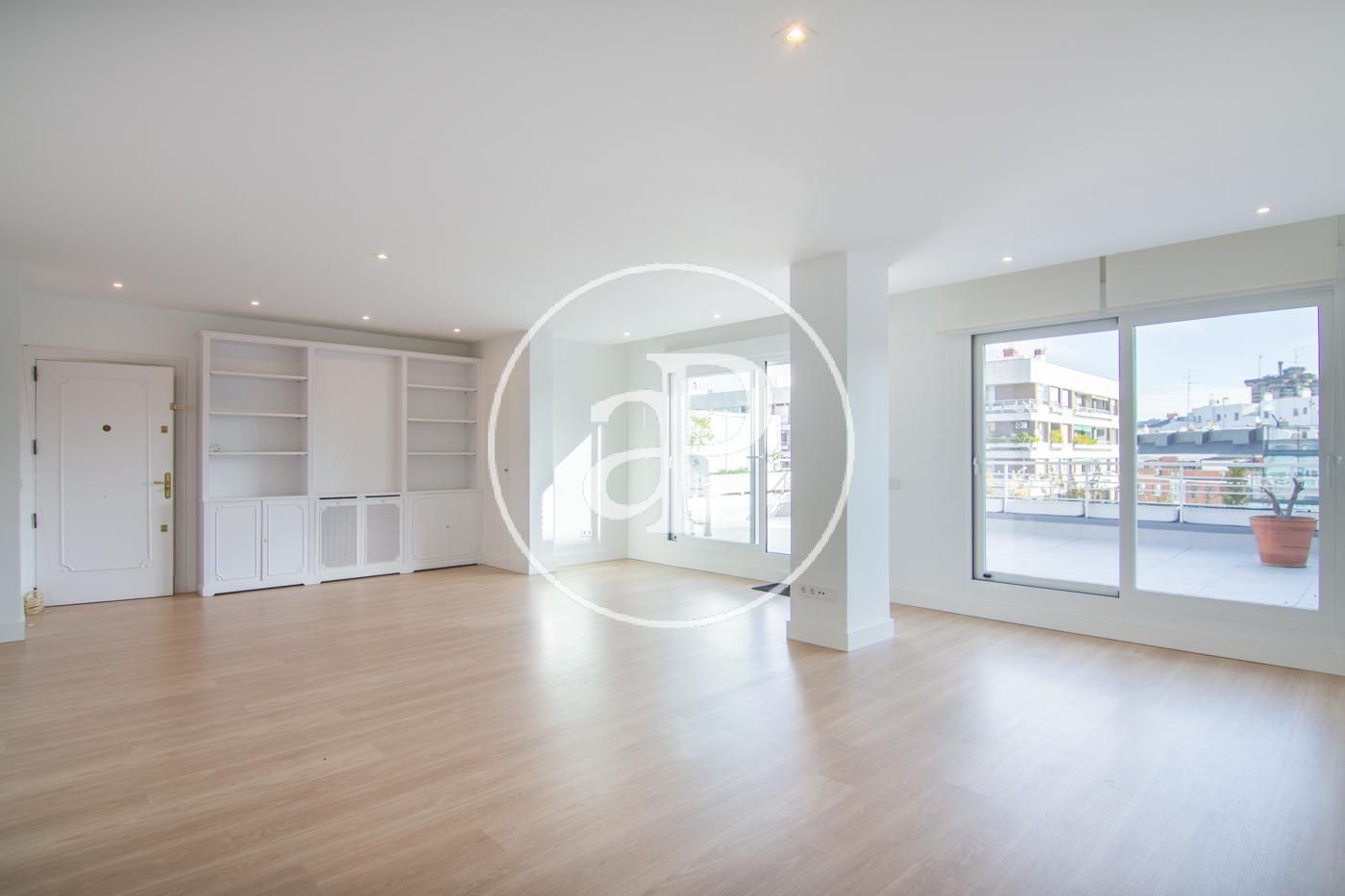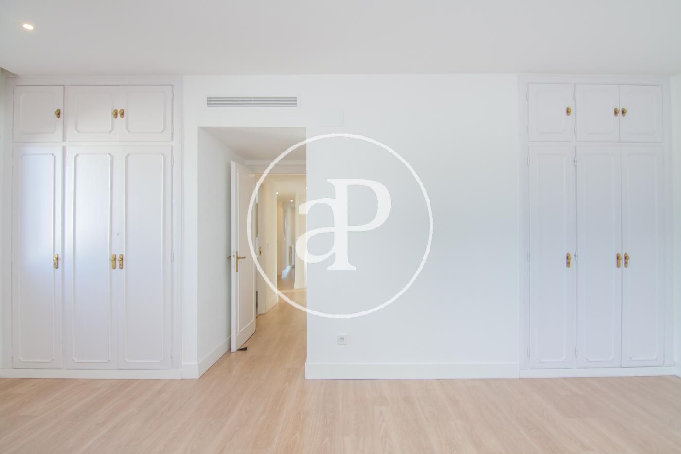 Exclusivo ático en alquiler de 158 m2, reformado, en finca señorial con portero físico y ascensor en El Viso. Desde la entrada accedemos a un enorme salón comedor, con muchísima luz, gracias a la gran terraza que hay. Encontramos la cocina a la entrada del pasillo, completamente equipada con todos los electrodomésticos de alta gama. A continuación, en la zona de noche, hay dos habitaciones con armarios empotrados y dos baños completos. Al fondo de la vivienda está la habitación principal, de gran tamaño, con armarios empotrados y baño en suite. La casa tiene calefacción central incluida en el precio y plaza de garaje en la misma finca, también incluida. Ubicado en una de las mejores zonas de El Viso, encontramos gran variedad de comercios, restaurantes, colegios y todo tipo de transportes. A 5 minutos andando del Auditorio Nacional.