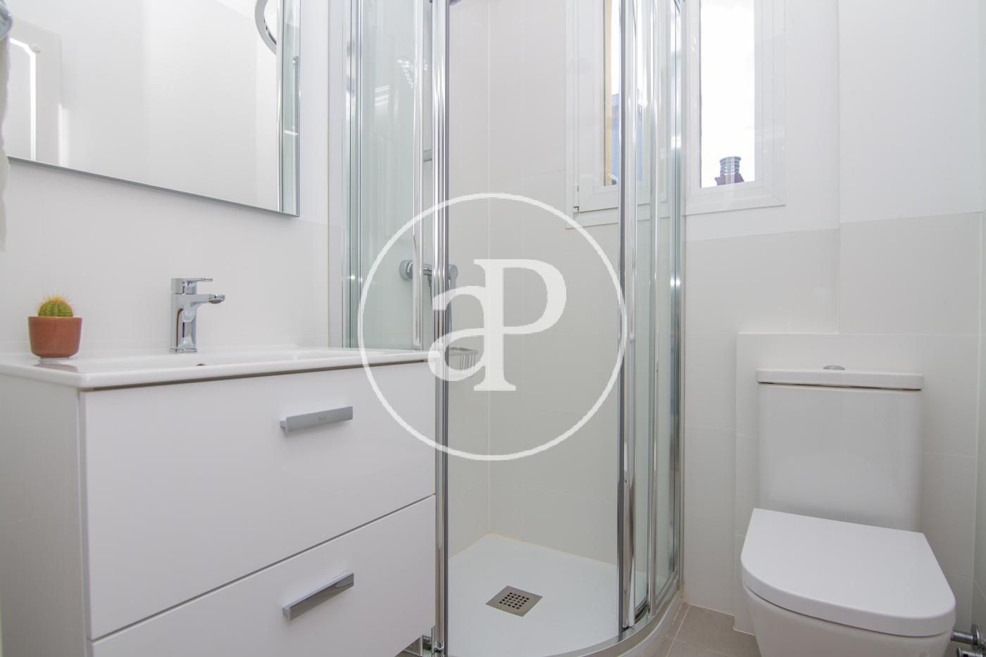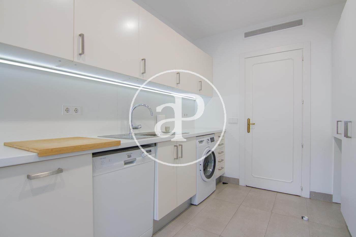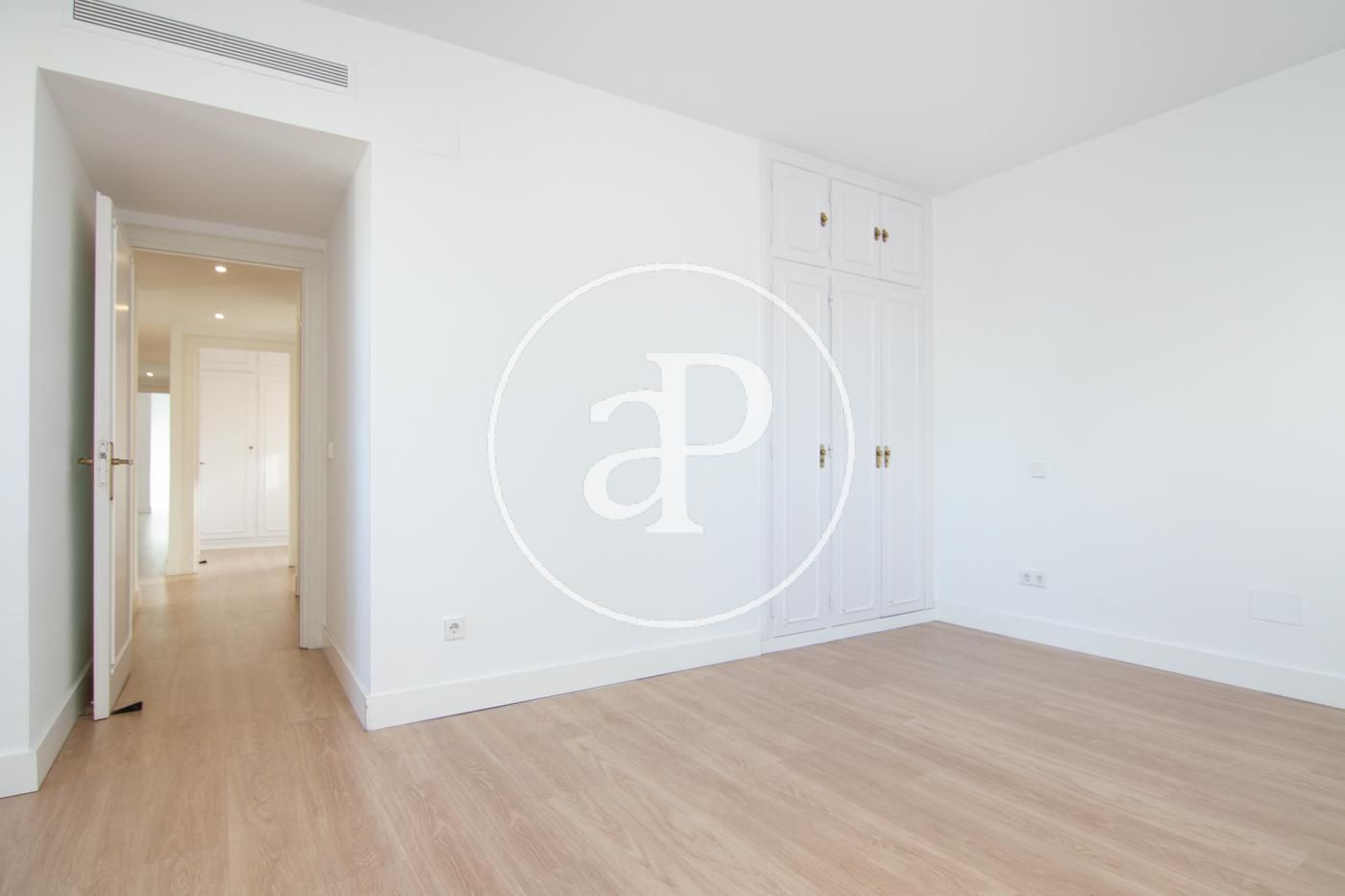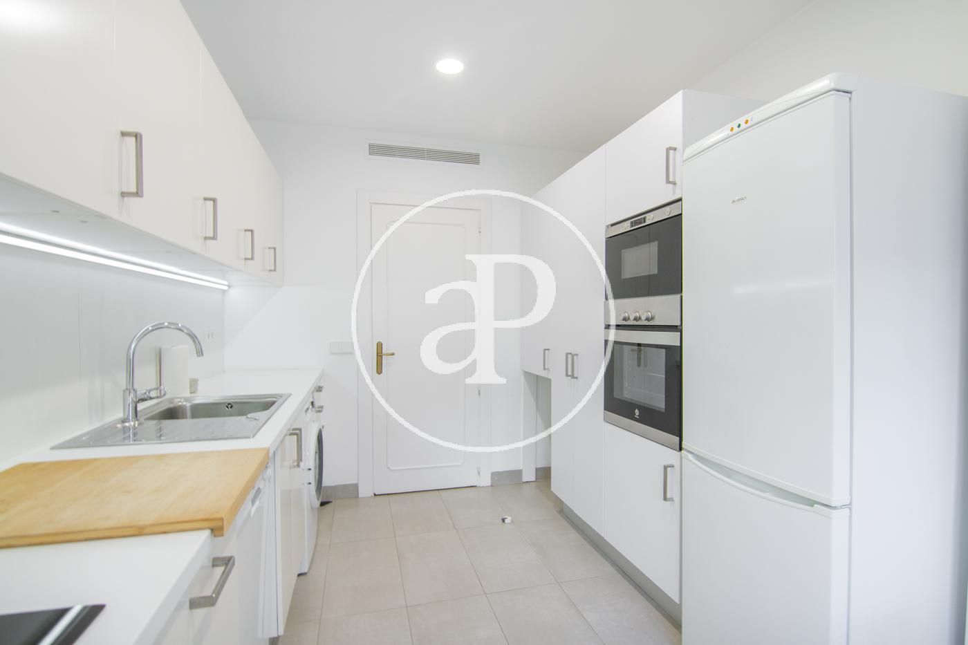 Exclusivo ático en alquiler de 158 m2, reformado, en finca señorial con portero físico y ascensor en El Viso. Desde la entrada accedemos a un enorme salón comedor, con muchísima luz, gracias a la gran terraza que hay. Encontramos la cocina a la entrada del pasillo, completamente equipada con todos los electrodomésticos de alta gama. A continuación, en la zona de noche, hay dos habitaciones con armarios empotrados y dos baños completos. Al fondo de la vivienda está la habitación principal, de gran tamaño, con armarios empotrados y baño en suite. La casa tiene calefacción central incluida en el precio y plaza de garaje en la misma finca, también incluida. Ubicado en una de las mejores zonas de El Viso, encontramos gran variedad de comercios, restaurantes, colegios y todo tipo de transportes. A 5 minutos andando del Auditorio Nacional.