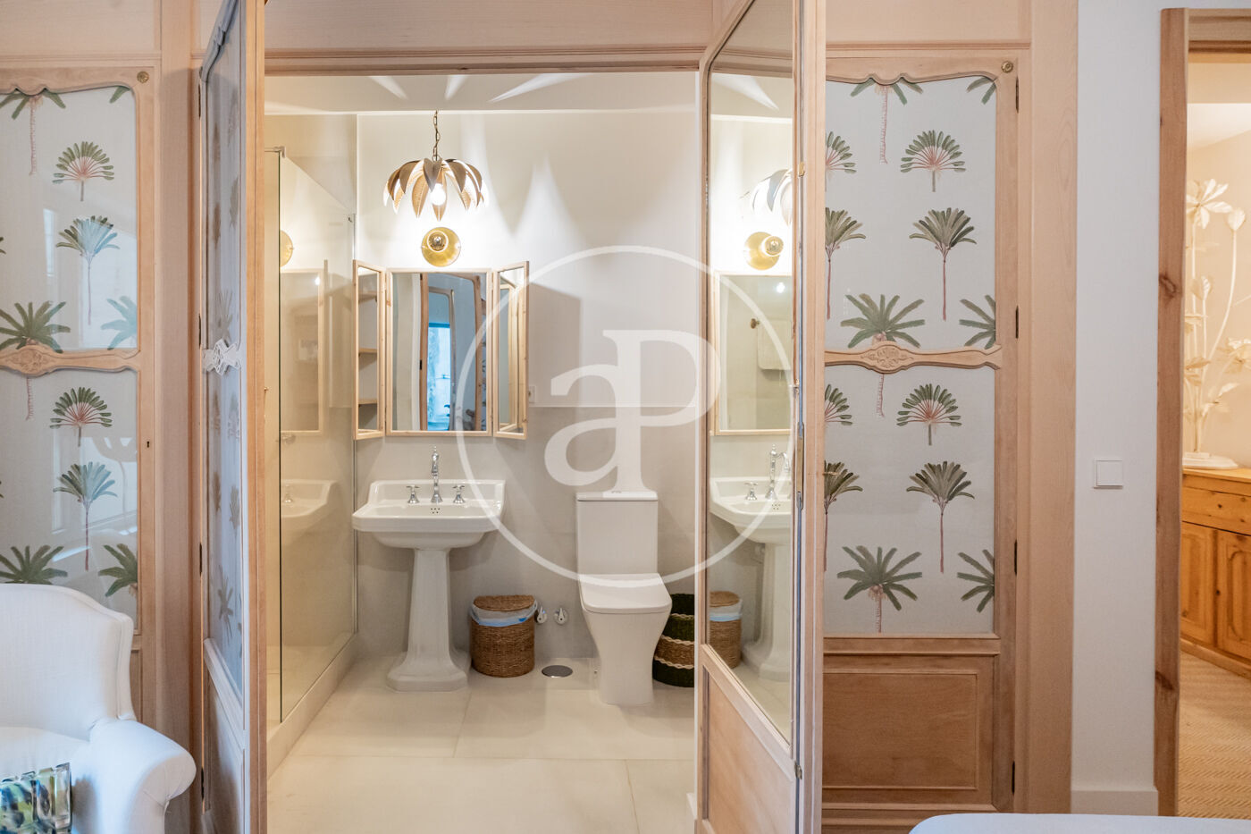 La zona de descanso se compone de tres dormitorios principales, todos con baño en suite, a los que se suma una cuarta habitación de servicio también con su propio cuarto de baño. En total, la vivienda dispone de cuatro baños completos, todos integrados en los dormitorios, garantizando privacidad y confort.