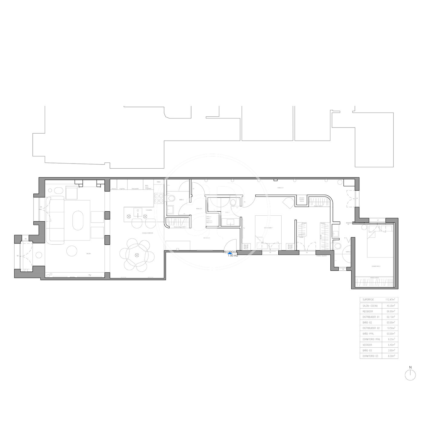 Adicionalmente, la propiedad ofrece una interesante alternativa de redistribución que permite configurar una vivienda de dos amplísimos dormitorios, destacando un espectacular dormitorio principal en suite con gran vestidor, una opción especialmente atractiva para quienes priorizan espacios más generosos. Esta propuesta se muestra en el plano adjunto.