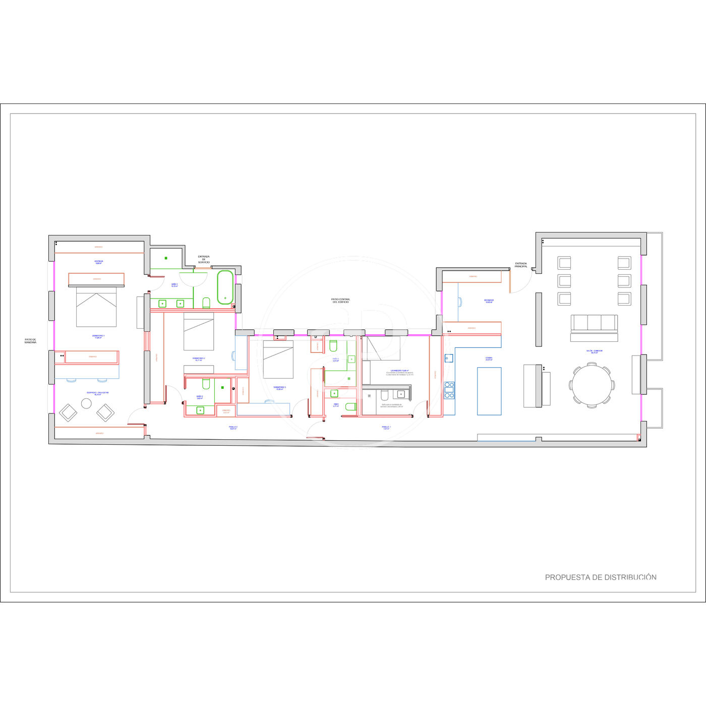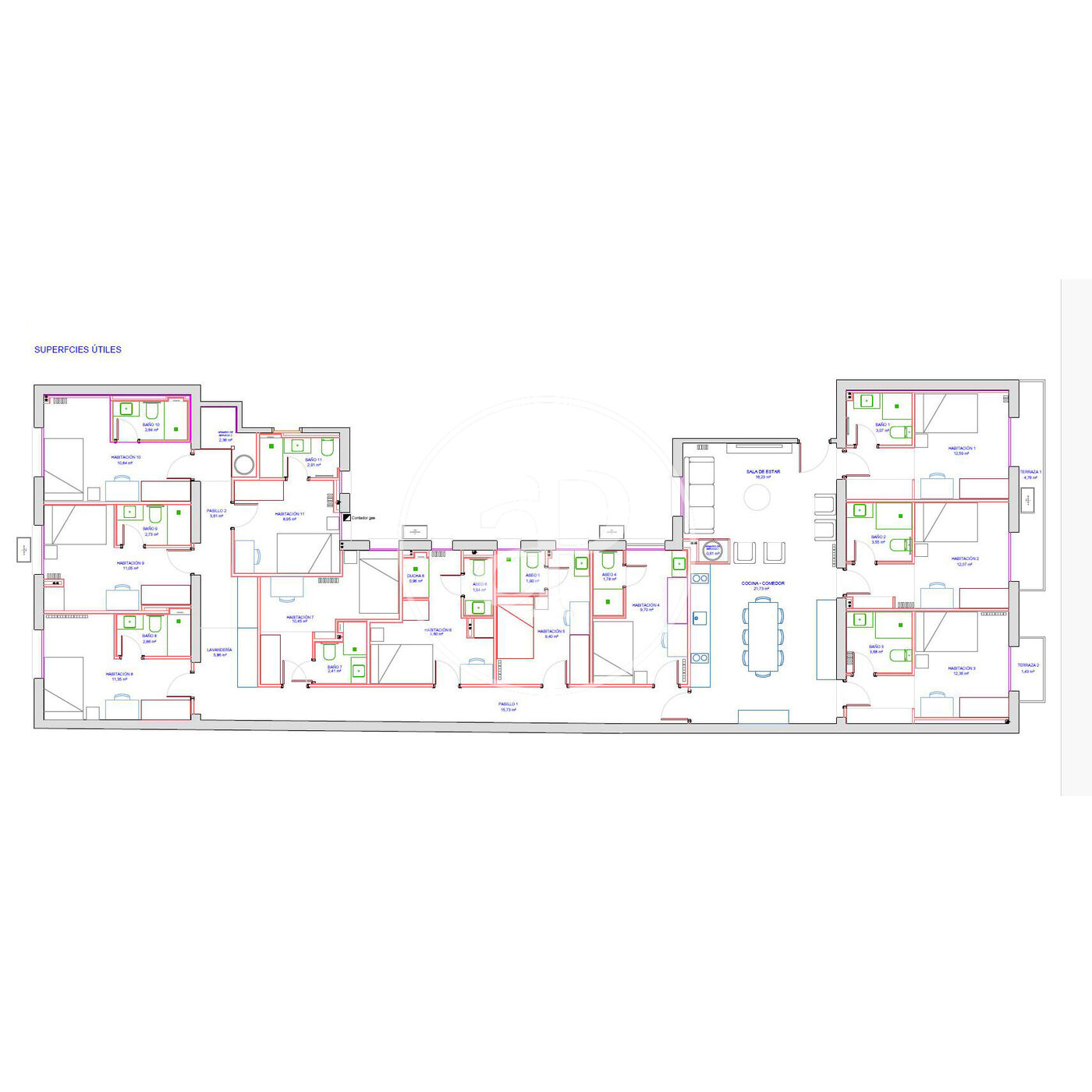 - OPCIÓN 1. Para coliving. Con propuesta de distribución y análisis de rentabilidades para la realización de un coliving de 11 habitaciones en suite (consúltenos para más información).