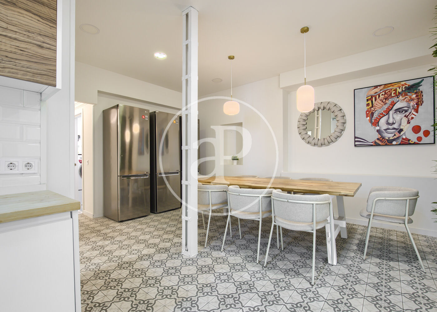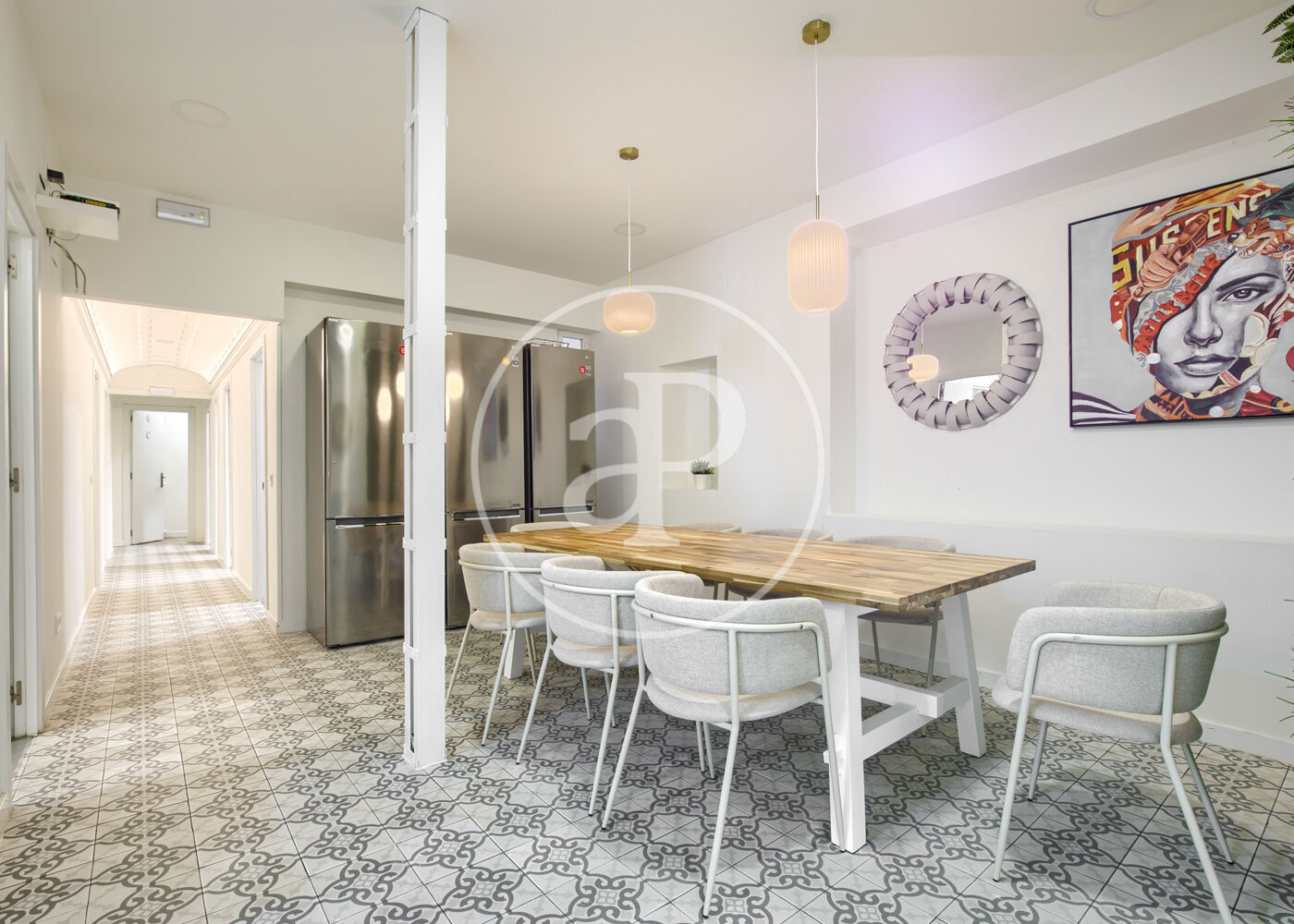 aProperties presenta este magnífico coliving en la primera planta de un elegante edificio del barrio de Chamberí. Próximo a la estación de metro de Islas Filipinas, al Hospital Universitario Fundación Jiménez Díaz y a varias universidades.