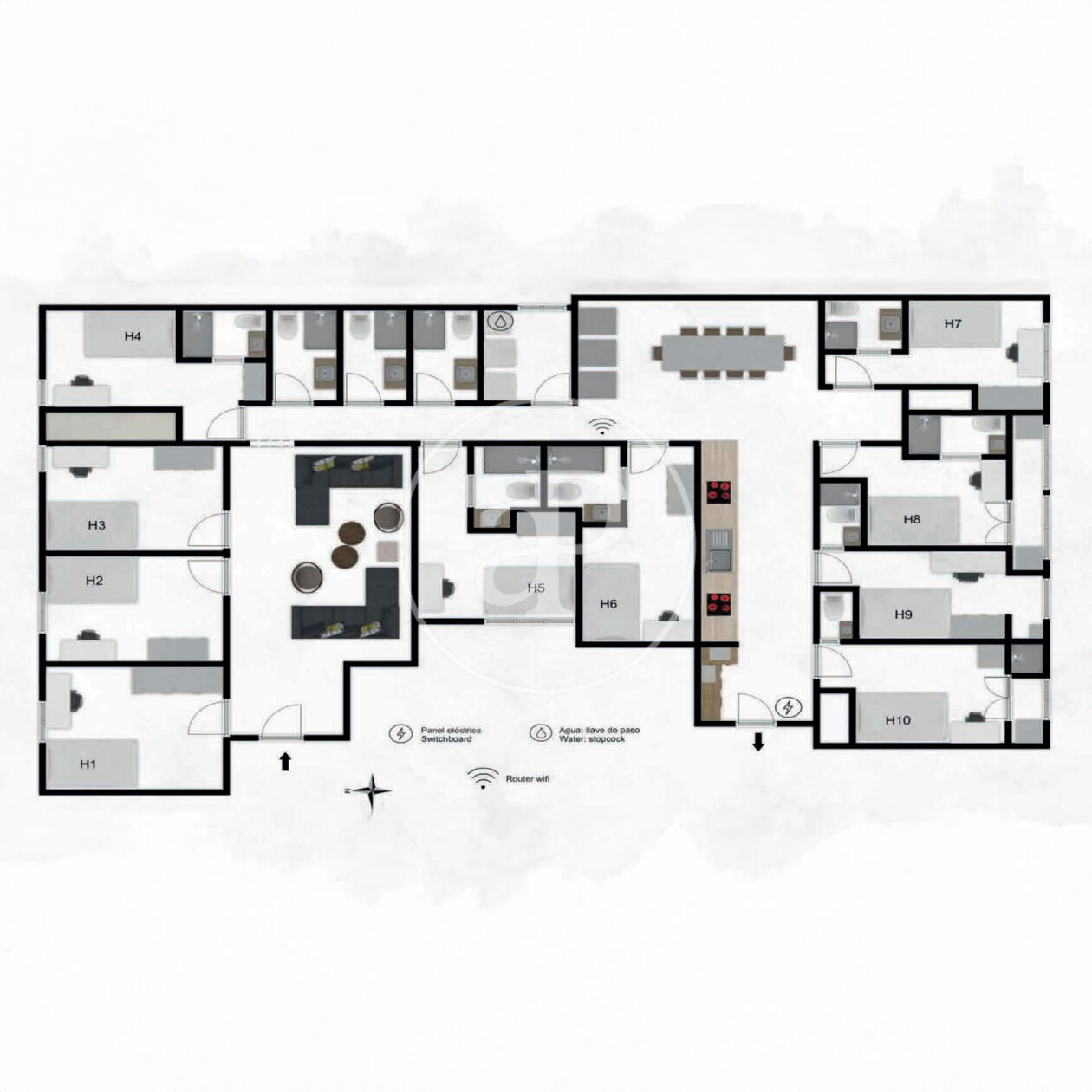 Dispone de 10 dormitorios (7 de ellos en suite) y 10 baños, y cuenta con unas cómodas zonas comunes: un gran salón, un amplio comedor y una moderna cocina totalmente equipada. También cuenta con un cuarto lavandería.