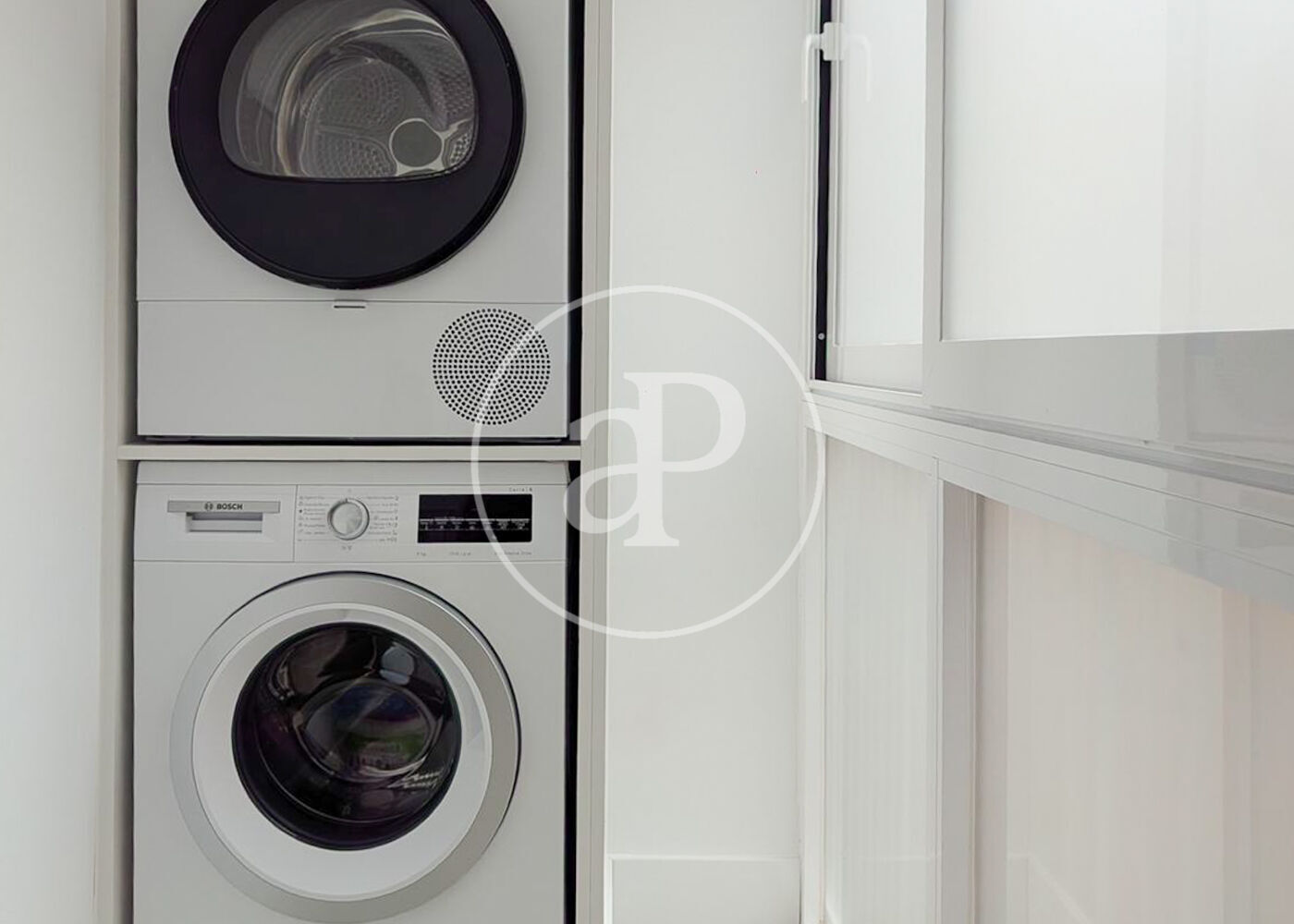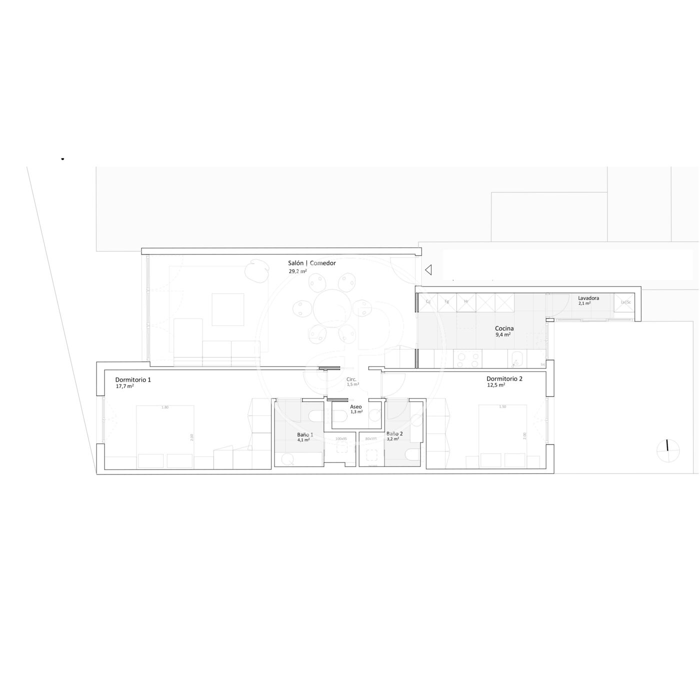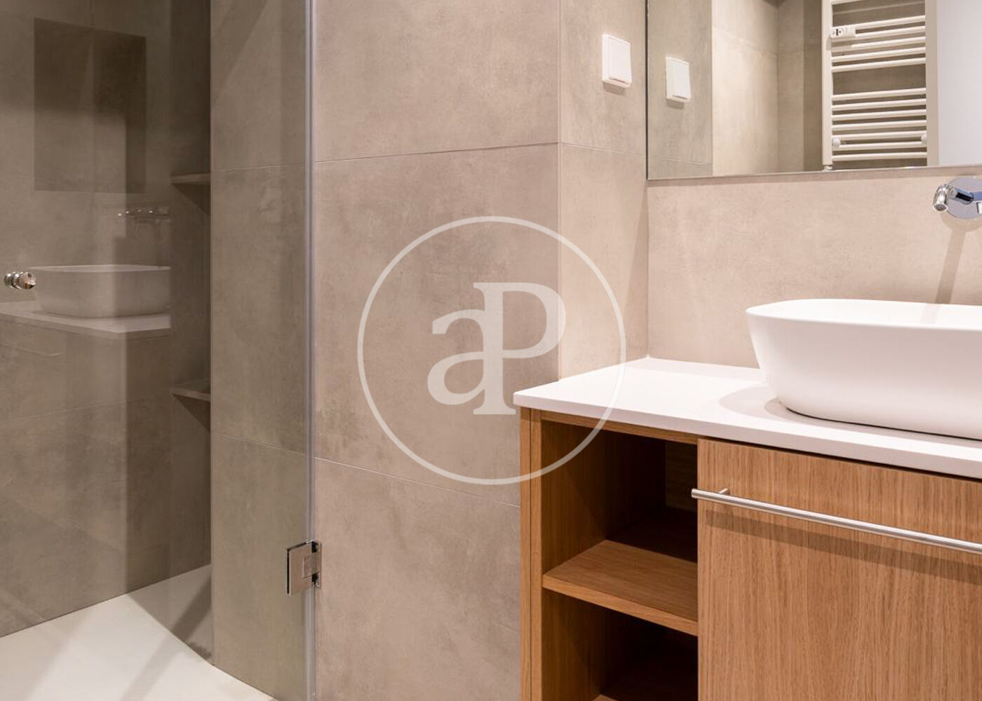 La vivienda dispone de dos amplias habitaciones, ambas con baño en suite, garantizando privacidad y comodidad. Además, cuenta con un aseo de cortesía para invitados. El salón-comedor, espacioso, luminoso y soleado por sus ventanales de orientación sur, con vistas a un amplísimo y ajardinado patrio de manzana. La cocina independiente, completamente equipada, combina diseño y funcionalidad, y se complementa además con una práctica zona de lavandería.