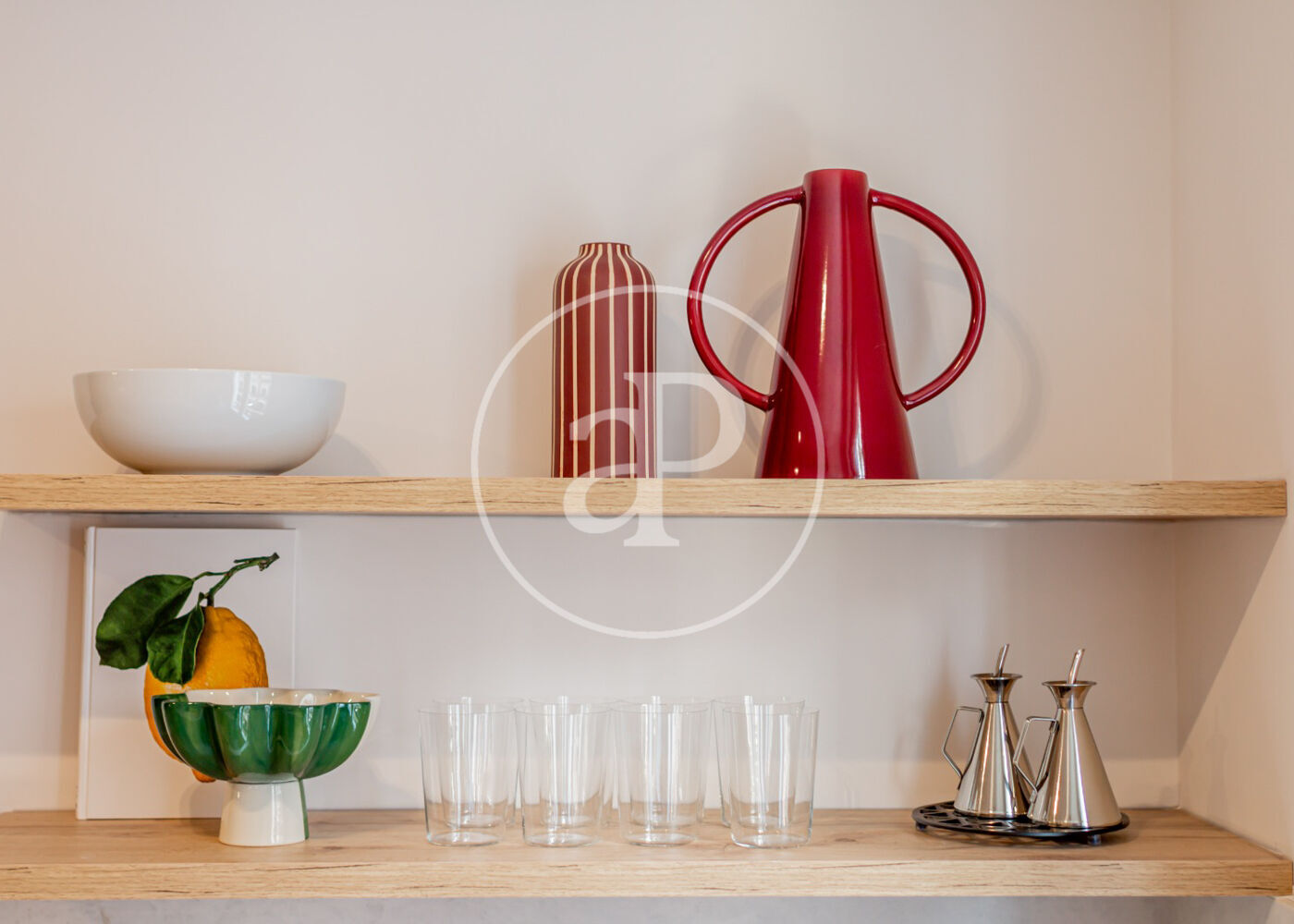 Cocina integrada totalmente equipada, con electrodomésticos de alta gama, menaje completo y mobiliario moderno de líneas limpias.