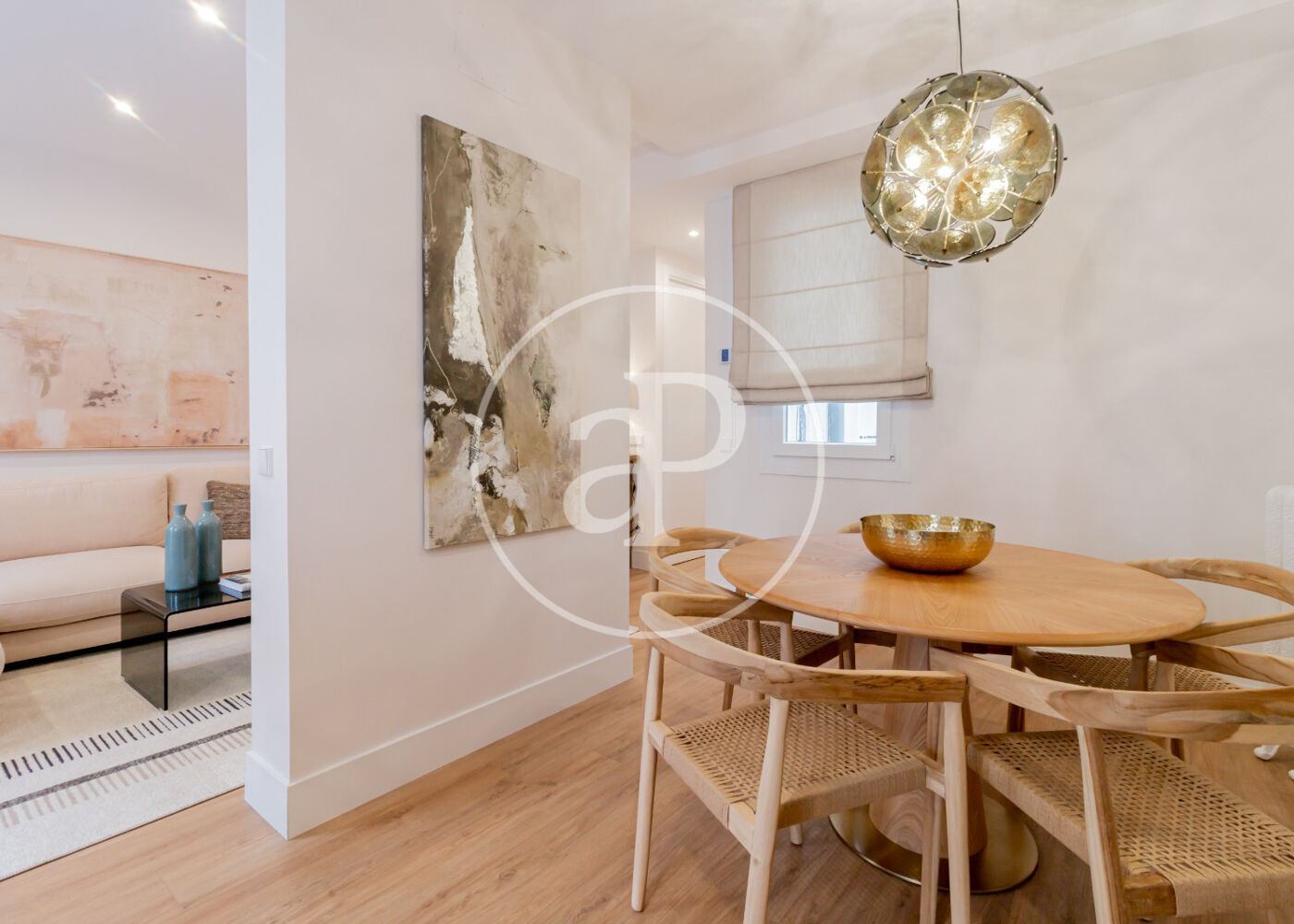 Amplio salón-comedor con grandes ventanales que llenan el espacio de luz natural durante todo el día. Espacio abierto, elegante y acogedor, ideal tanto para relajarse como para recibir visitas.