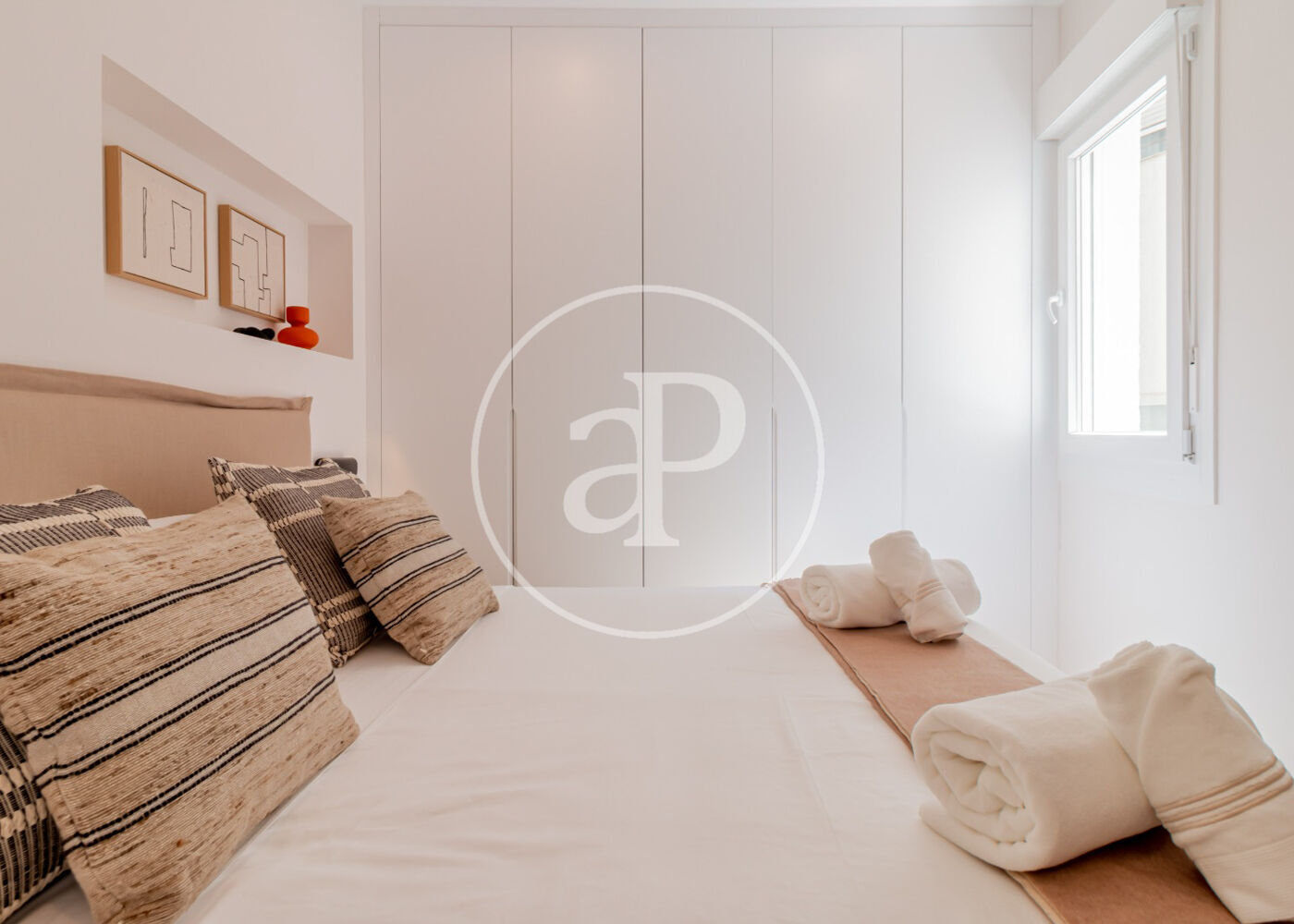2 dormitorios dobles, ambos con baño en suite, armarios empotrados y cuidada decoración. Uno de ellos con zona de escritorio ideal para teletrabajo.
