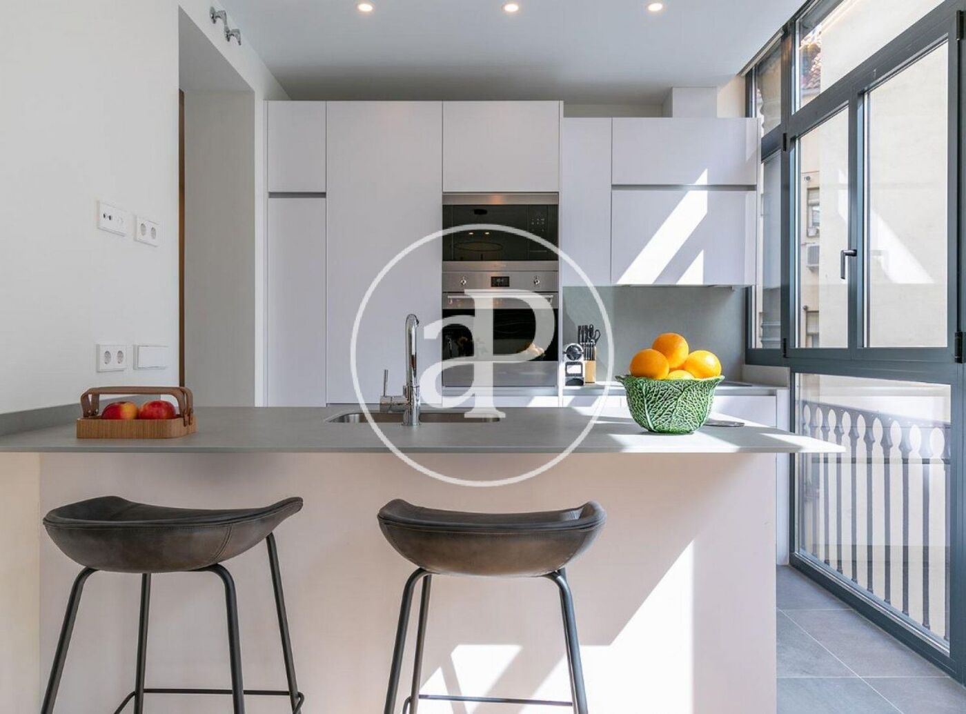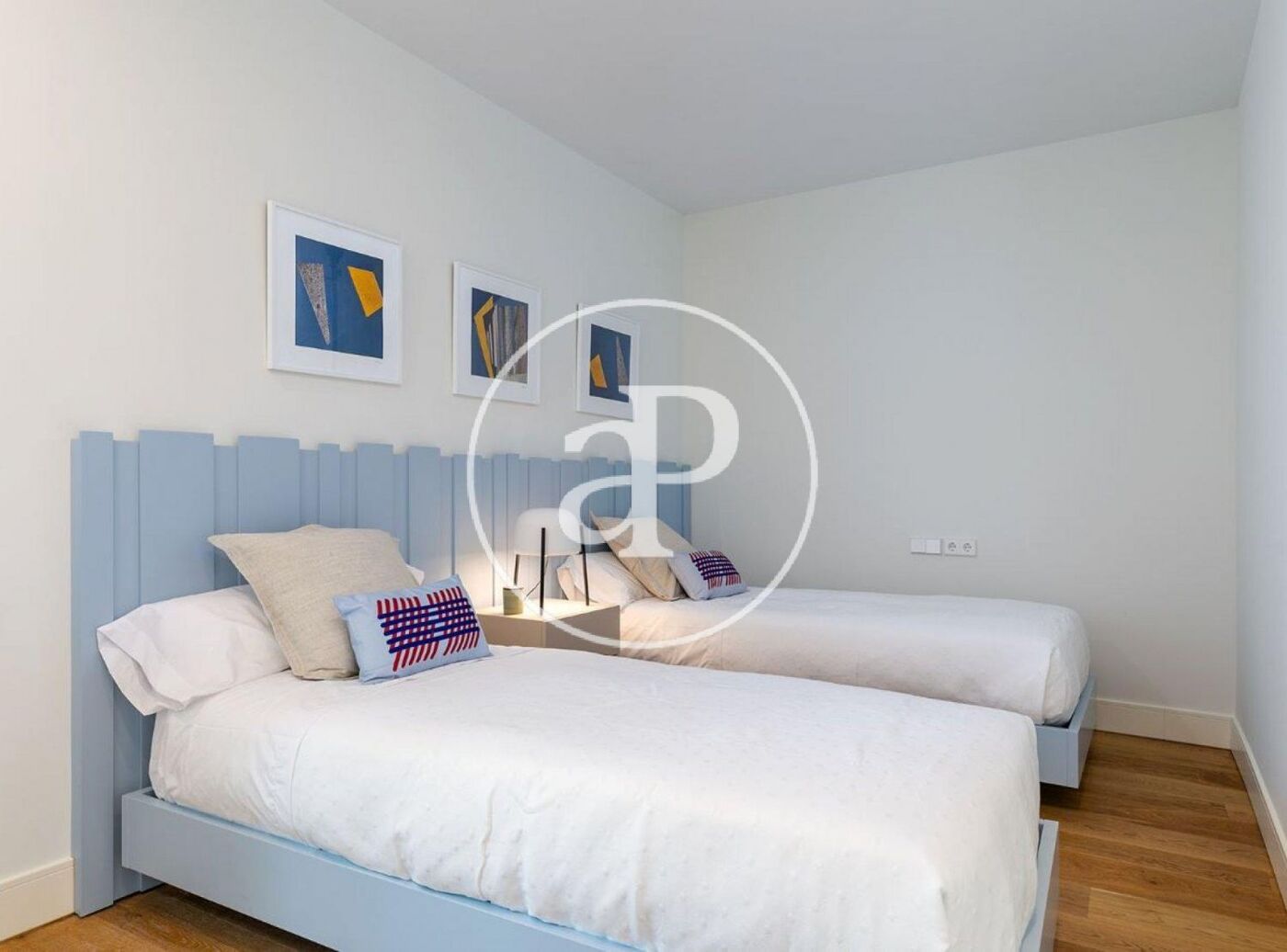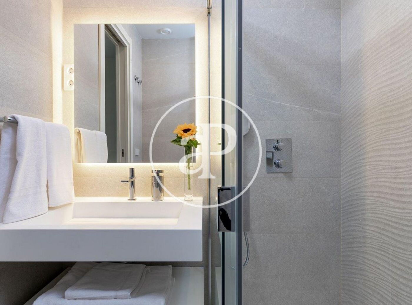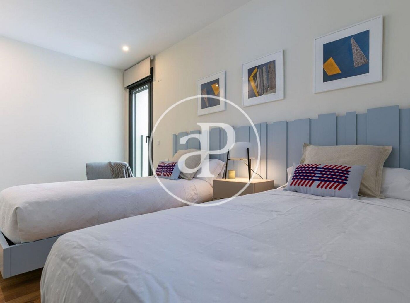 Este maravilloso piso se encuentra en un edificio rehabilitado íntegramente amueblado con mobiliario combinando estilo y confort y equipado hasta el último detalle. Incluye toallas y sabanas con el alquiler. El piso cuenta con un salón comedor con ventanales de suelo a techo que da a un bonito patio. La cocina está totalmente equipada y abierta al salón compartiendo el mismo ventanal lo que le aporta al espacio muchísima luz. Equipada con los mejores electrodomésticos. La zona de habitaciones se compone de dos habitaciones, la principal con cama de matrimonio de 180cm, vestidor y cuarto de baño con un gran ventanal de suelo a techo al gran patio. La segunda habitación con dos camas individuales de 90cm y un cuarto de baño en pasillo que puede utilizarse para visitas. Suelos de madera. Calefacción individual por suelo radiante. Airzone individual en cada estancia. Aire acondicionado por conductos. Se puede alquilar por meses. Los suministros están incluidos en el precio hasta un máximo de 200€/mes