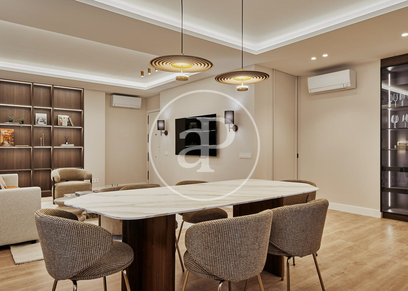 Exclusiva vivienda de diseño en la calle Duque de Sesto, en pleno barrio de Goya, distrito Salamanca, una de las zonas más demandadas y consolidadas de Madrid. Ubicada en una primera planta con ascensor, esta propiedad exterior de 145 m² ha sido completamente reformada con un proyecto integral que combina elegancia contemporánea, funcionalidad y materiales de alta calidad.