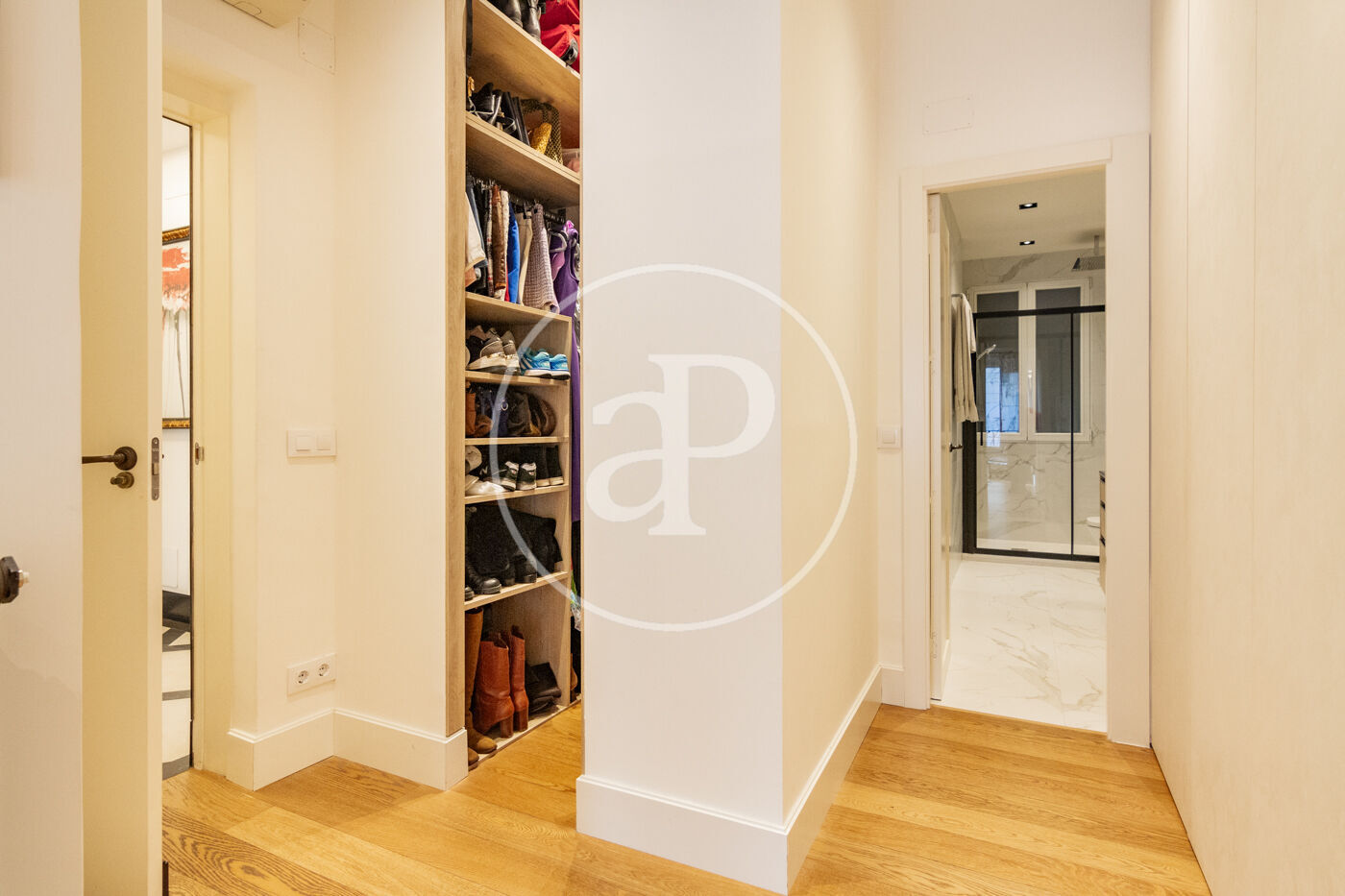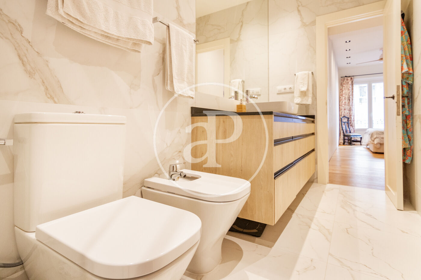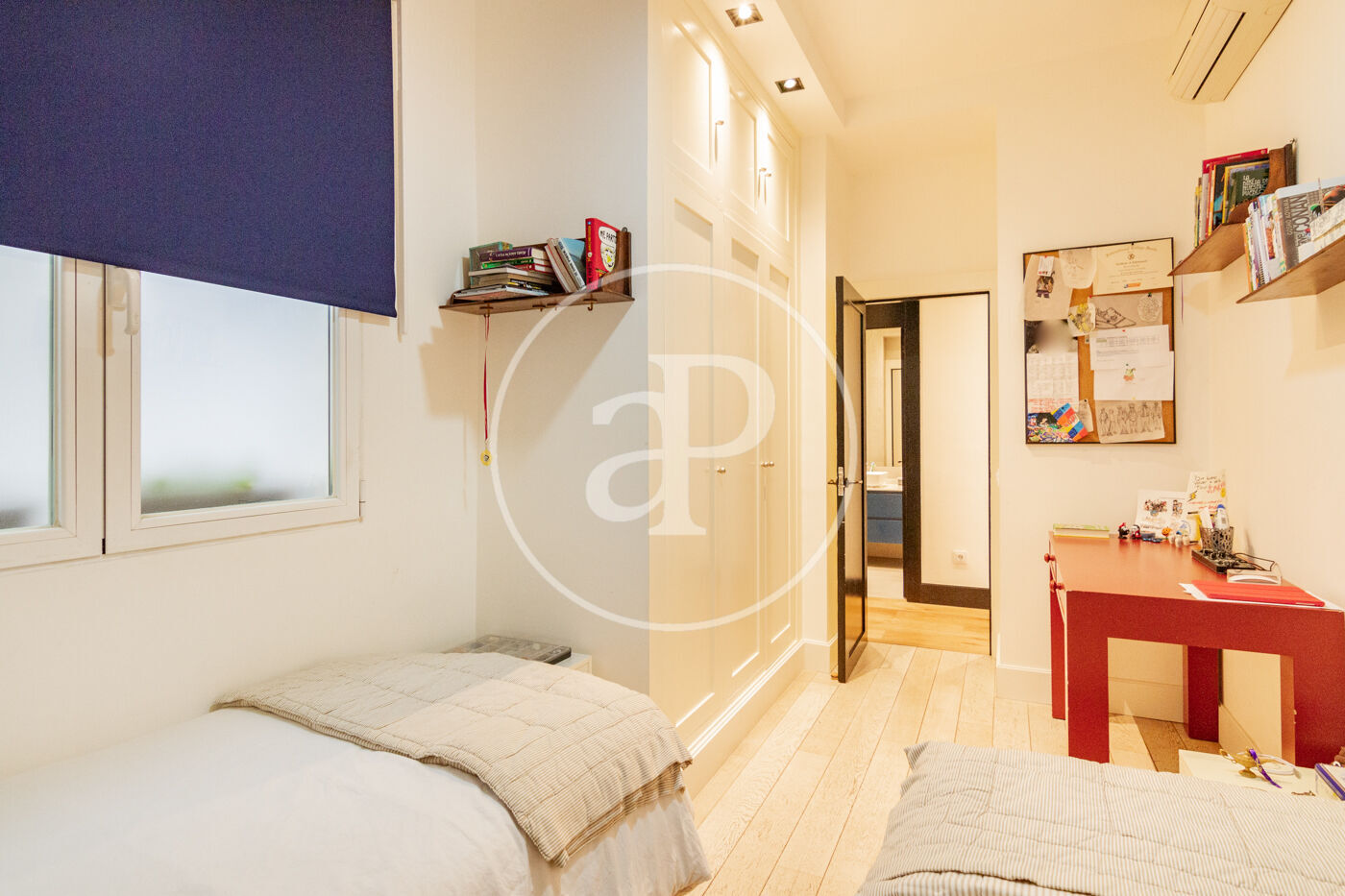 La zona de noche está compuesta por 3 dormitorios y dos cuartos de baño. El dormitorio principal, con balcón, es en suite y con vestidor. El segundo dormitorio es doble y el tercero para cama individual.