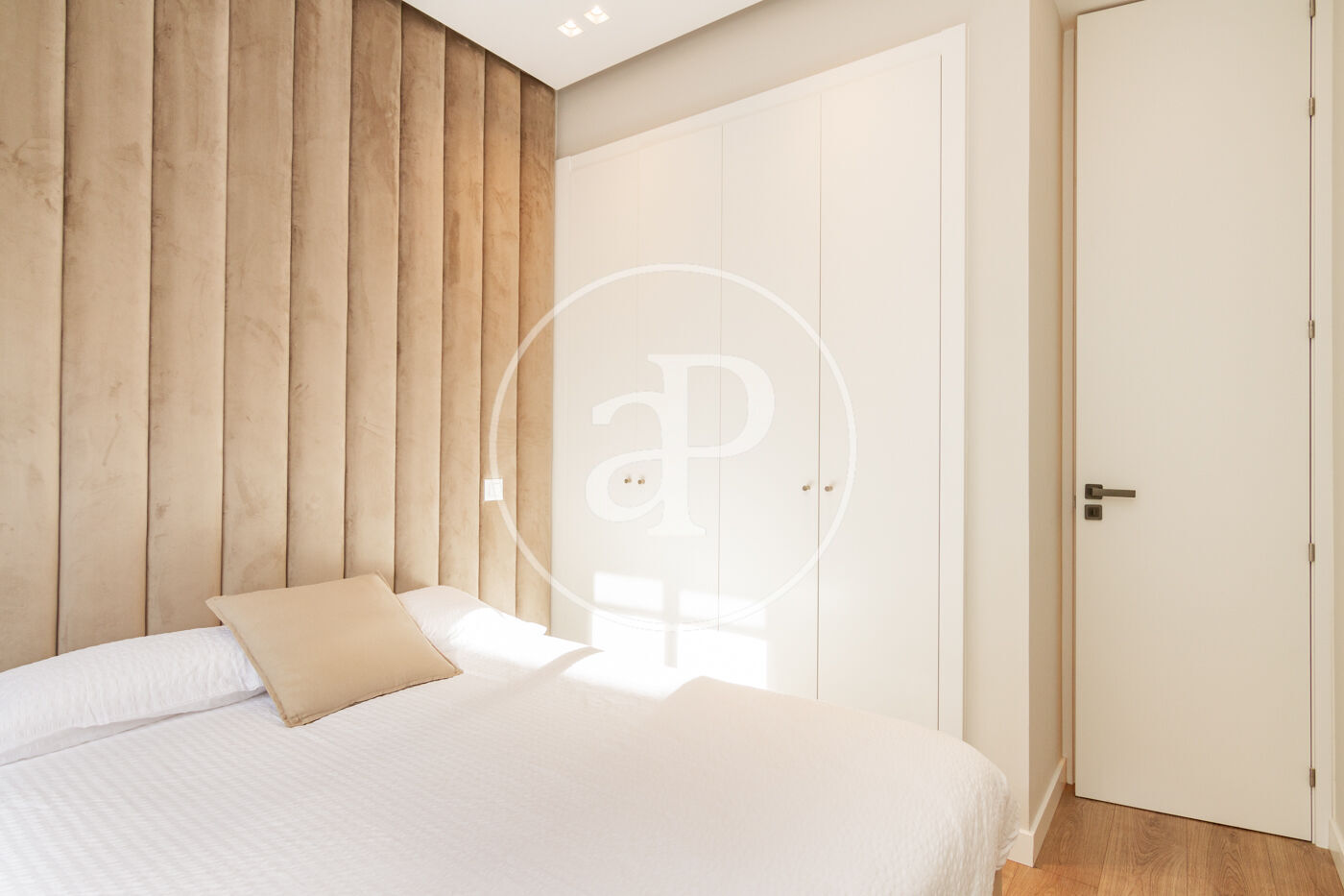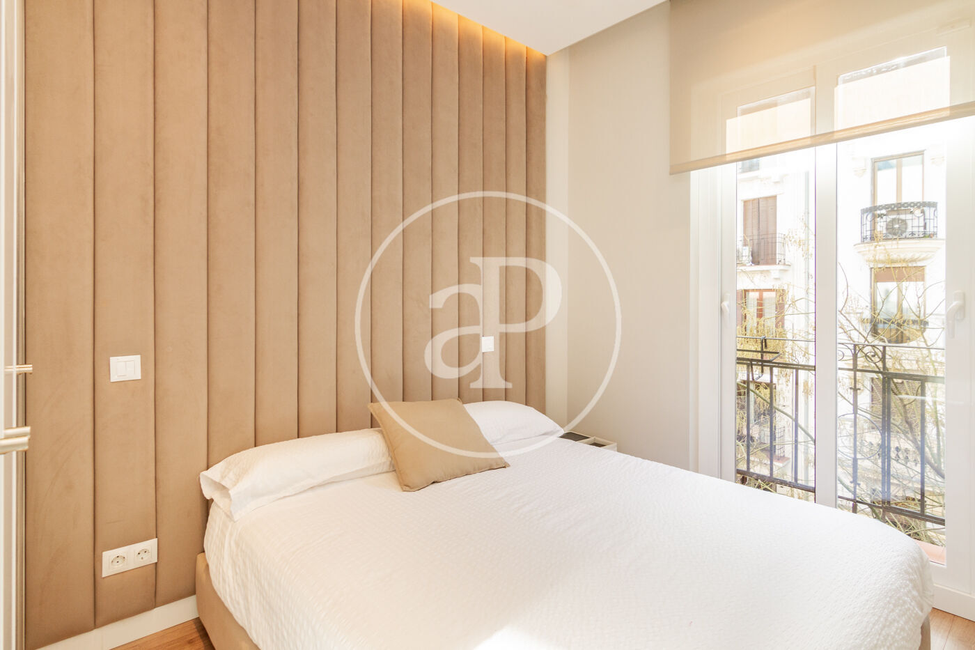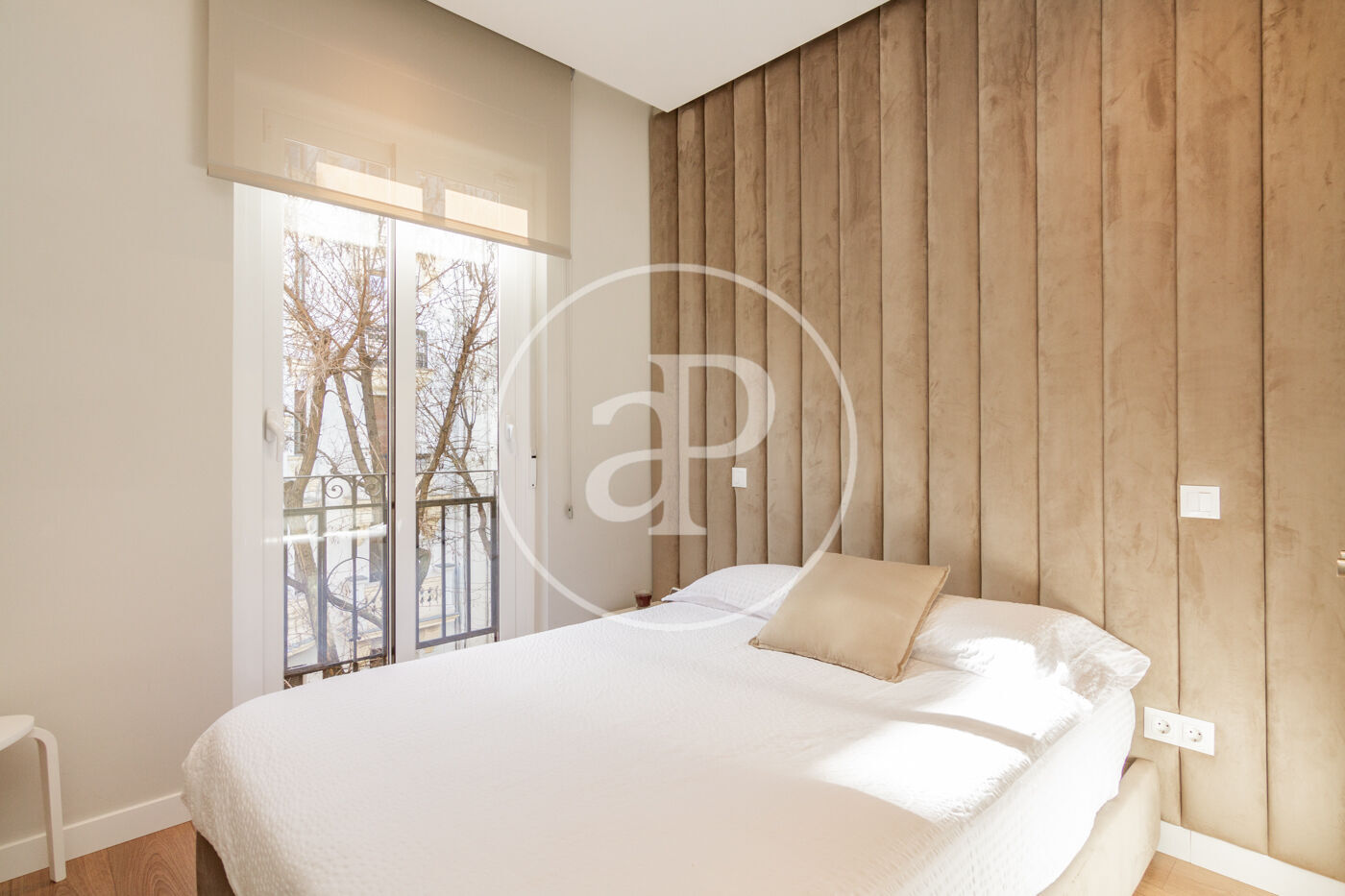 Dispone de dos dormitorios exactamente iguales, con camas dobles, armarios empotrados, cada una con su balcón a calle Ayala y aire acondicionado frío/calor por split.