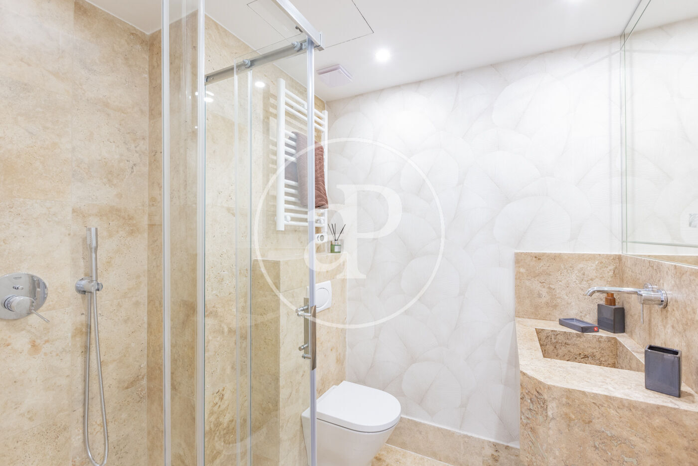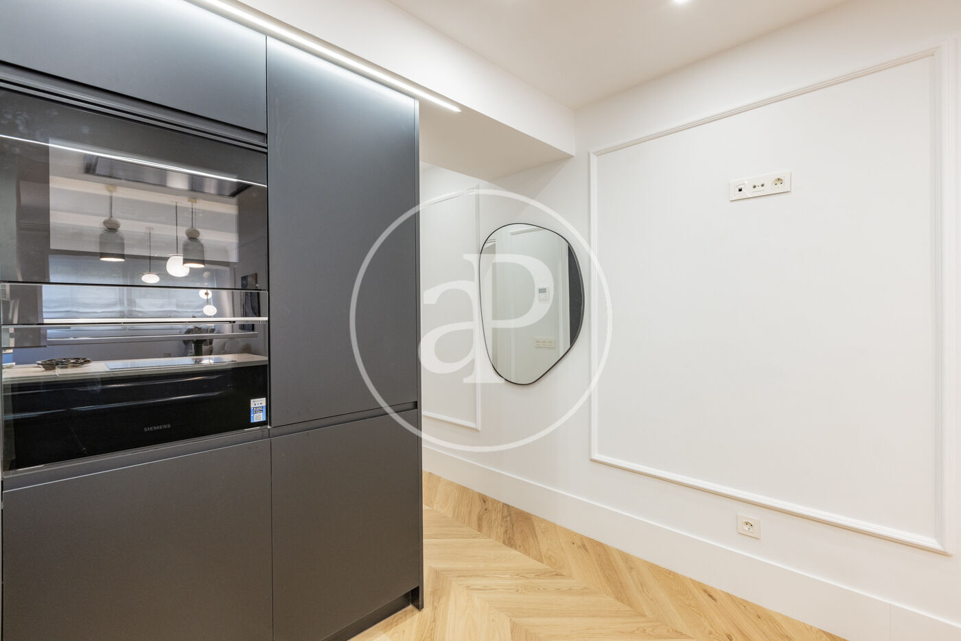 La zona de día se compone de un salón-comedor con cocina integrada, generando un espacio amplio y funcional. La cocina, totalmente equipada con electrodomésticos Siemens, se integra en la estancia principal, aportando comodidad.