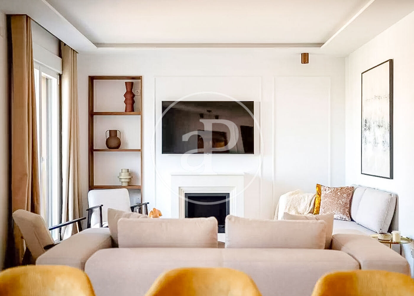 Presentamos este precioso y luminoso piso, reformado completamente con altas calidades y ubicada en el corazón del barrio de las Letras a un paso del gran Palace y los emblemáticos museos Thyssen, El Prado y Reina Sofía. Se trata de una cuarta planta exterior de 185 m². La zona de día consta de un amplio salón comedor con preciosas vistas a la plaza de Santa Ana. La cocina está equipada con electrodomésticos de alta gama y gran capacidad de almacenaje. La zona de noche se compone de cuatro dormitorios, tres de ellos con baño en suite. Destacamos la reforma realizada utilizando materiales de alta calidad, la gran luminosidad de las estancias y numerosos armarios empotrados.La finca es clásica, bien conservada con bonito portal. El piso se entrega amueblado.
