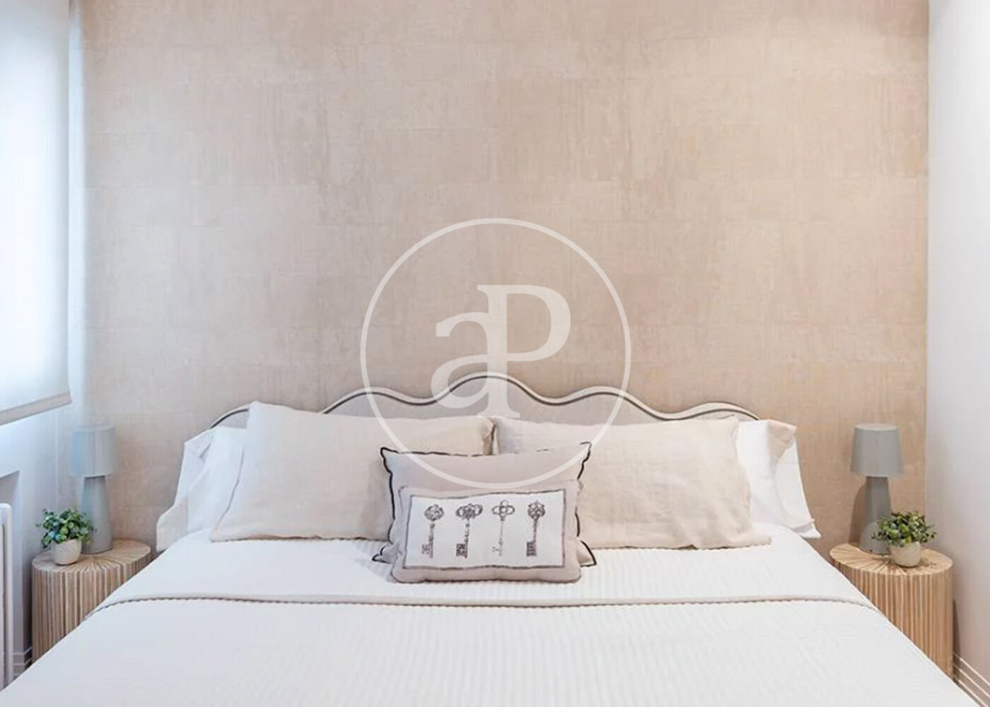 La propiedad cuenta con 123 m² y está ubicada en una cuarta planta con vistas a un amplio jardín interior, lo que garantiza tranquilidad y luminosidad. Dispone de 2 dormitorios con camas king size de 1,80 x 2,00 m, pensadas para ofrecer el máximo confort y 2 baños amplios.