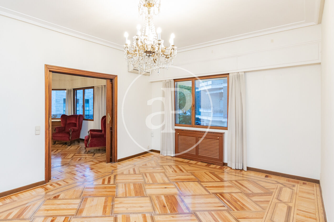 Ubicada en una de las zonas más representativas y demandadas de Madrid, en la plaza de Cuzco, se encuentra esta espectacular vivienda de 279 m según catastro que combina amplitud, luminosidad y elegancia en un entorno tranquilo, apartado del ruido del Paseo de la Castellana, pero con todas las comodidades a su alcance. El verdadero protagonista de la casa es su impresionante salón lleno de detalles, diseñado por un prestigioso decorador de interiores, que combina amplitud con un estilo temporal, y destaca por su equilibrio entre elegancia y confort.  La estancia, de aproximadamente 100 m², es un espacio diáfano con cuatro zonas bien diferenciadas: dos zonas de estar una de ellas con chimenea, un amplio comedor, y un práctico Family room. Además, una terraza cerrada habilitada como despacho, culmina la zona de día. Un espacio señorial con ventanales de suelo techo que inundan la estancia con una impresionante luz natural y ofrecen vistas despejadas y panorámicas. La orientación este garantiza una luminosidad excepcional durante toda la mañana. La zona de noche cuenta con tres amplios dormitorios en suite, todos ellos dotados de gran capacidad de almacenaje, gracias a sus armarios empotrados y vestidores de suelo a techo. Además, una práctica cocina independiente, con zona de Office y lavandería, está dotada de una habitación también en suite, ideal para quienes buscan comodidad y funcionalidad. La vivienda dispone de plaza de garaje en la misma finca, trastero de grandes dimensiones y servicio de conserjería todos los días de la semana. El edificio destaca por su categoría y representatividad En definitiva, una propiedad única por su ubicación privilegiada, sus vistas espectaculares y sus excepcionales dimensiones. Una auténtica oportunidad para quienes buscan una residencia exclusiva en el corazón, financiero y residencial de Madrid. ¿Te imaginas vivir aquí?