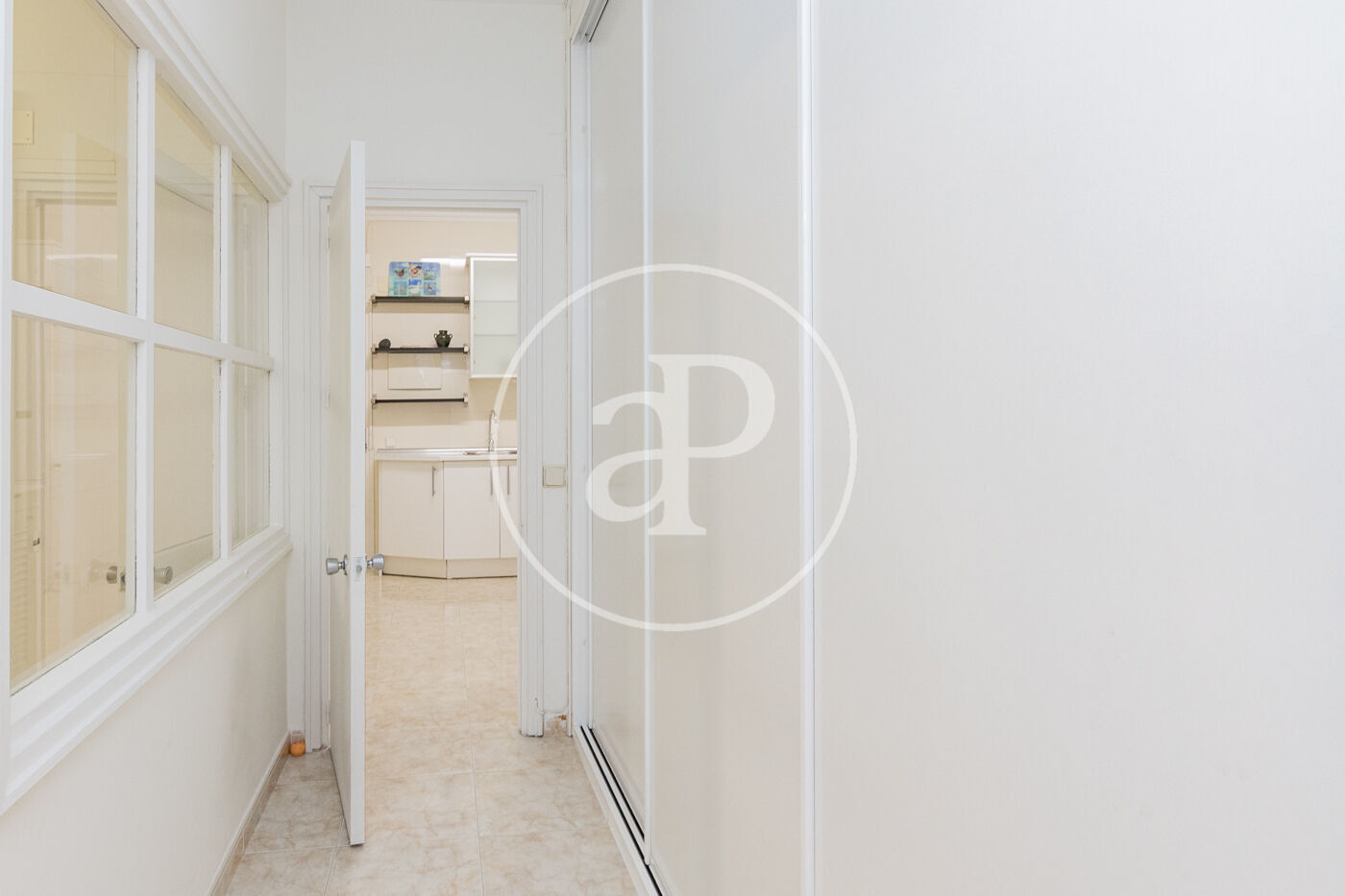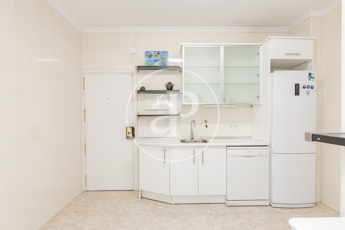 Se trata de un elegante y amplio piso ideal para una familia. El hall de entrada nos conduce a un luminoso salón a través del cual se accede a una terraza con vistas al Museo del Prado y a la Iglesia de Los Jerónimos. Una segunda estancia contigua puede ser usada como comedor u oficina . La cocina se encuentra completamente amueblada con lavavajillas y frigorífico y cuenta con un espacioso office, una pequeña despensa y área de lavado independiente.