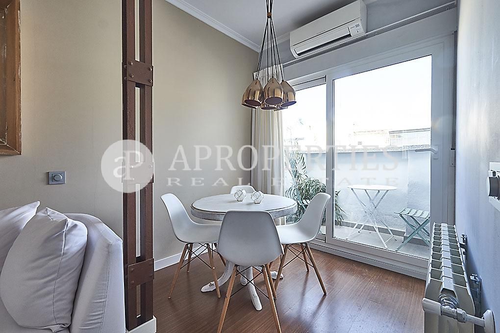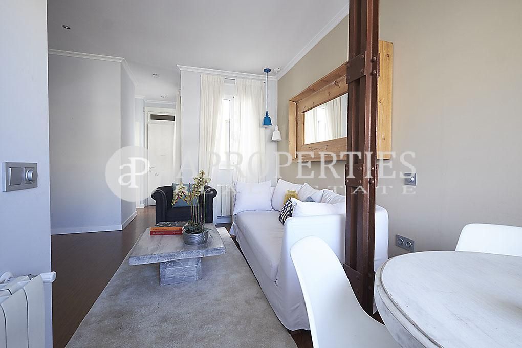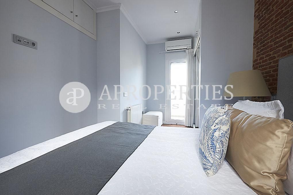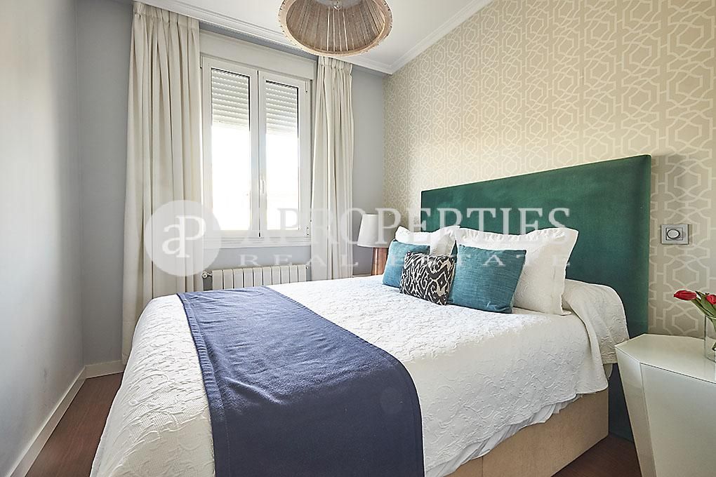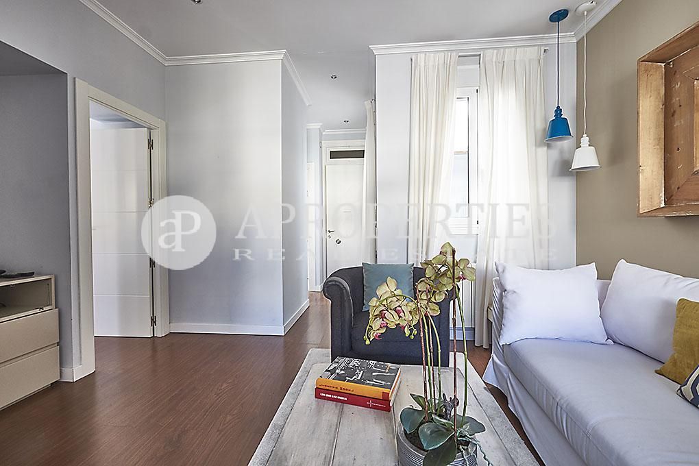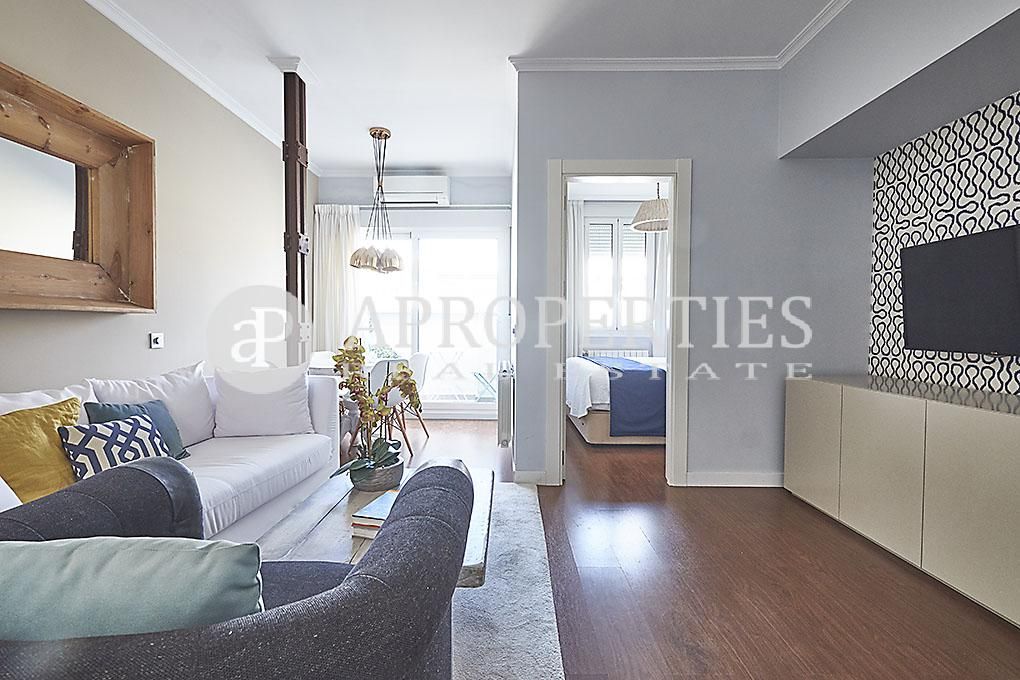 Espectacular y luminoso ático con vistas a la Plaza del Marqués de Salamanca. El apartamento está totalmente amueblado y equipado, listo para entrar y se compone de salón comedor con terraza; cocina independiente amueblada; dos dormitorios dobles con cama de matrimonio y armarios vestidos, uno de ellos con terraza; y un cuarto de baño con plato de ducha. Las paredes están pintadas en liso y tiene suelo de madera. La vivienda cuenta con aire acondicionado y calefacción por gas natural. Toda la zona esta perfectamente comunicada con transporte público.