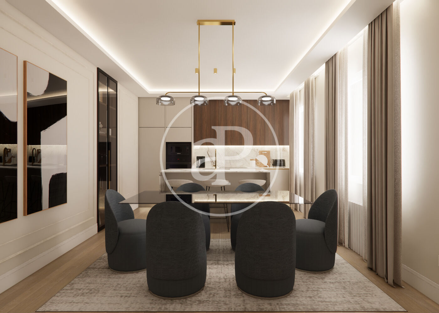Este elegante piso en planta baja combina lujo contemporáneo y funcionalidad, ofreciendo una experiencia de vivienda sofisticada en una de las zonas más exclusivas de Madrid. La propiedad ha sido completamente renovada, presentando acabados modernos y materiales de alta calidad. Su distribución cuenta con un amplio salón-comedor con cocina integrada de estilo abierto, lo que permite una conexión fluida entre las zonas de estar y de reunión. Dos dormitorios y dos baños, organizados de forma funcional para aprovechar al máximo la superficie útil y ofrecer privacidad a cada estancia.