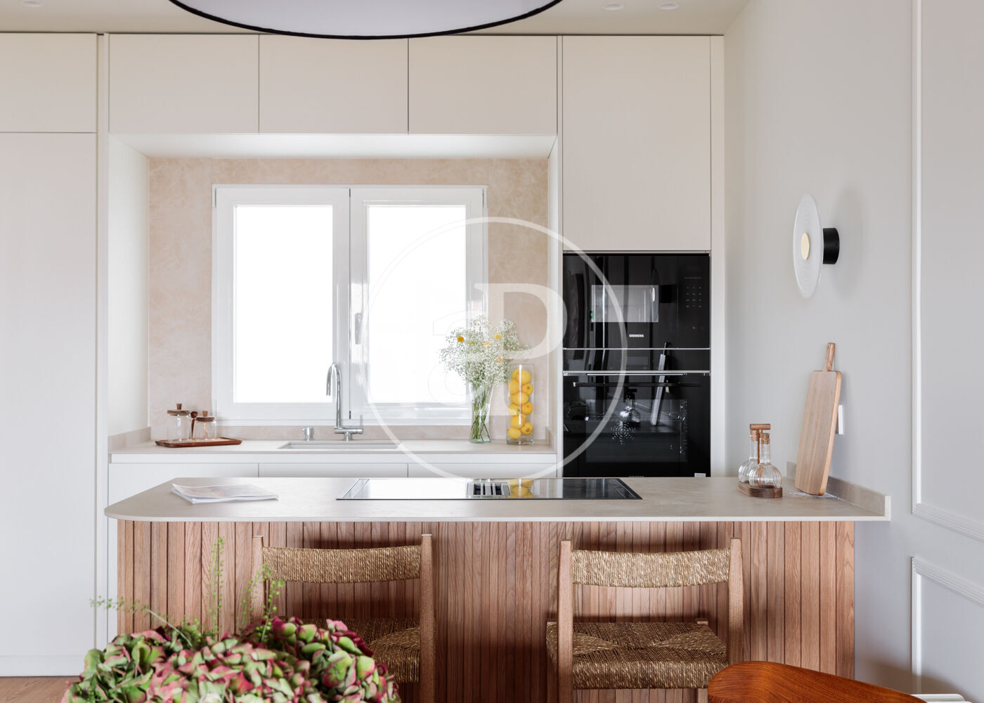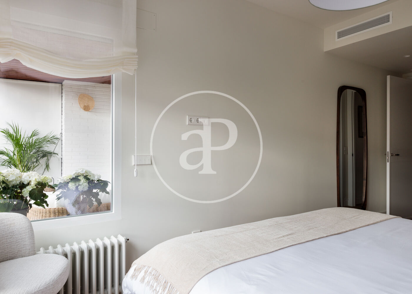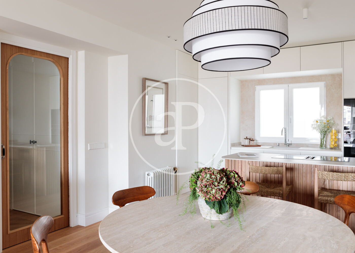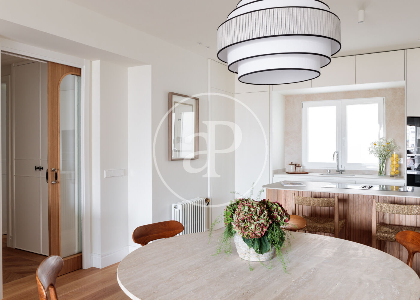 La vivienda dispone de 3 amplios dormitorios dobles (el principal, exterior) y 3 baños completos, (2 de ellos en suite). La reforma ha sido realizada con el máximo detalle, buscando siempre el equilibrio entre diseño y funcionalidad. El salón-comedor es un espacio amplio y diáfano, que se abre a la terraza, con vistas bonitas y muy abiertas. La cocina está integrada y completamente equipada, con una ventana con orientación Este, lo que hace que la estancia disponga de ventilación y luz cruzada.
