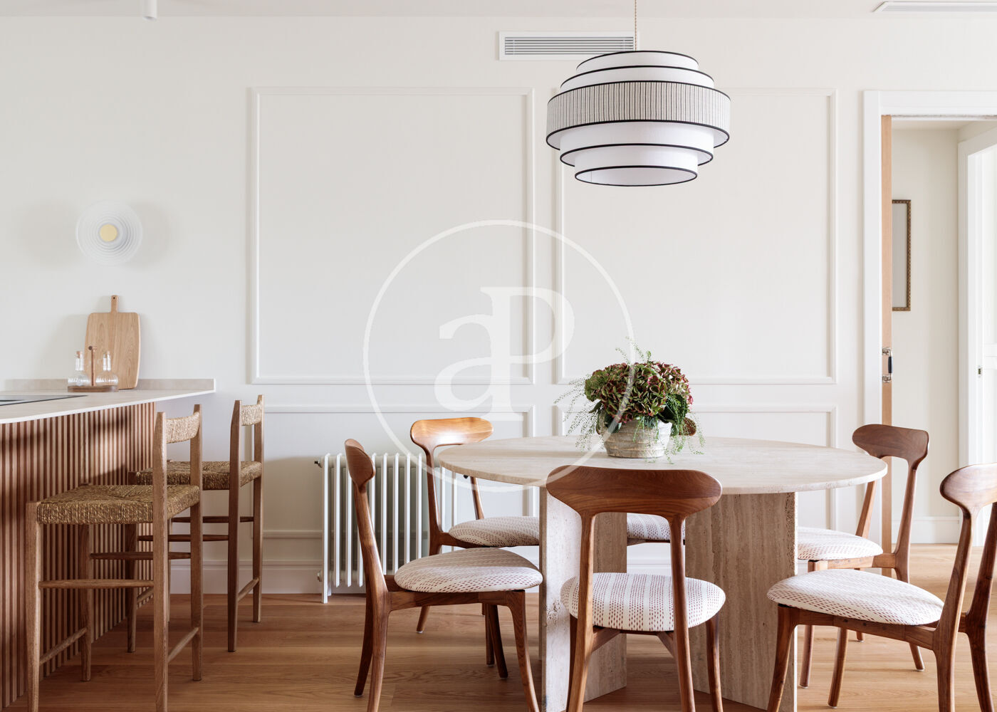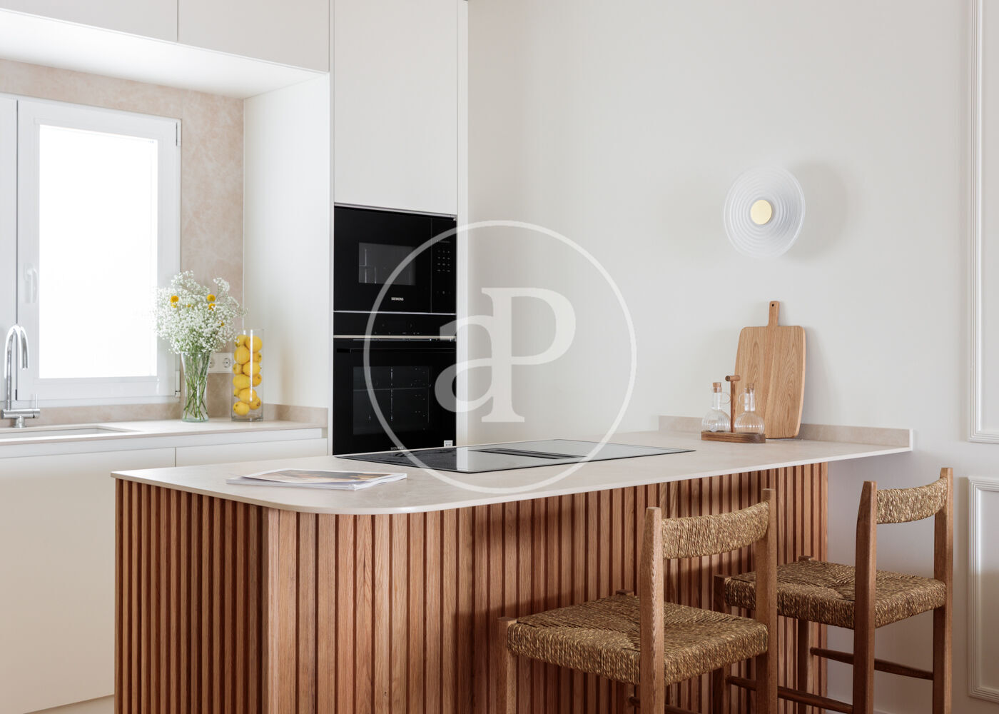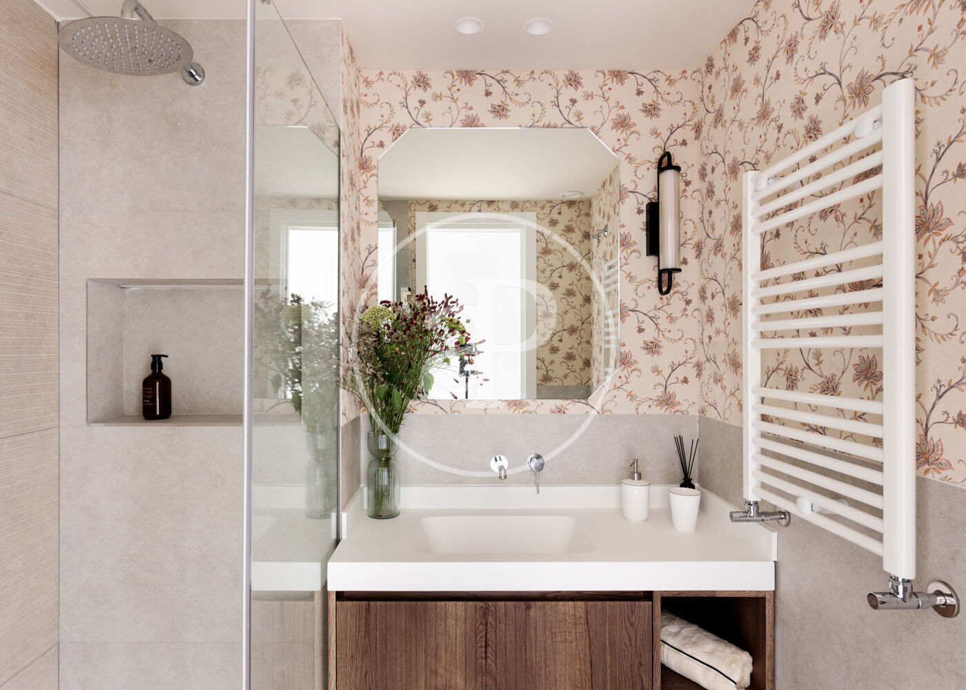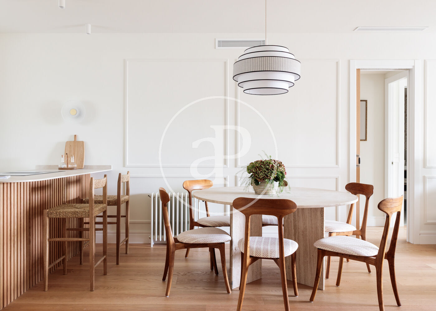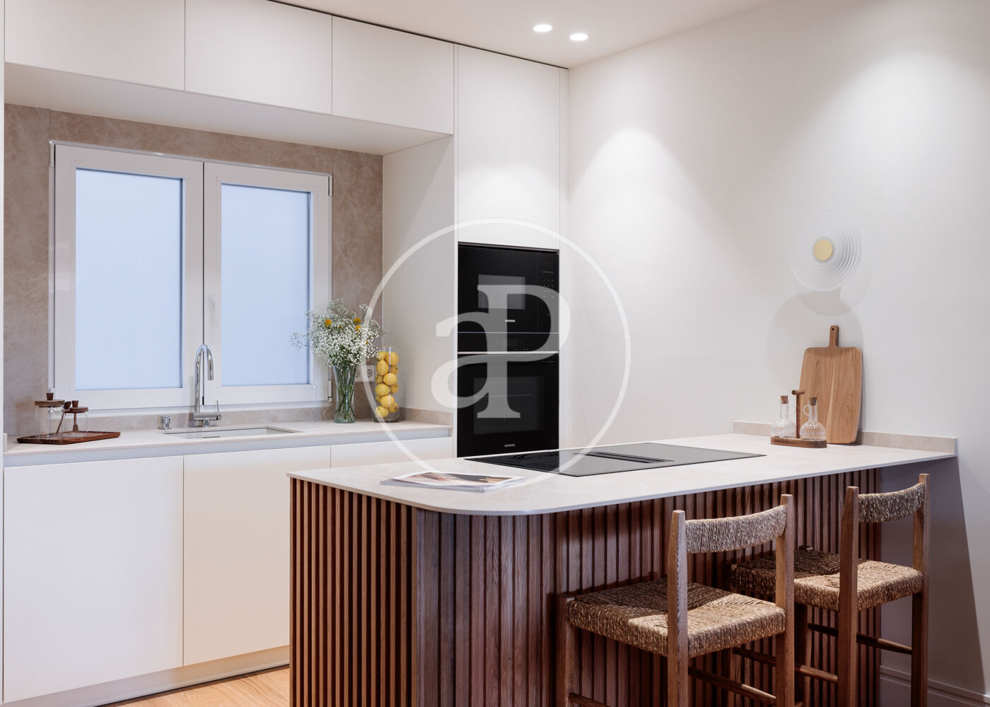 La vivienda dispone de 3 amplios dormitorios dobles (el principal, exterior) y 3 baños completos, (2 de ellos en suite). La reforma ha sido realizada con el máximo detalle, buscando siempre el equilibrio entre diseño y funcionalidad. El salón-comedor es un espacio amplio y diáfano, que se abre a la terraza, con vistas bonitas y muy abiertas. La cocina está integrada y completamente equipada, con una ventana con orientación Este, lo que hace que la estancia disponga de ventilación y luz cruzada.