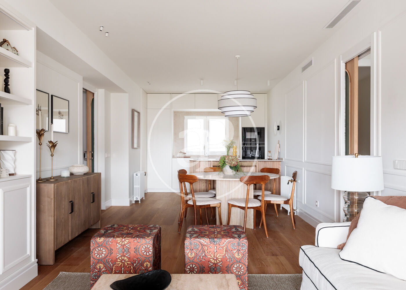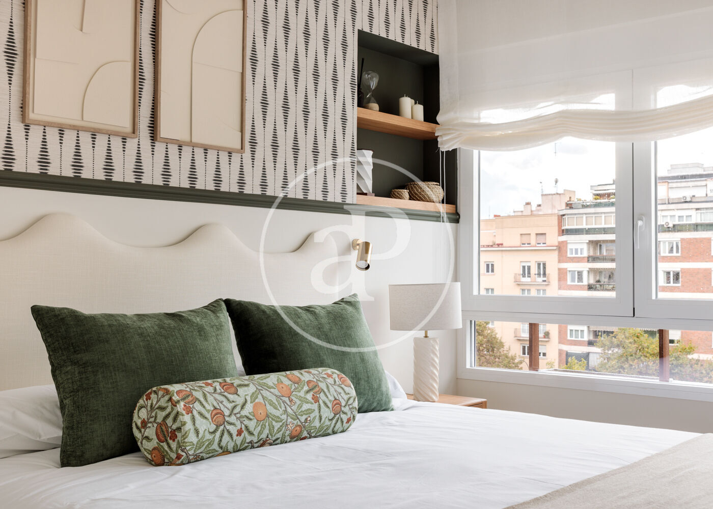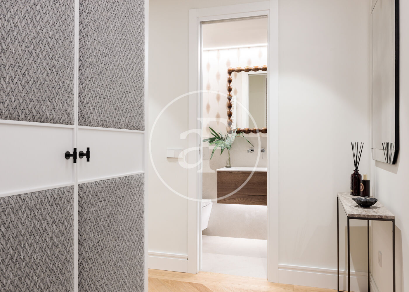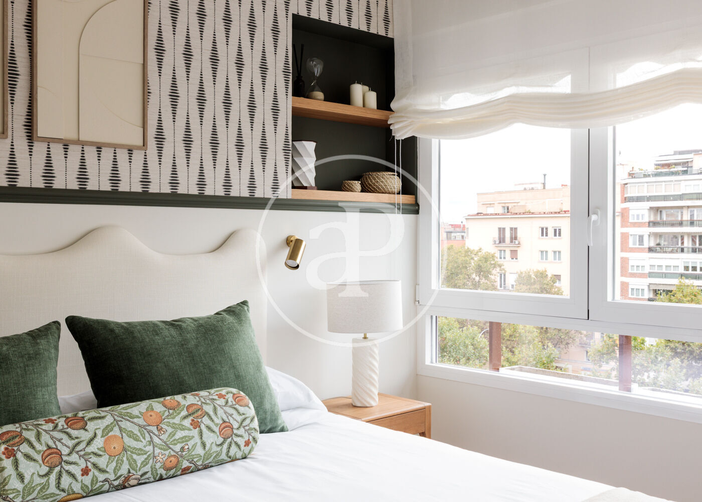 La vivienda dispone de 3 amplios dormitorios dobles (el principal, exterior) y 3 baños completos, (2 de ellos en suite). La reforma ha sido realizada con el máximo detalle, buscando siempre el equilibrio entre diseño y funcionalidad. El salón-comedor es un espacio amplio y diáfano, que se abre a la terraza, con vistas bonitas y muy abiertas. La cocina está integrada y completamente equipada, con una ventana con orientación Este, lo que hace que la estancia disponga de ventilación y luz cruzada.