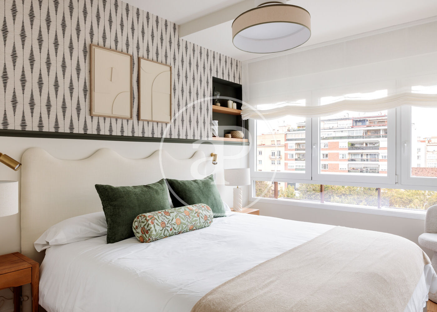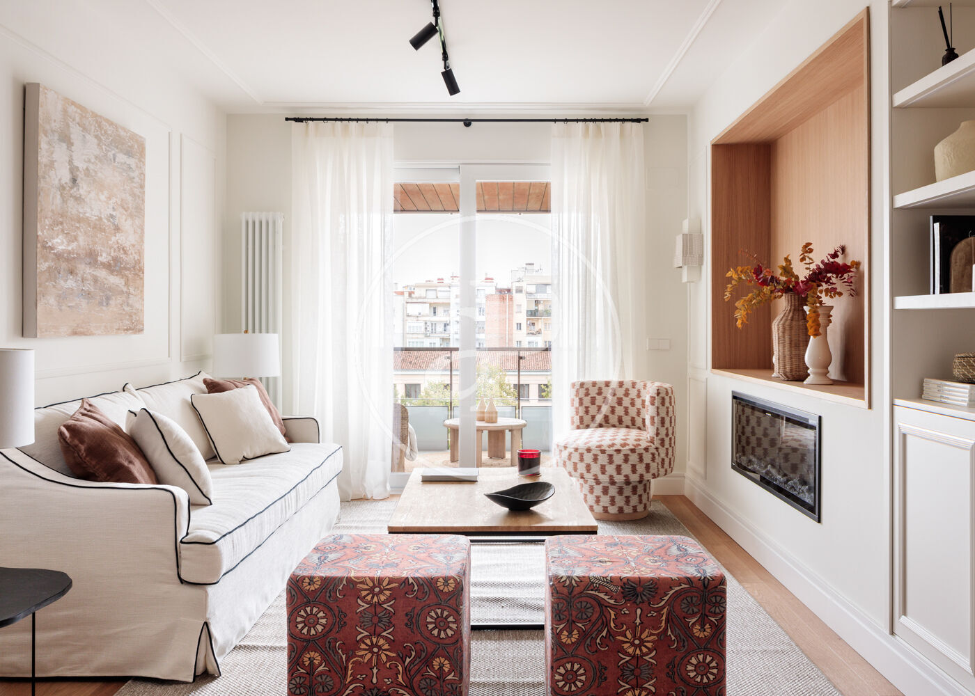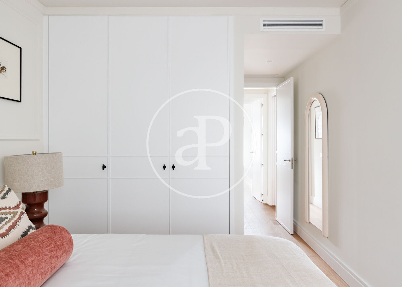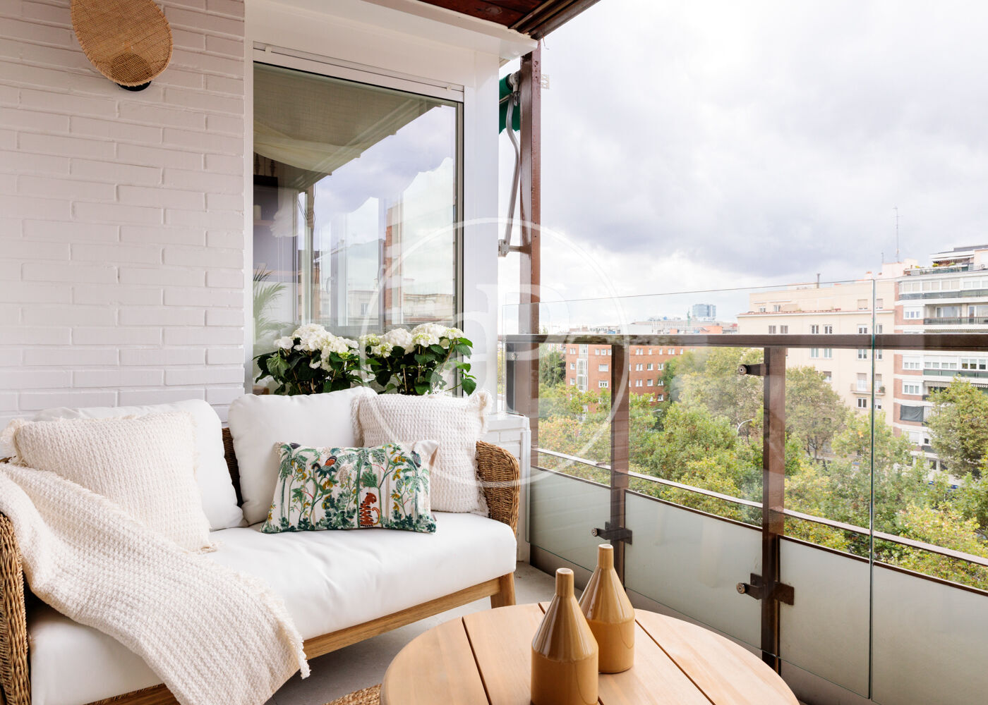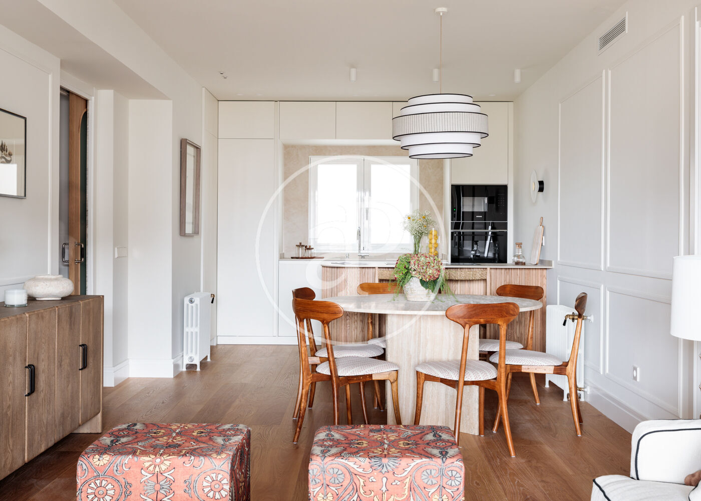 La vivienda dispone de 3 amplios dormitorios dobles (el principal, exterior) y 3 baños completos, (2 de ellos en suite). La reforma ha sido realizada con el máximo detalle, buscando siempre el equilibrio entre diseño y funcionalidad. El salón-comedor es un espacio amplio y diáfano, que se abre a la terraza, con vistas bonitas y muy abiertas. La cocina está integrada y completamente equipada, con una ventana con orientación Este, lo que hace que la estancia disponga de ventilación y luz cruzada.