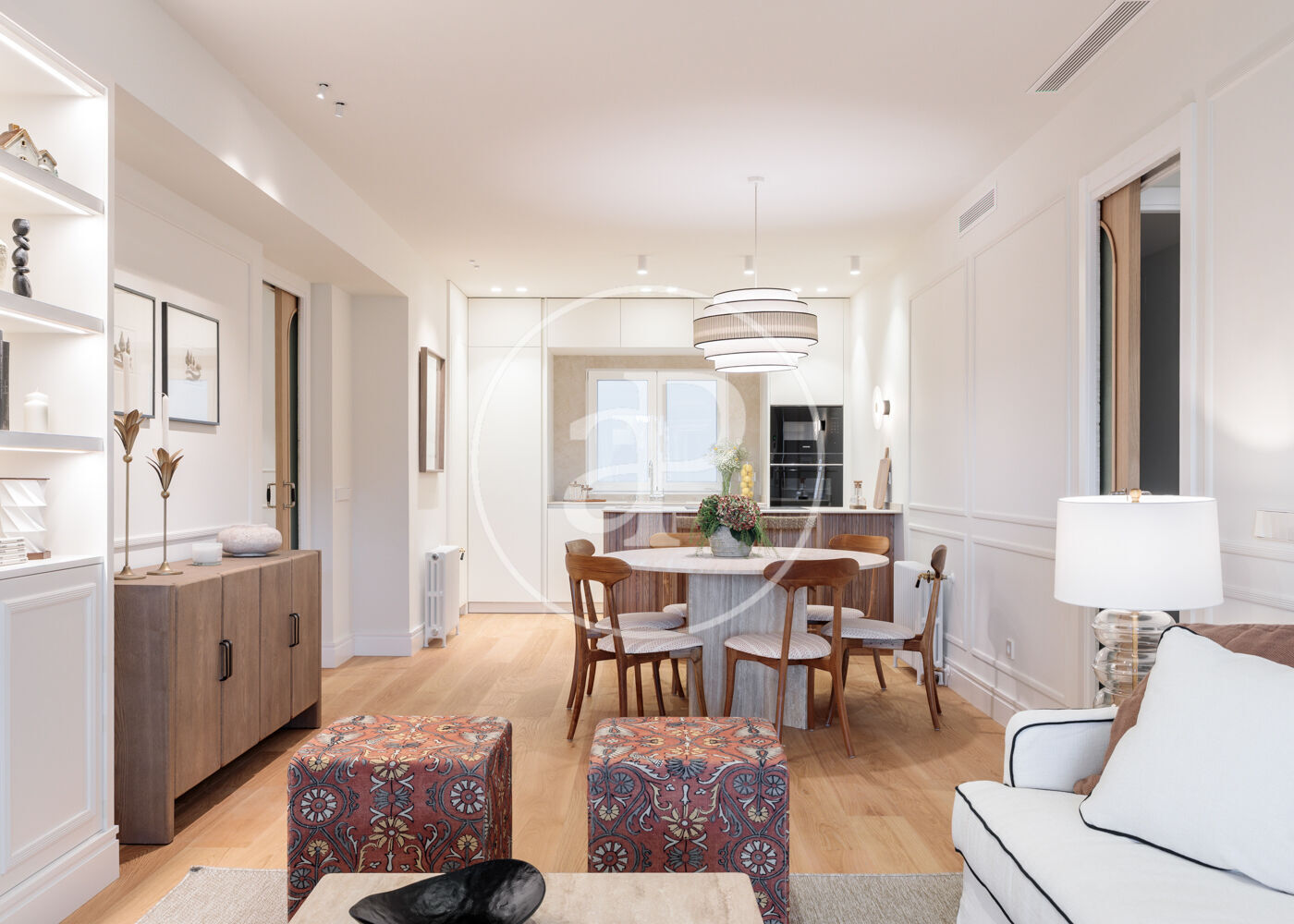 Residencia de lujo en Goya · Barrio de Salamanca En una de las zonas más exclusivas de Madrid, se encuentra esta elegante vivienda situada en la quinta planta de un edificio representativo de la calle Goya. Con una superficie de 176 m², ofrece una distribución moderna, amplios espacios y acabados de primer nivel. El proyecto, diseñado por el estudio Arctempus, combina materiales de alta calidad, líneas contemporáneas y una cuidada iluminación natural. La vivienda cuenta con tres dormitorios dobles, cada uno con baño en suite, además de un aseo de cortesía. El dormitorio principal incluye un amplio vestidor tipo walking closet. La zona de día se compone de un espacioso salón-comedor con acceso al balcón y una cocina abierta totalmente equipada, que integra diseño y funcionalidad. Dispone también de un cuarto de lavado independiente y una agradable terraza privada. Entre su equipamiento destacan la calefacción central, el aire acondicionado por split y un sistema de domótica que permite controlar temperatura, iluminación y seguridad. El edificio cuenta con ascensor y servicio de portería. Su ubicación en el Barrio de Salamanca permite disfrutar de todos los servicios de la “Milla de Oro”, con boutiques de lujo, restaurantes con estrella Michelin y espacios emblemáticos como la Puerta de Alcalá y el Parque del Retiro a pocos minutos. Superficie: 176 m² Dormitorios: 3 Baños: 3 + aseo de cortesía ¿Te imaginas vivir aquí?