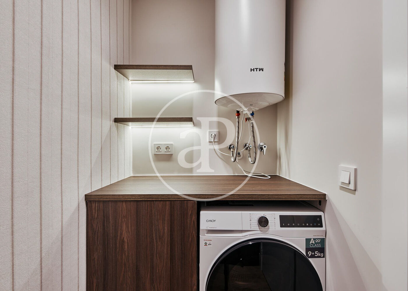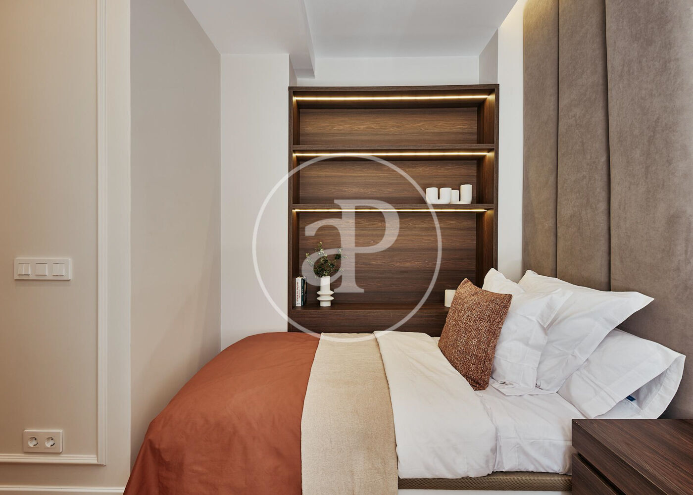 Ubicada en una luminosa sexta planta interior, la vivienda cuenta con ascensor, calefacción comunitaria, aire acondicionado y se entrega amueblada, proporcionando un ambiente cuidadosamente diseñado y listo para entrar a vivir. La transformación arquitectónica realizada en el edificio y el cuidado por los detalles convierten cada estancia en un entorno exclusivo y moderno.