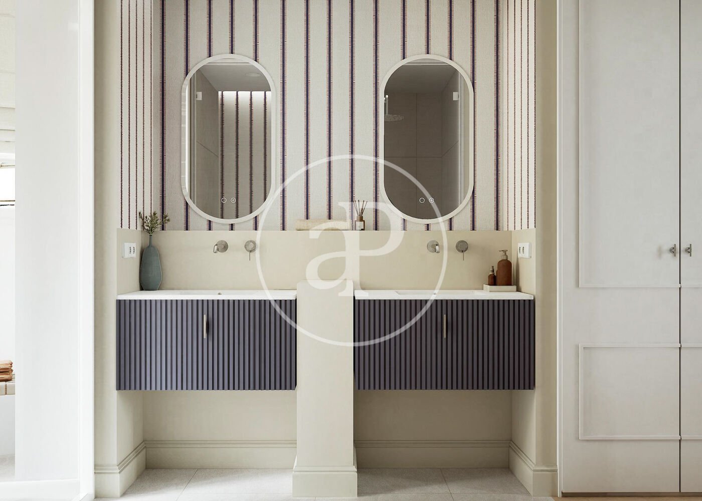 Cuenta con tres amplios dormitorios y tres baños completos, además de un elegante aseo de cortesía. Dos de los dormitorios disponen de baño en suite y zona vestidor, configurando espacios íntimos y confortables, ideales para el descanso y la privacidad.